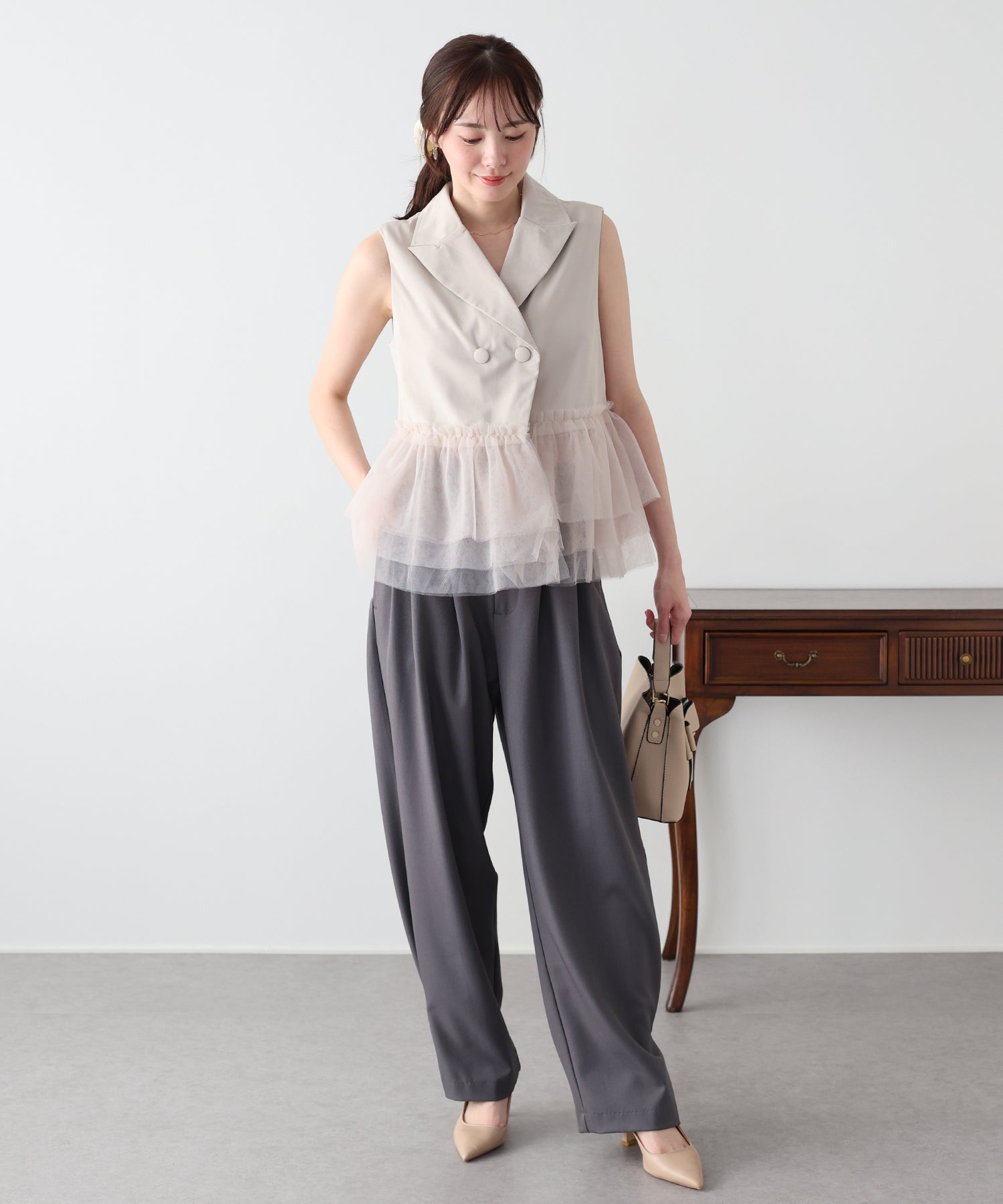 きれいめ×大人かわいいチュールドッキングテーラードジレ
