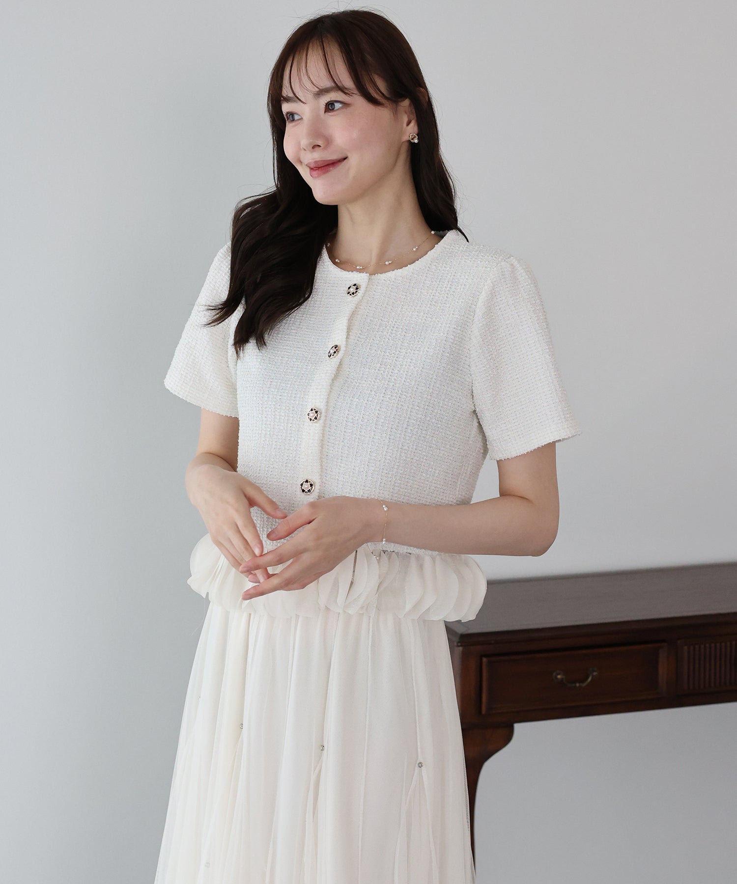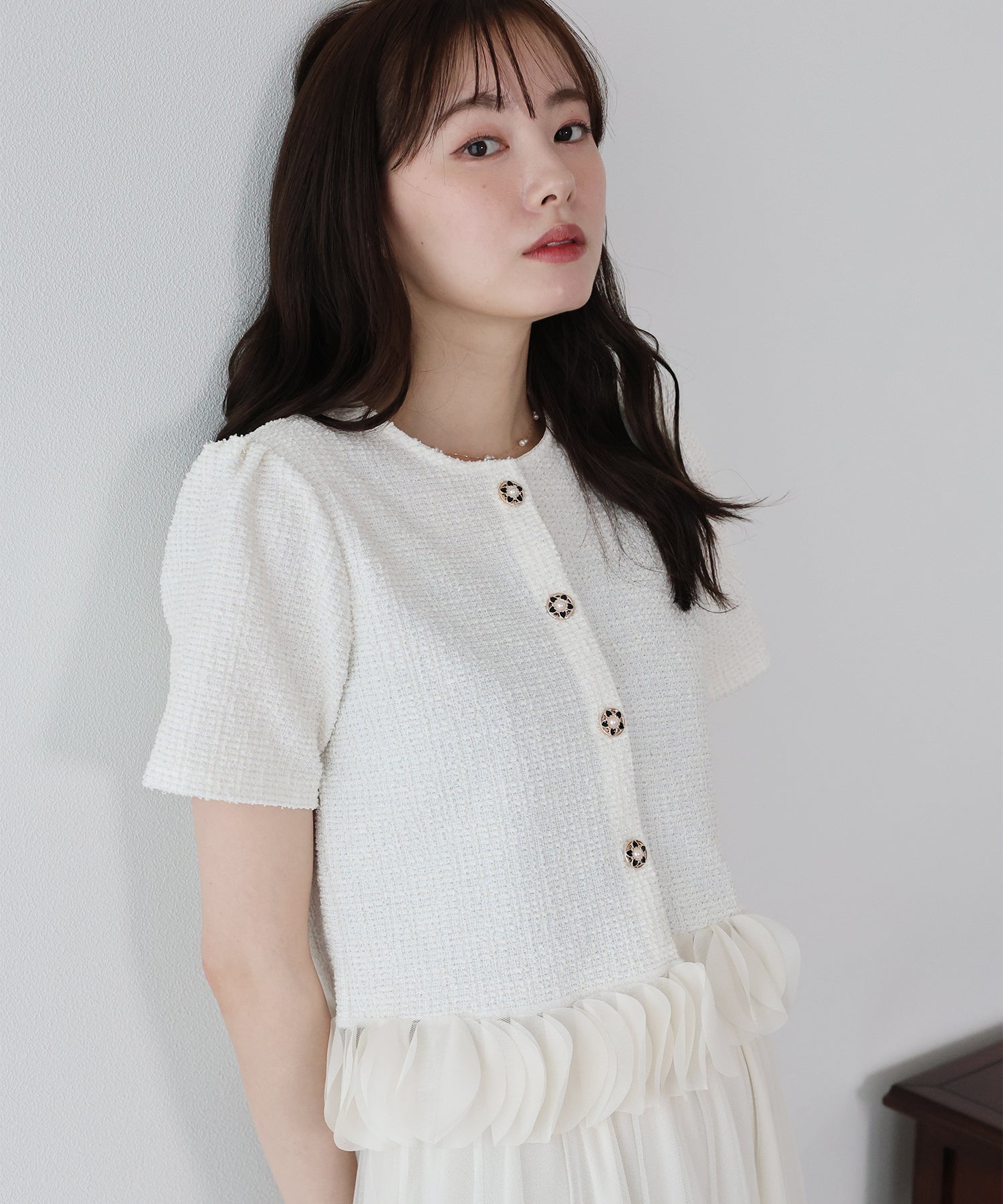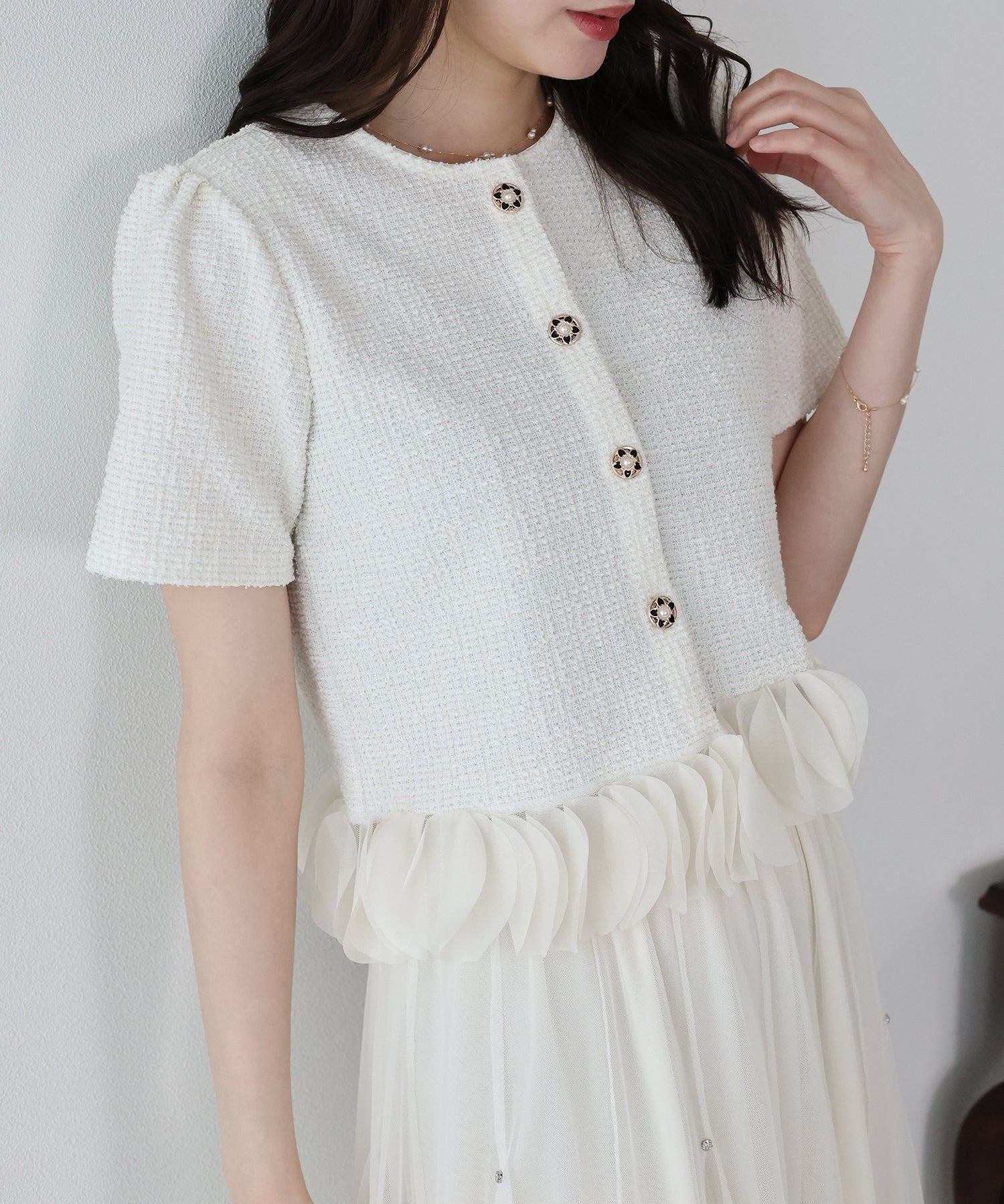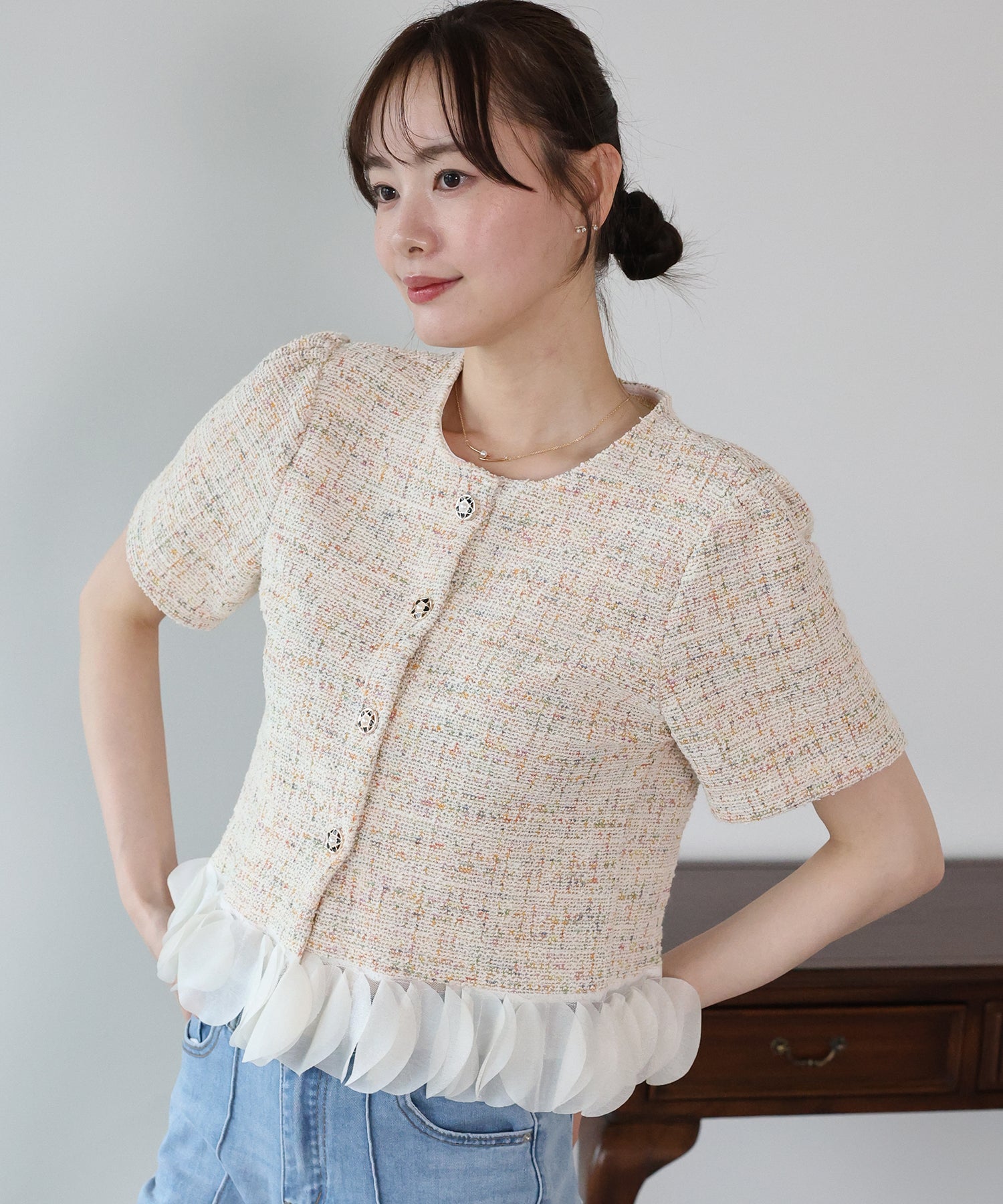 きちんと感×エレガントなフリルドッキング半袖ツイードジャケット