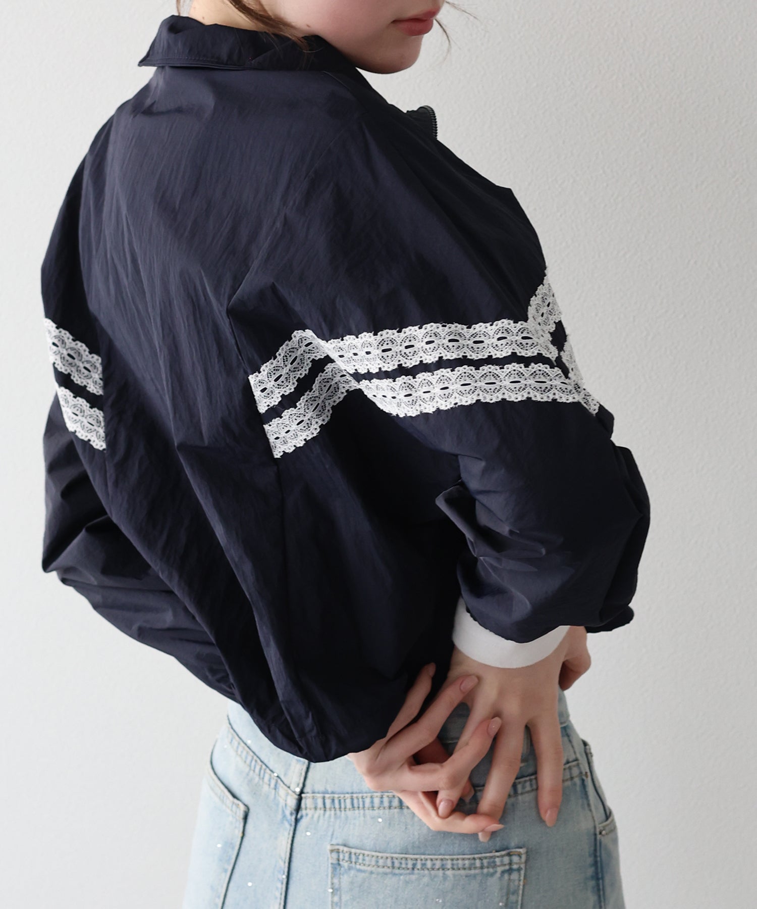 サイド・袖にトレンド感のあるレースを施し、スポーティーながら甘さのあるをデザインに。