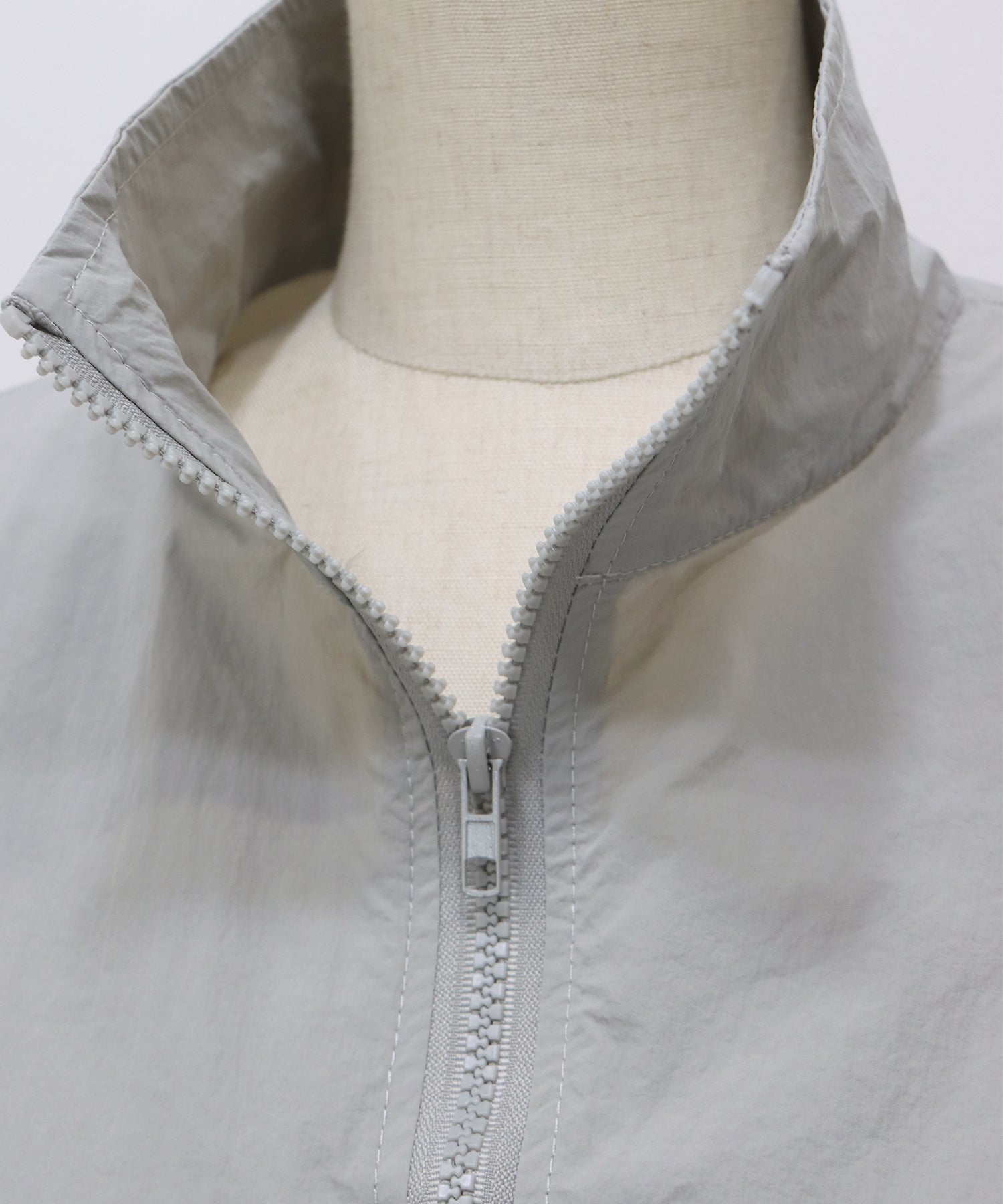 ナイロン混素材で軽やかな着心地が魅力のトラックジャケット。