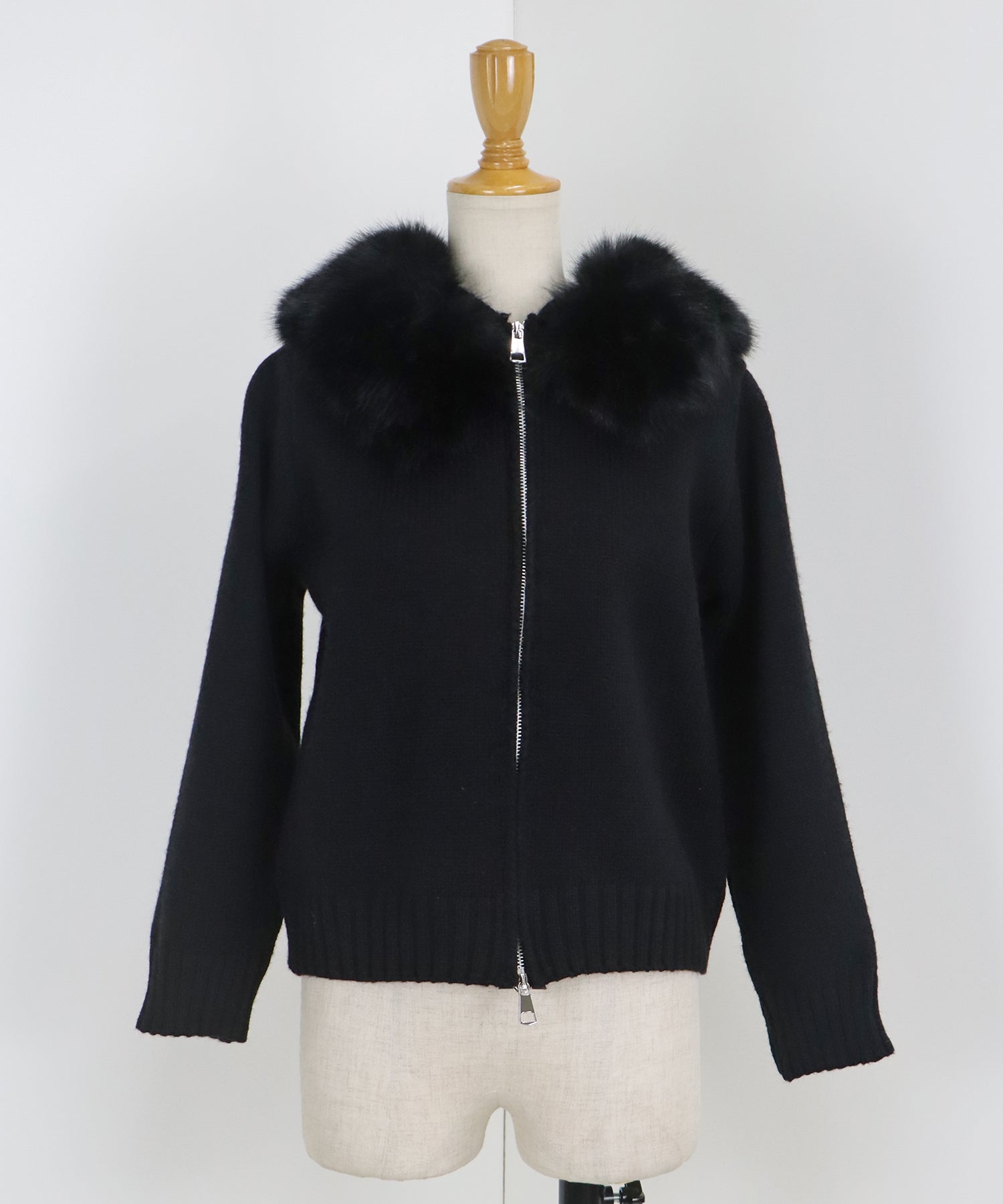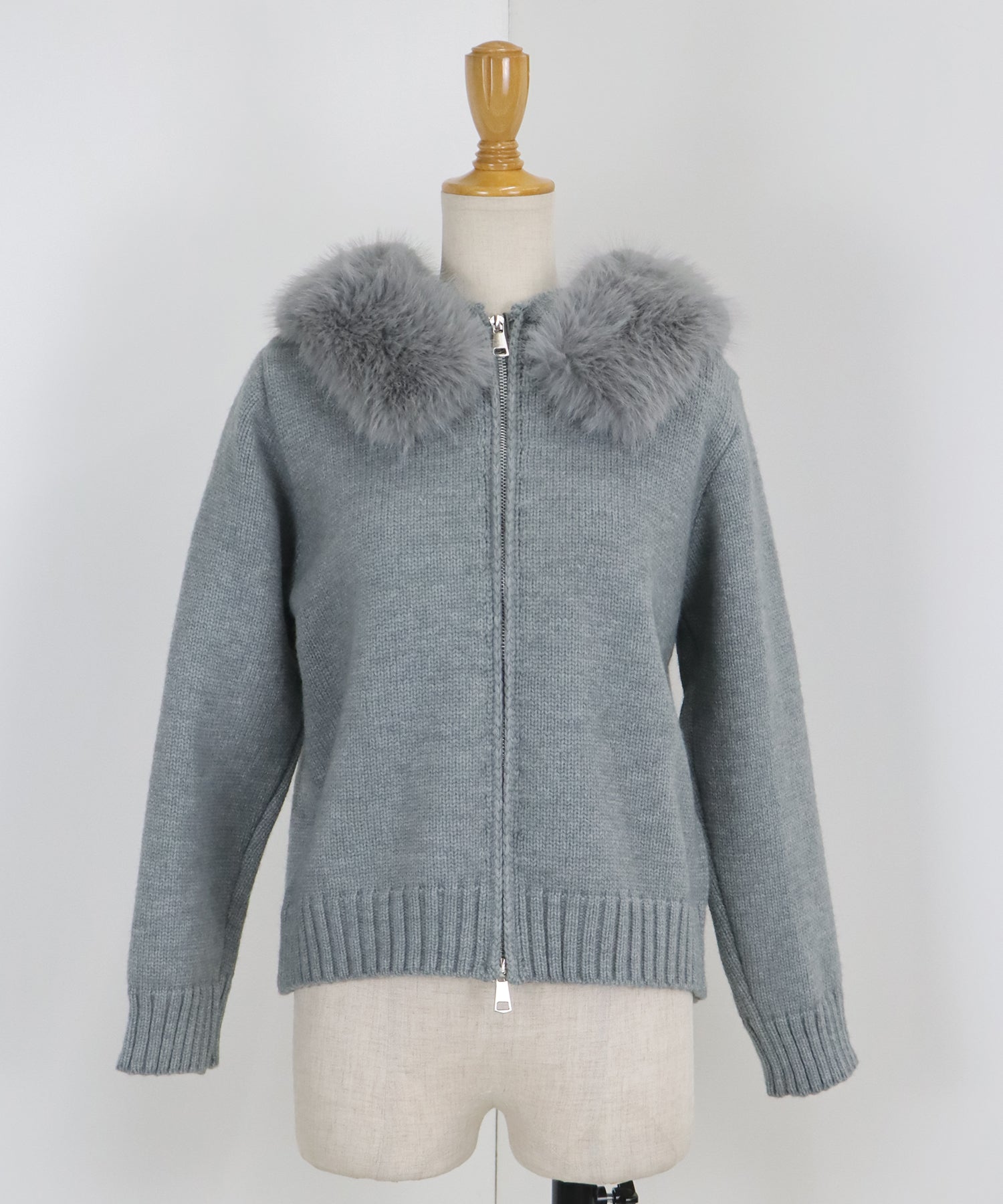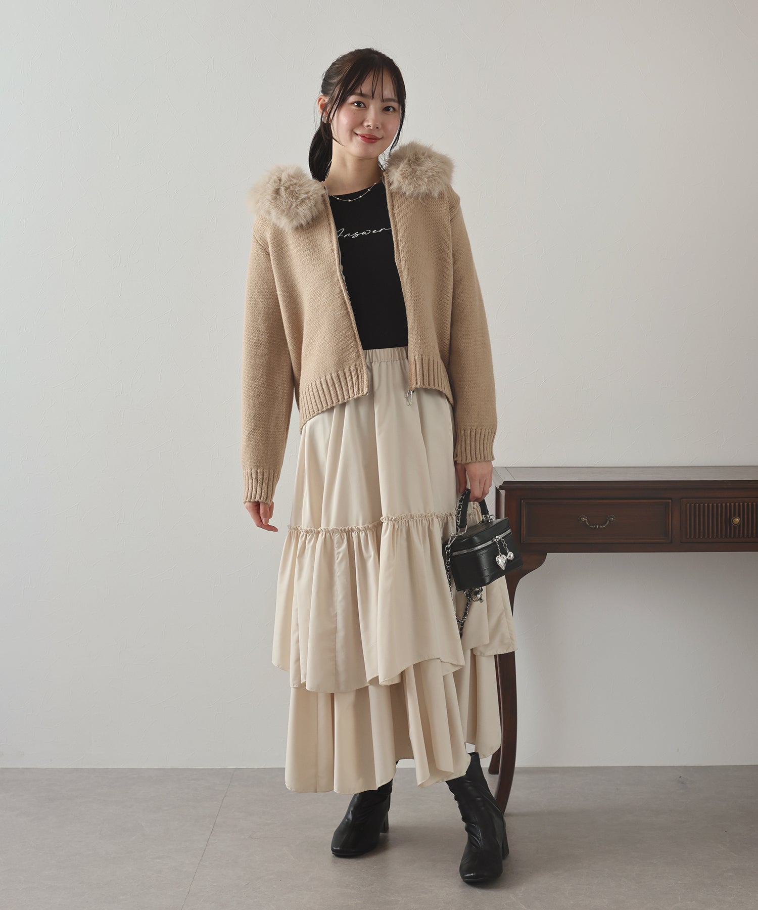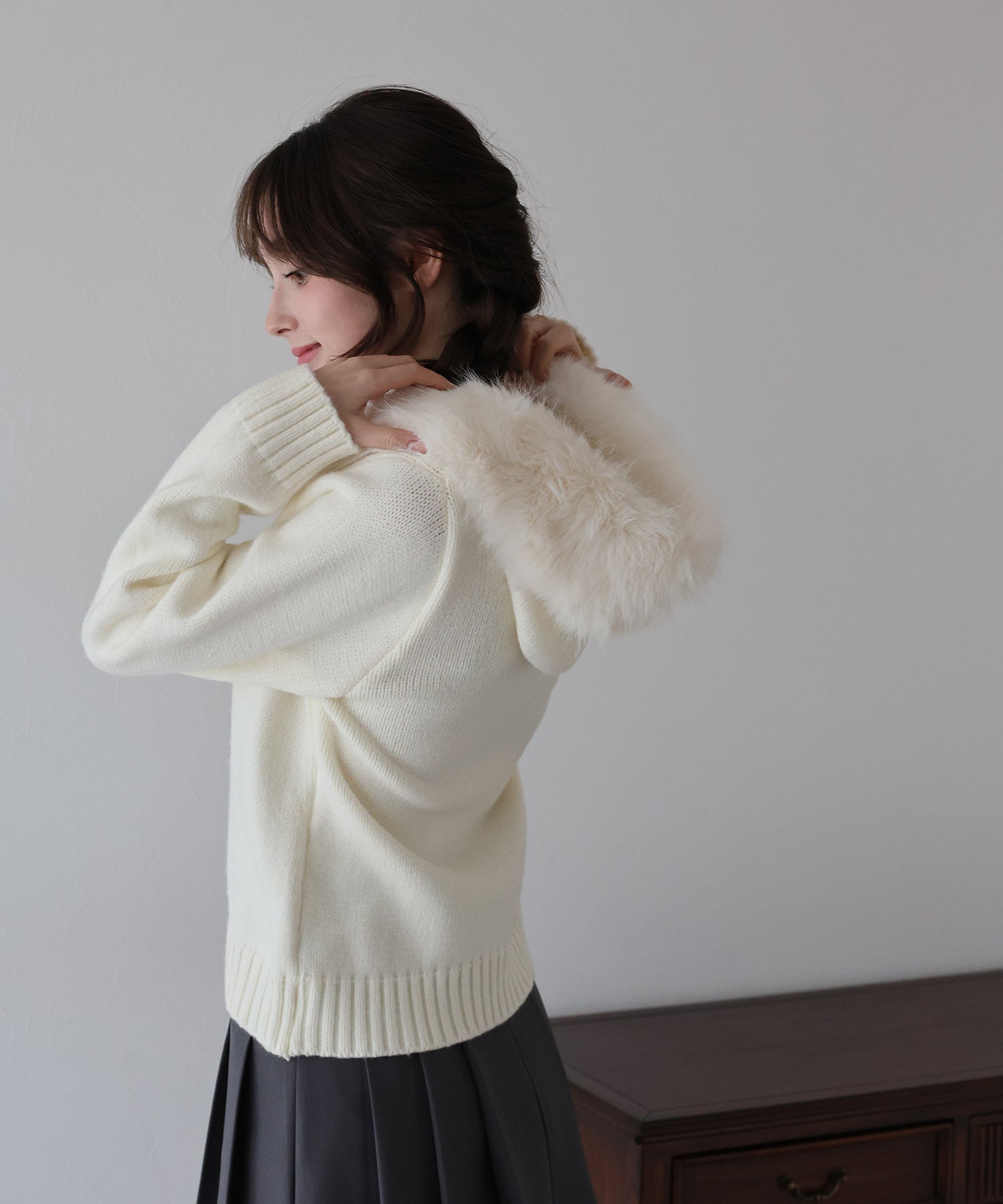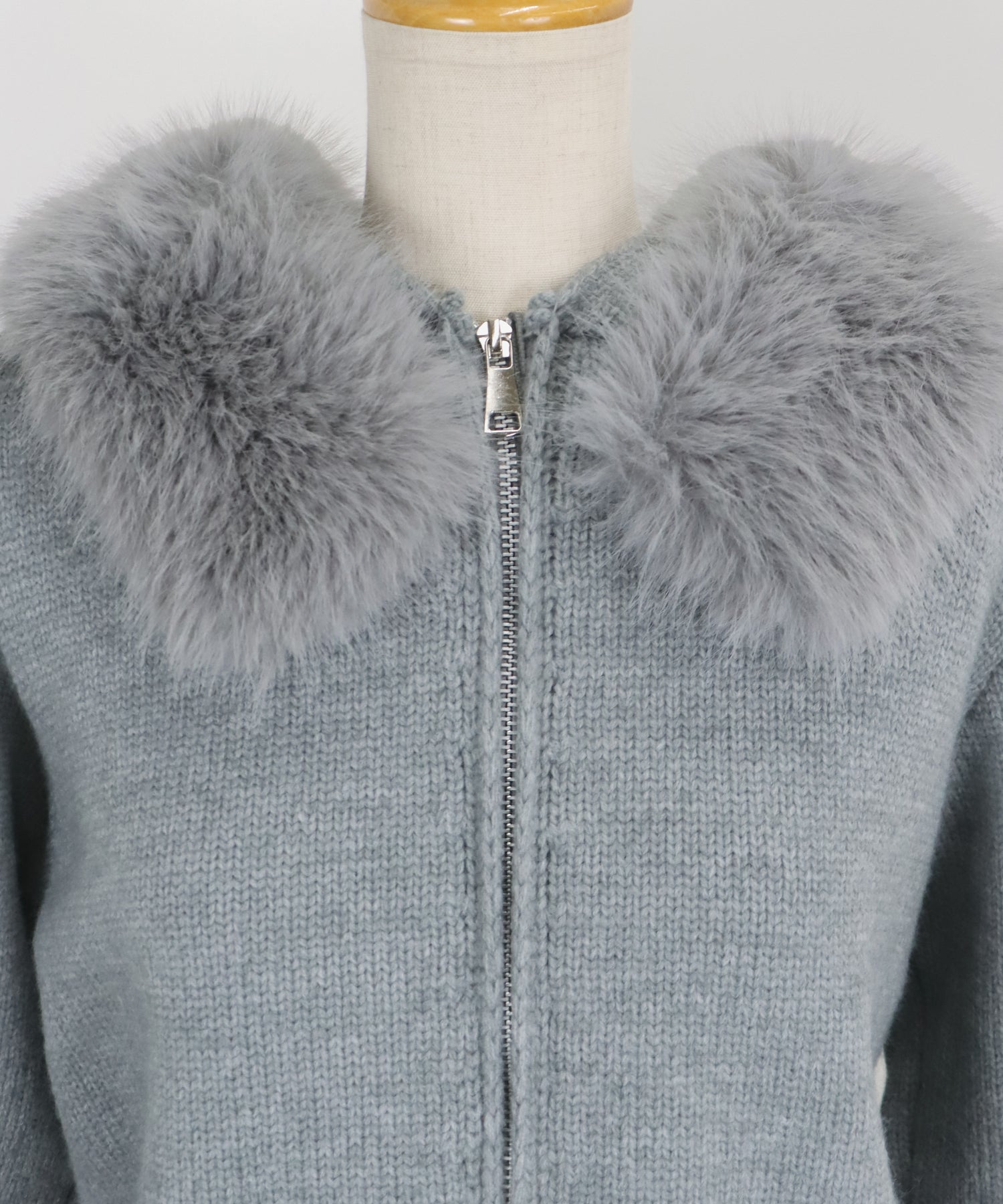 ファーがかわいらしく暖かみのあるニットフーディ。