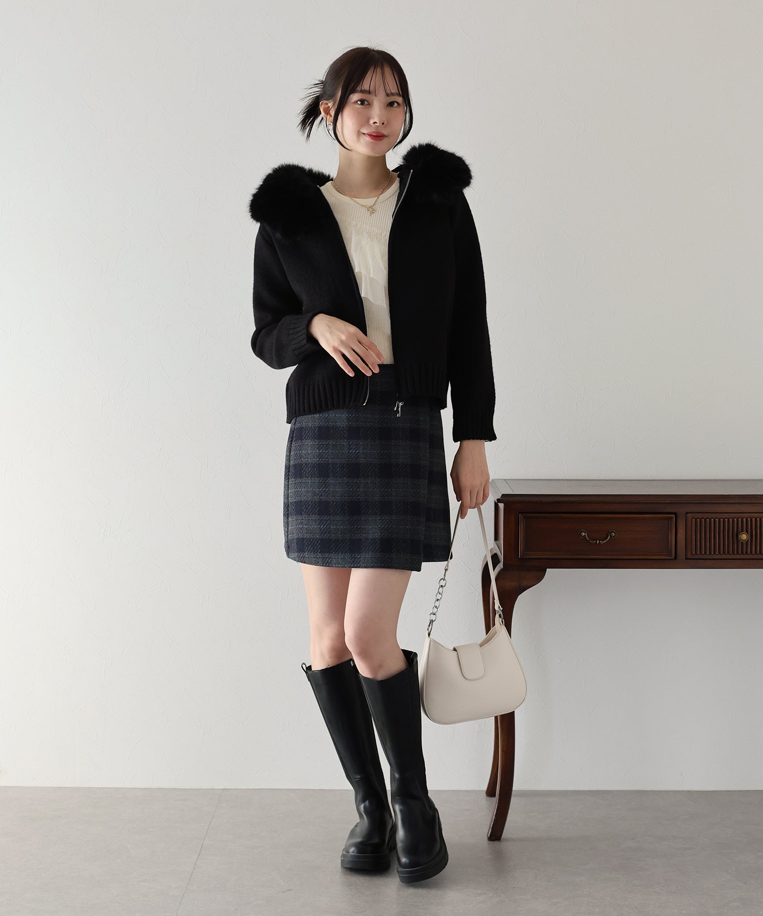ボリューミーなファーが小顔効果抜群のニットパーカー