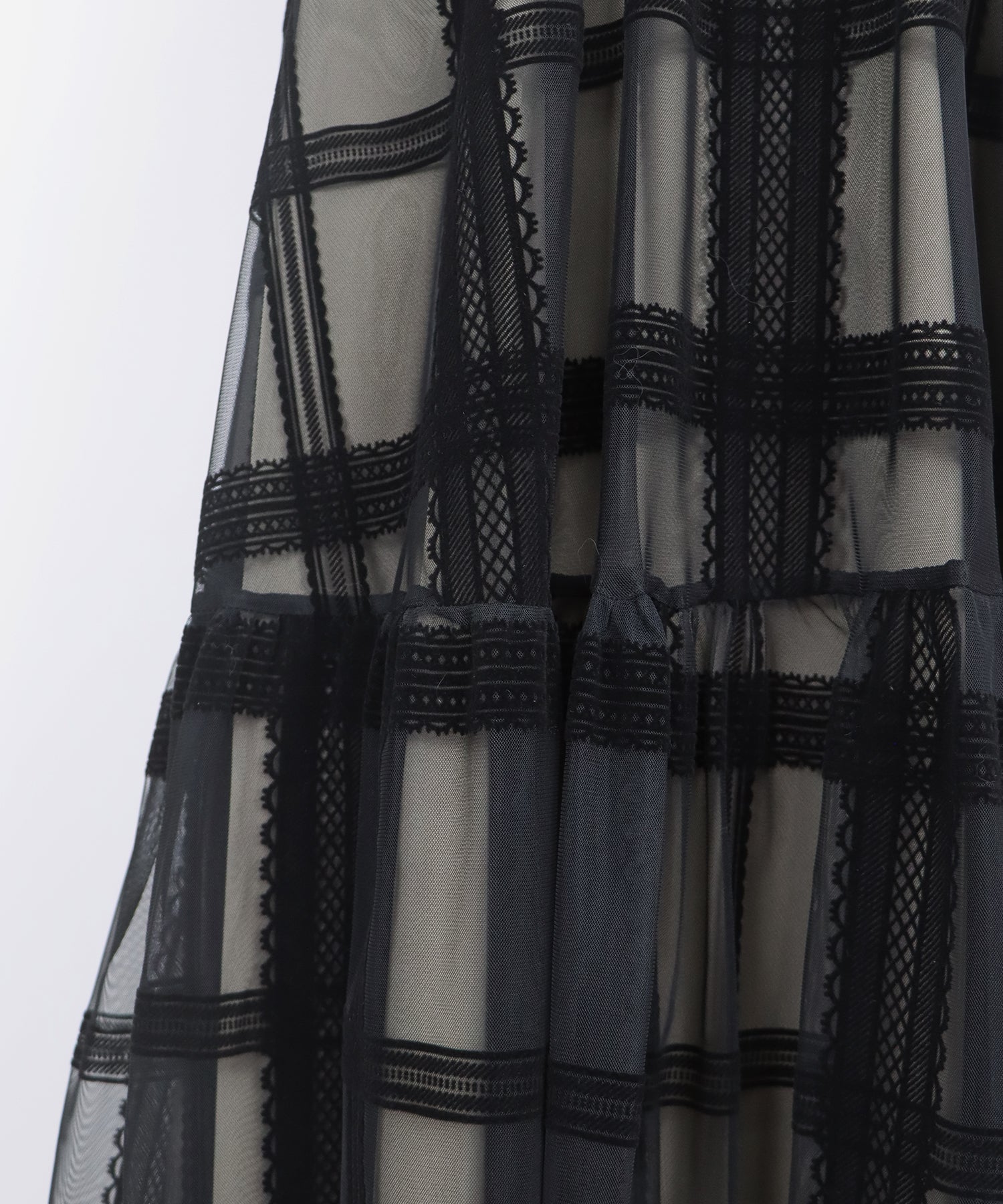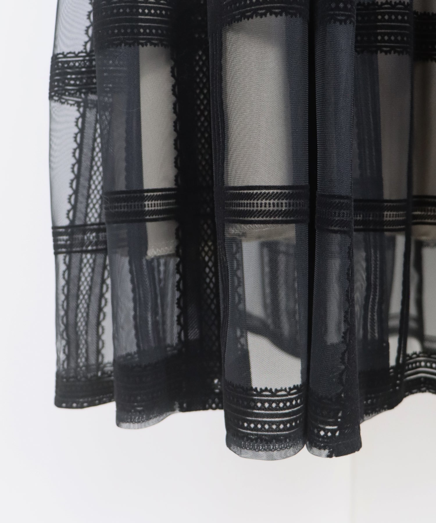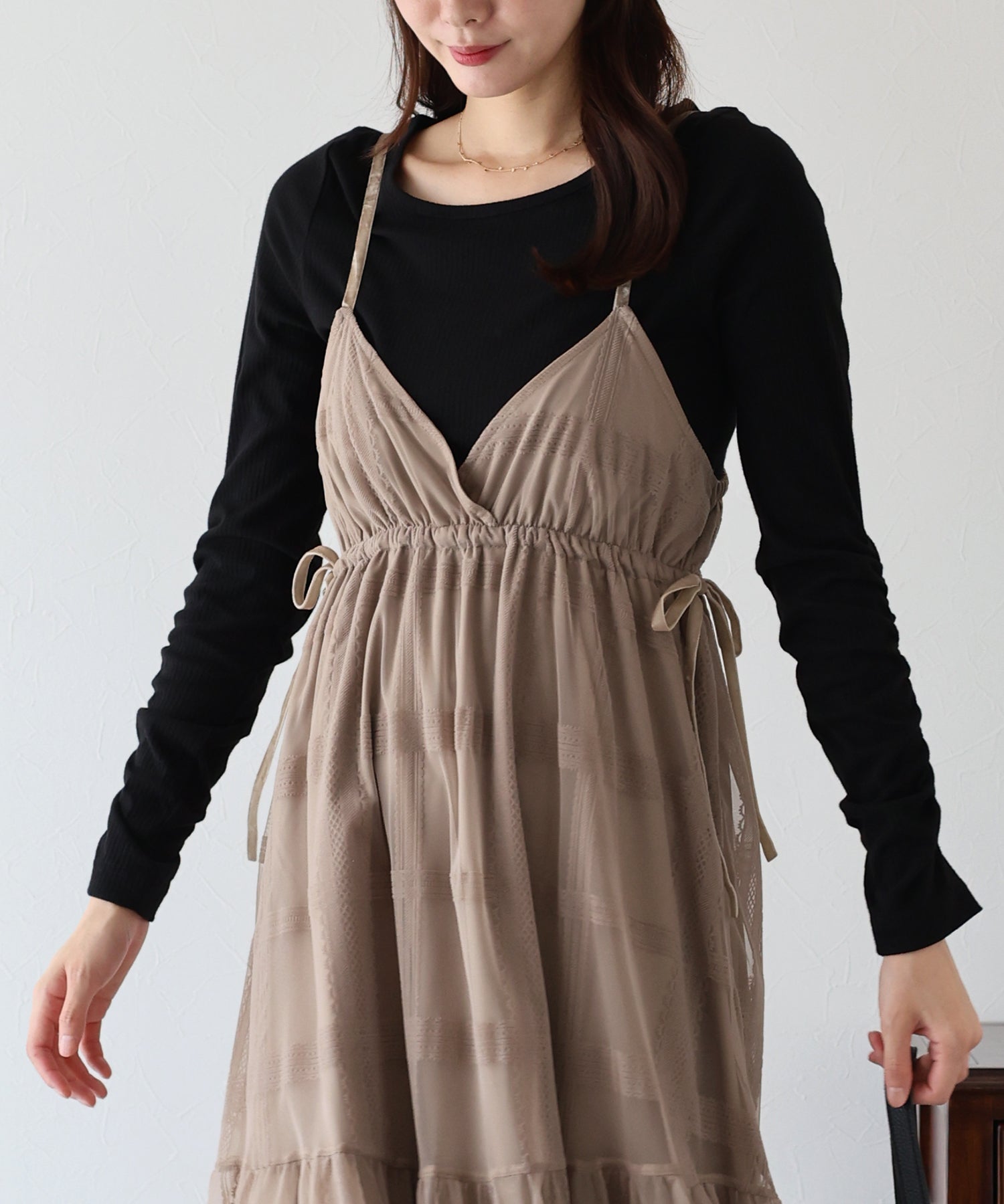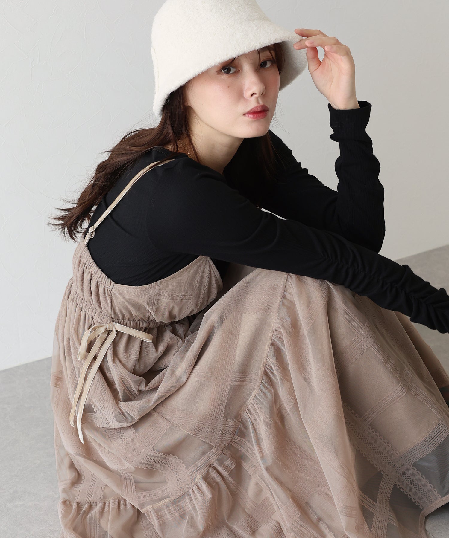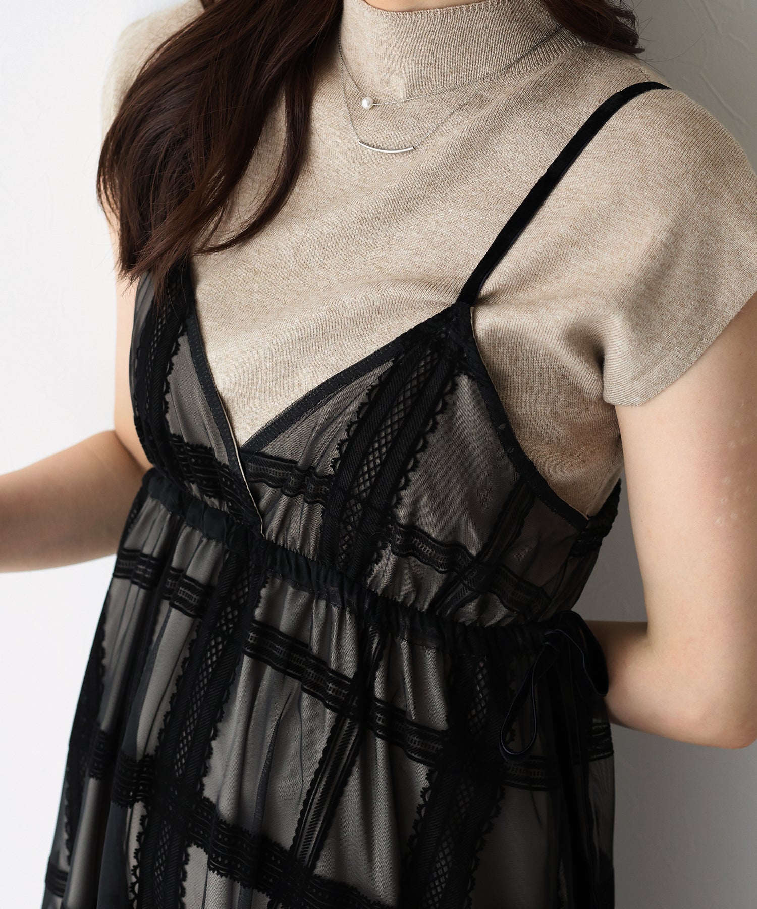 【早割5%OFF】チュール袖マーメイドニットワンピース