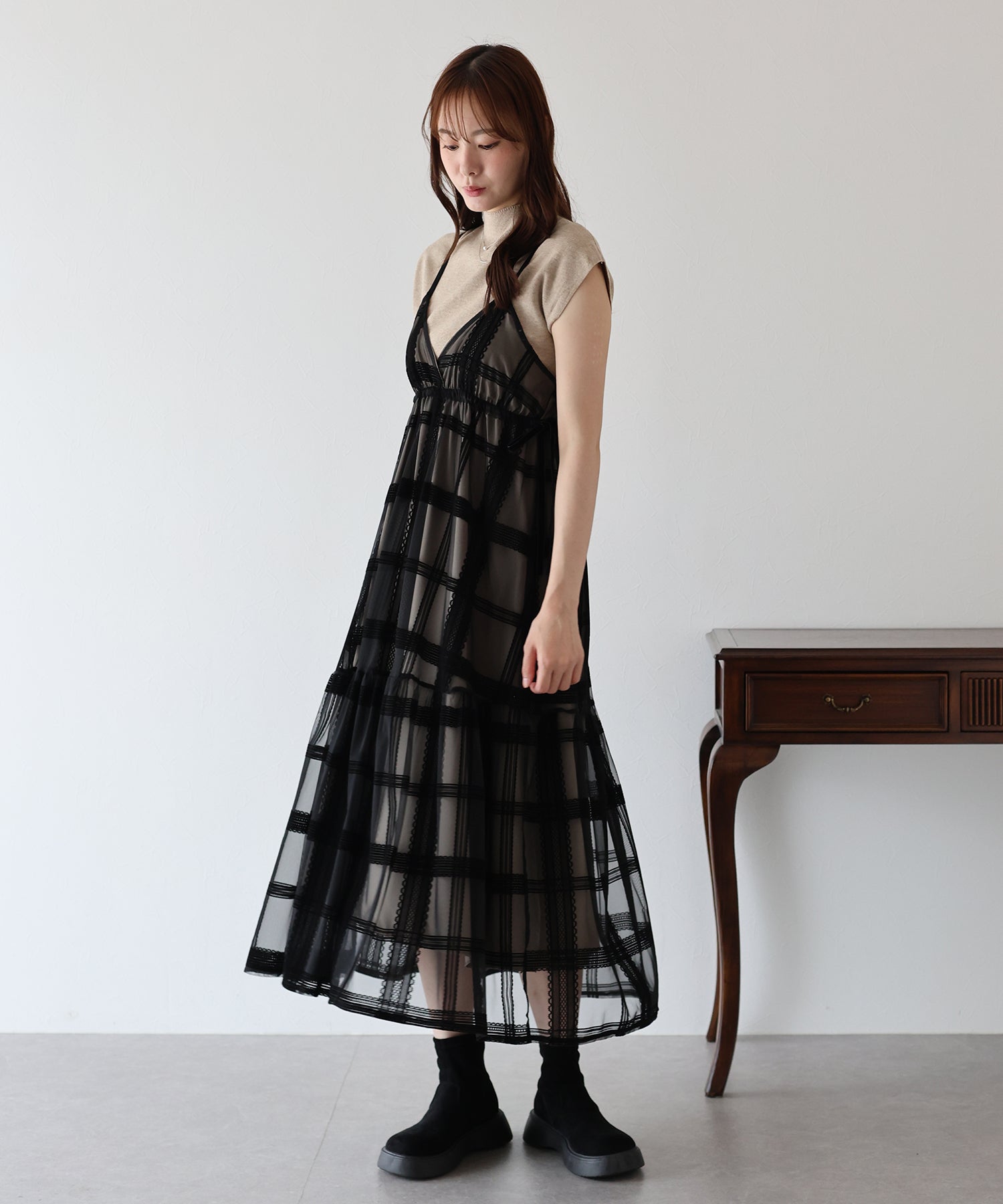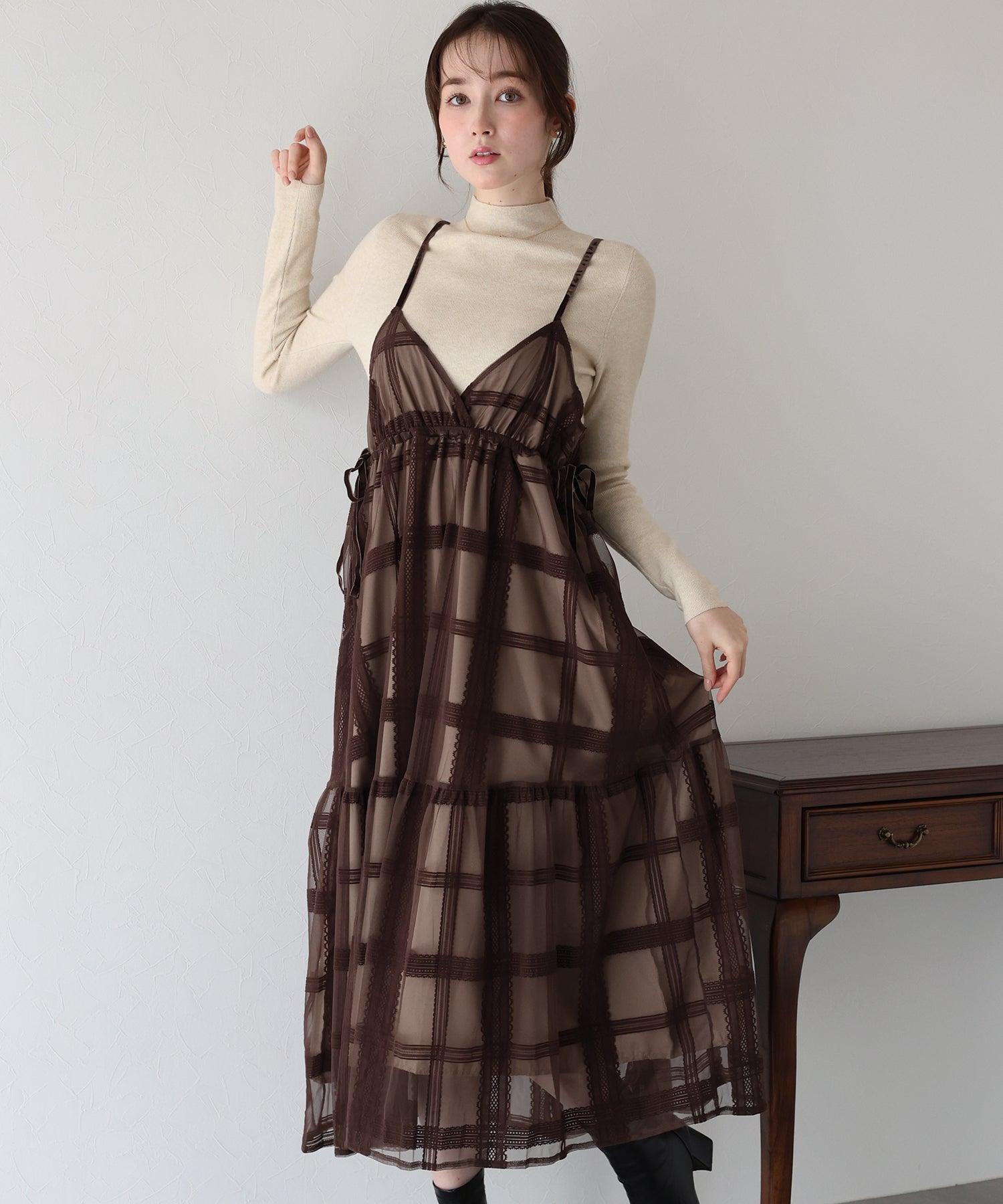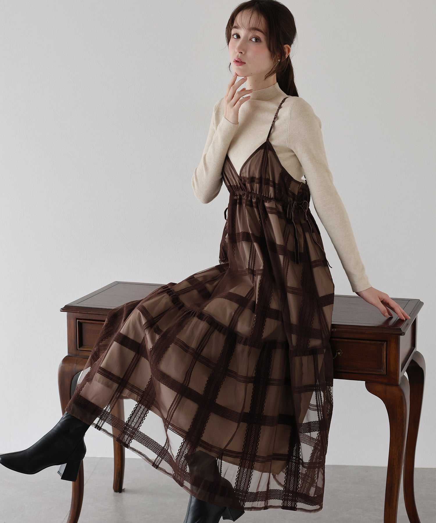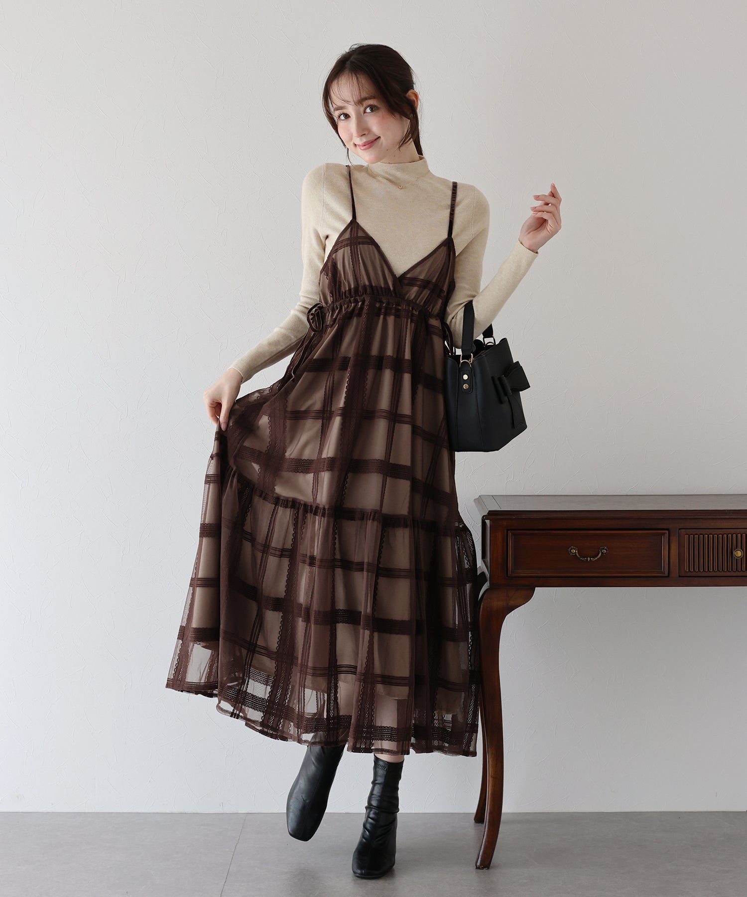 クラシカルな雰囲気を纏うフロッキーチェックのキャミワンピース