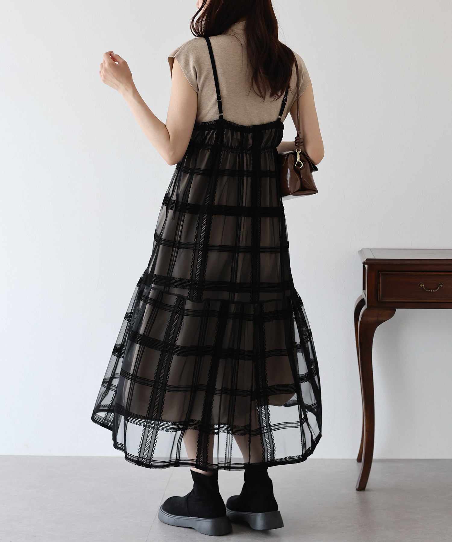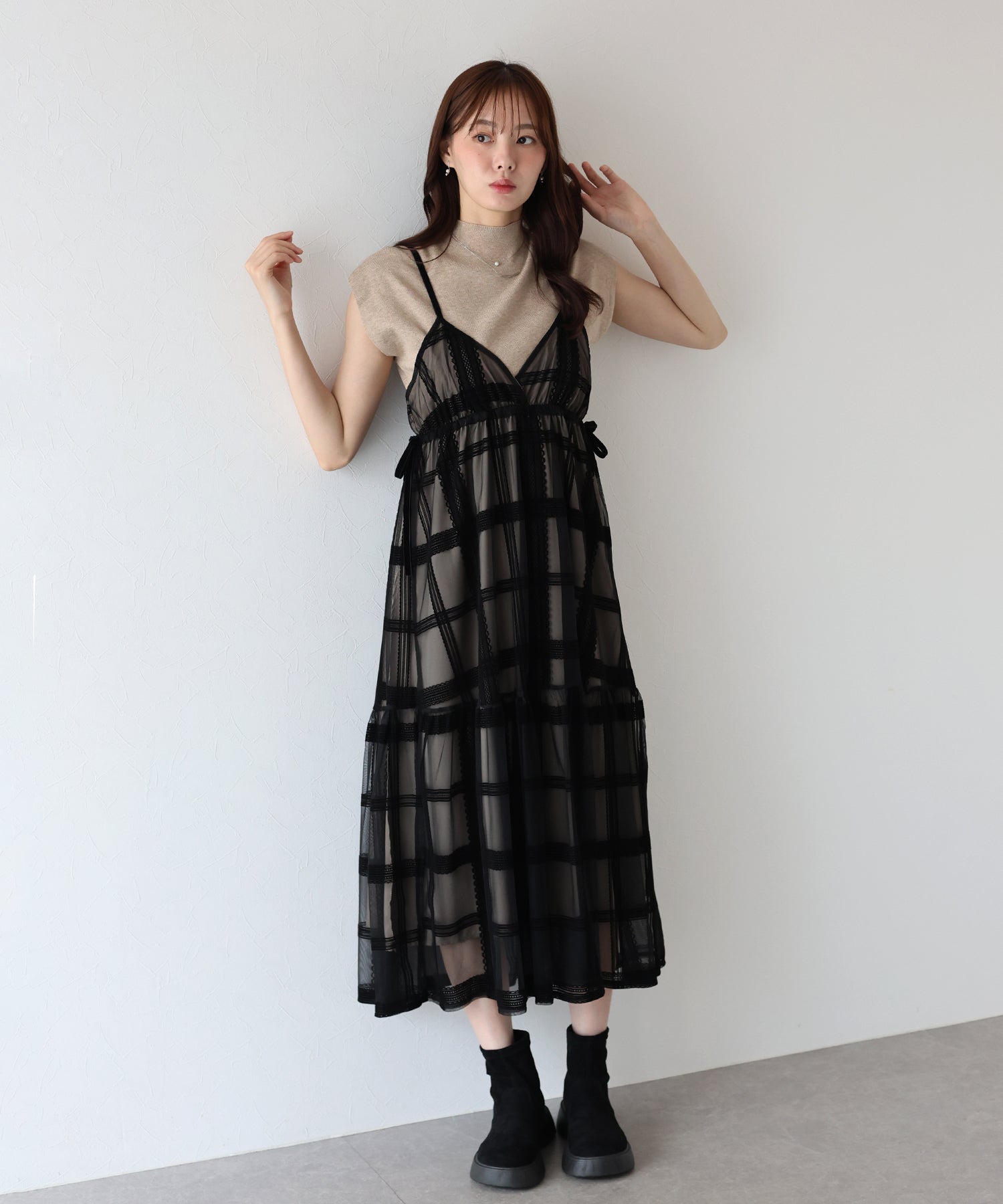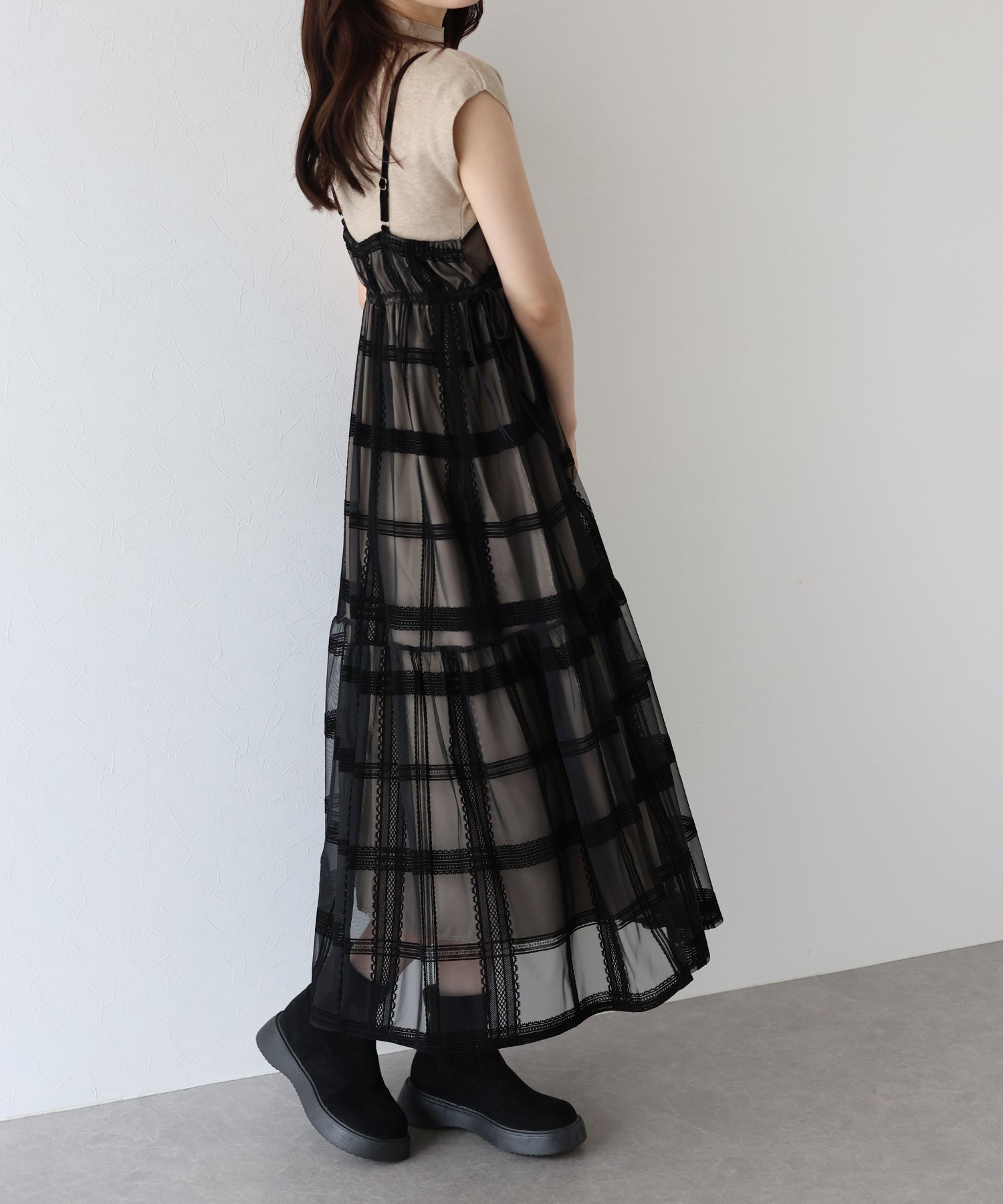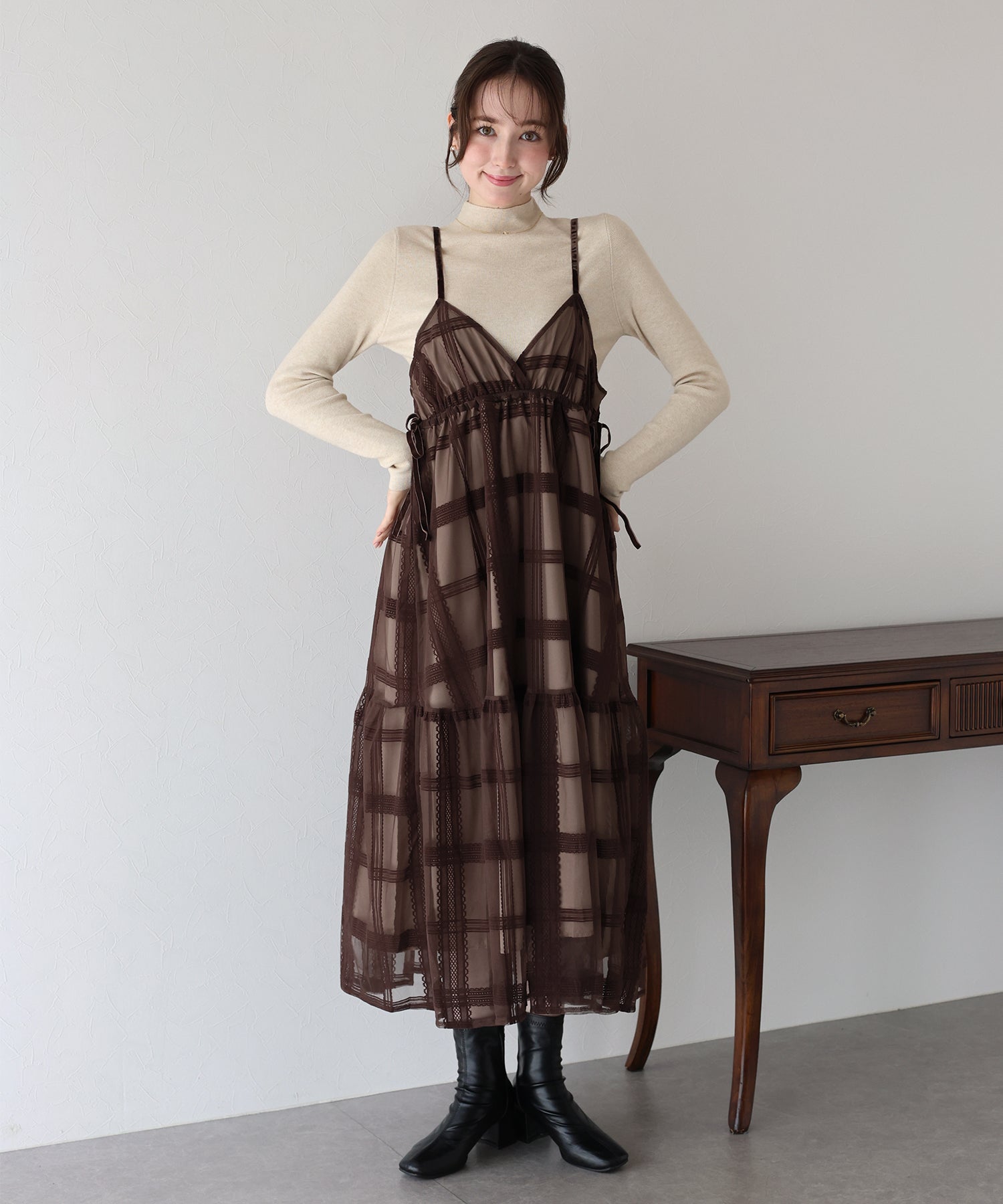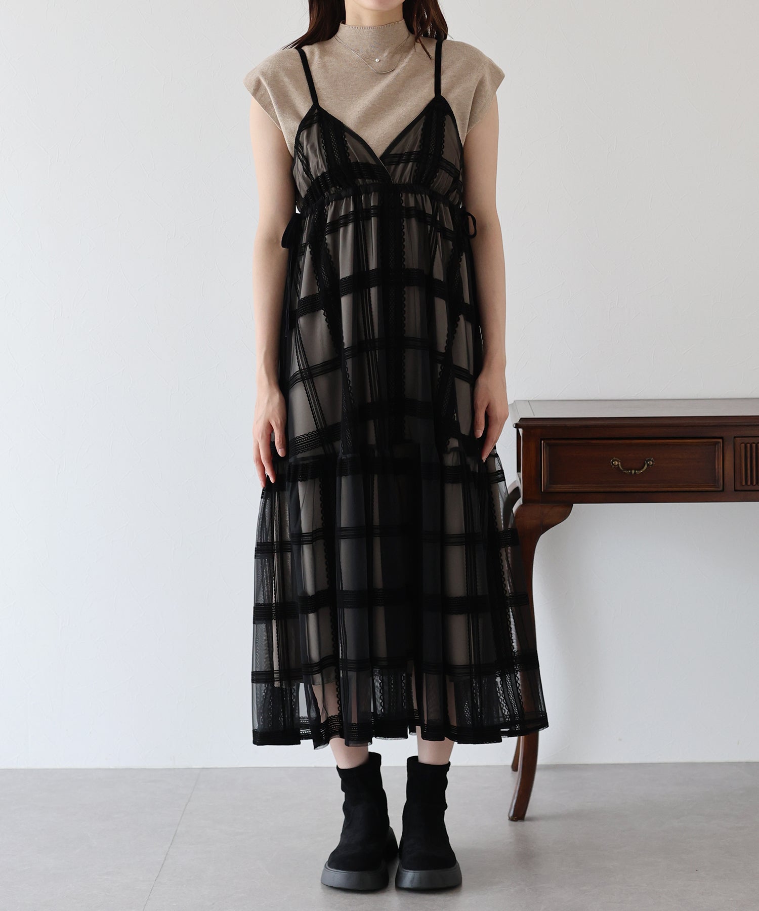 クラシカルな雰囲気を纏うフロッキーチェックのキャミワンピース