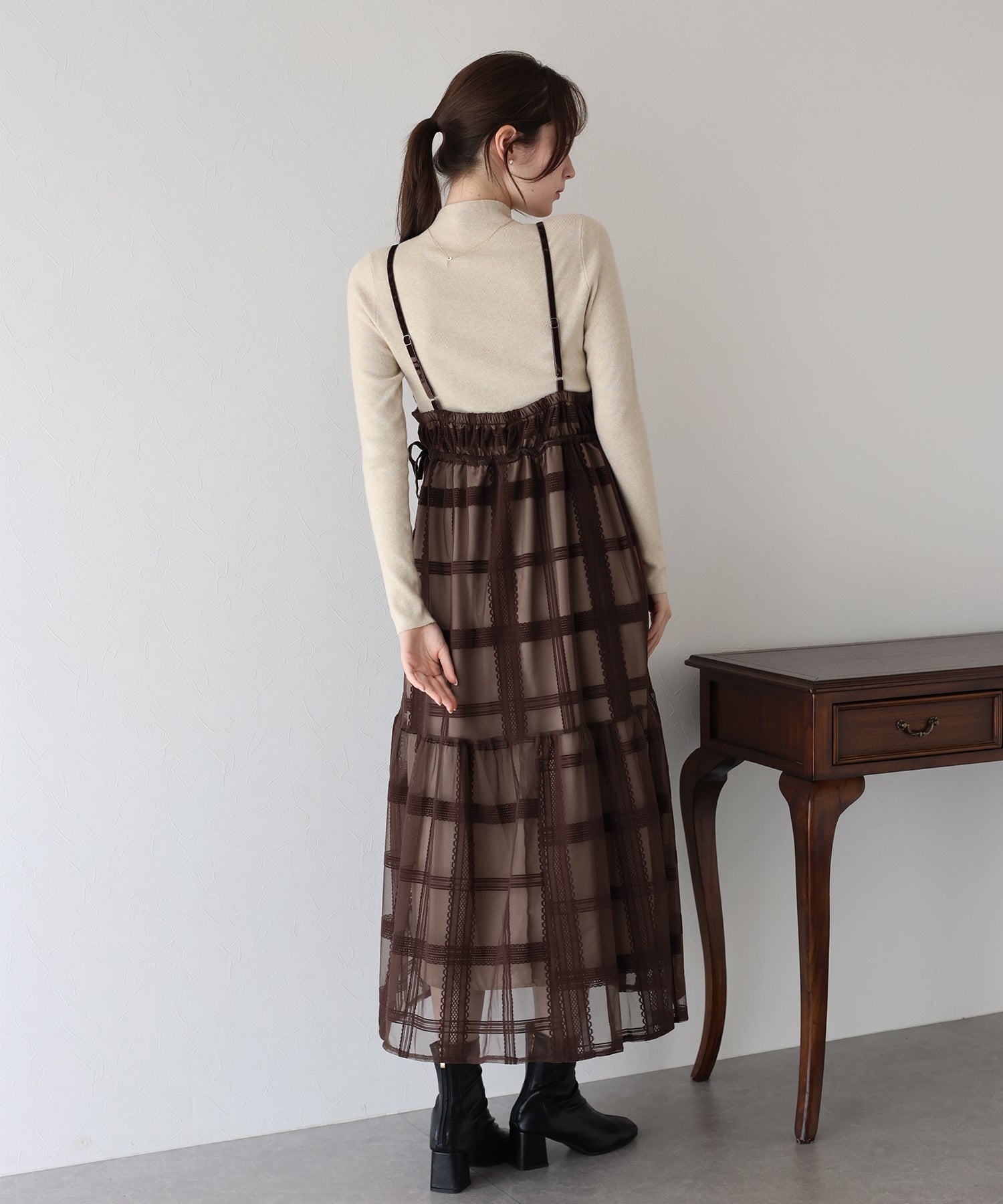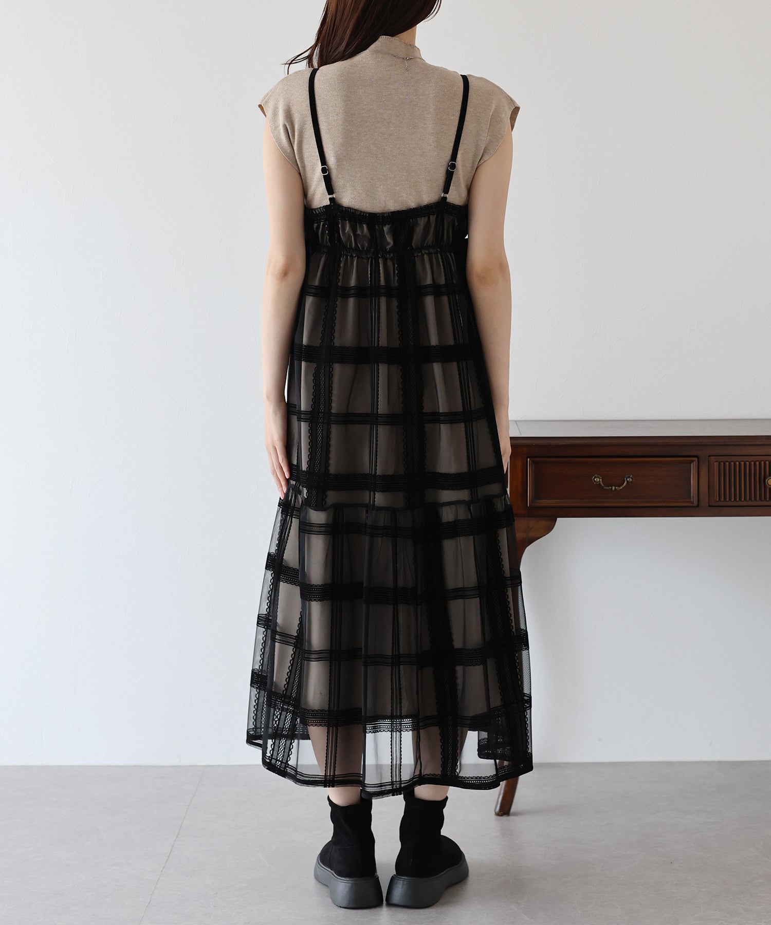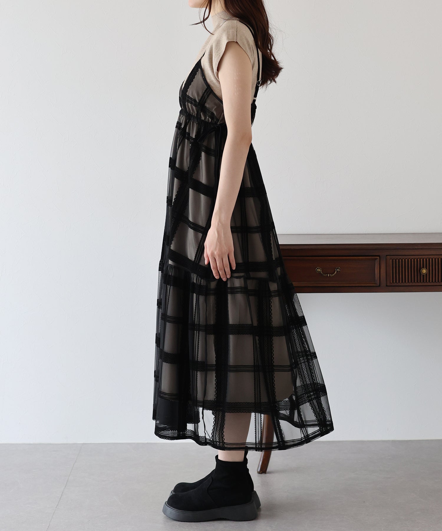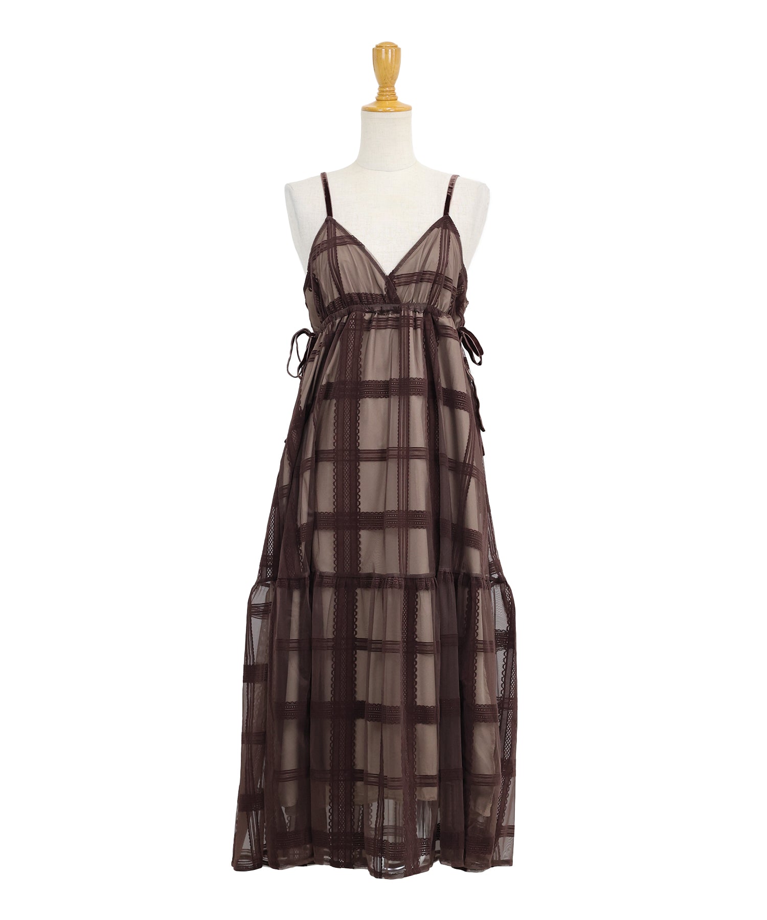 クラシカルな雰囲気を纏うフロッキーチェックのキャミワンピース