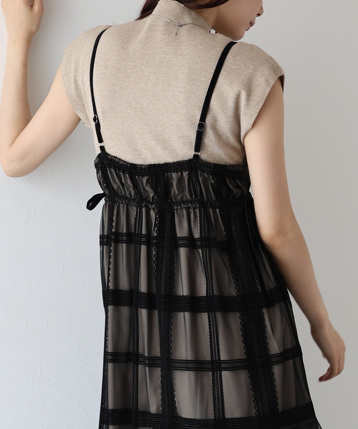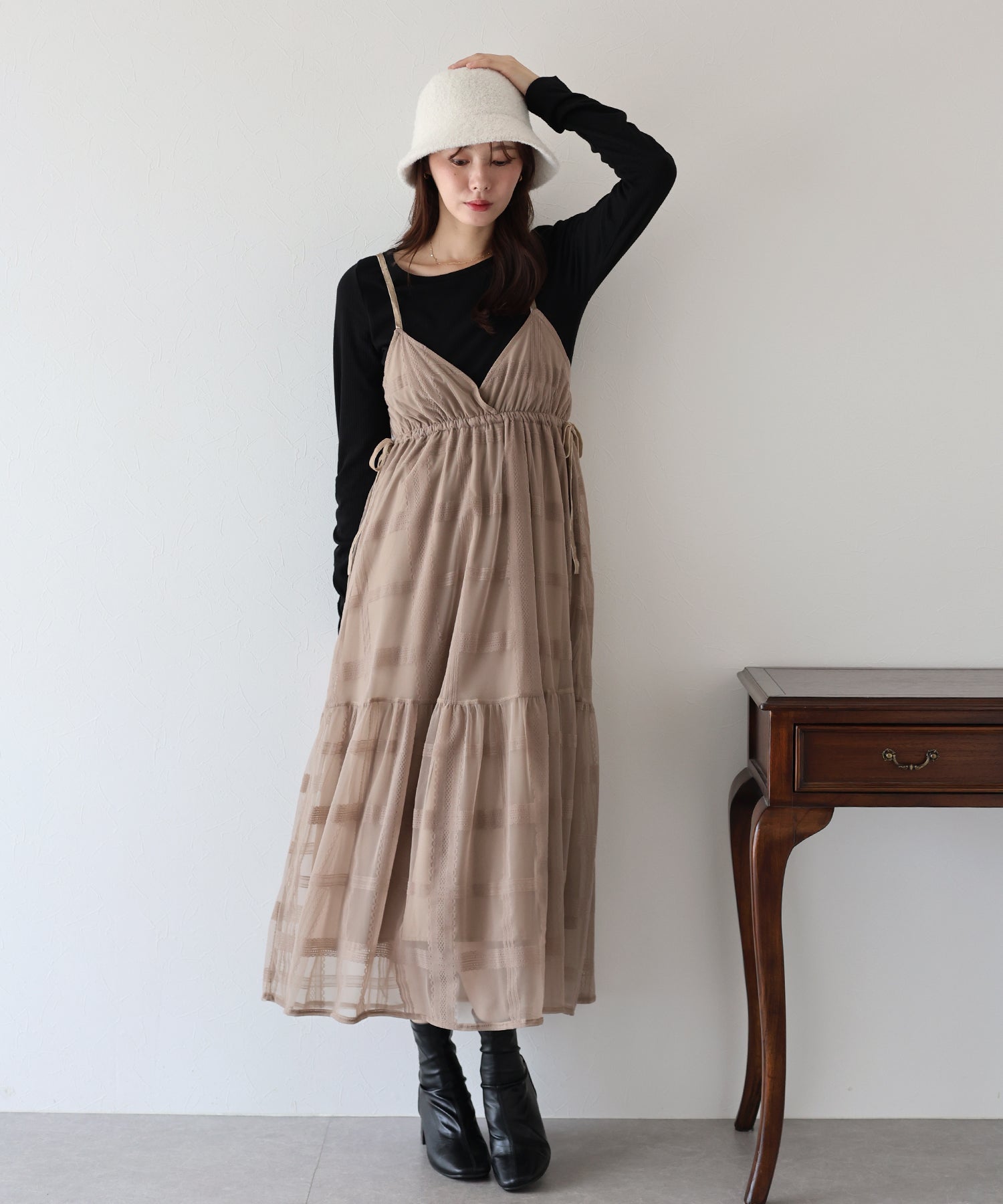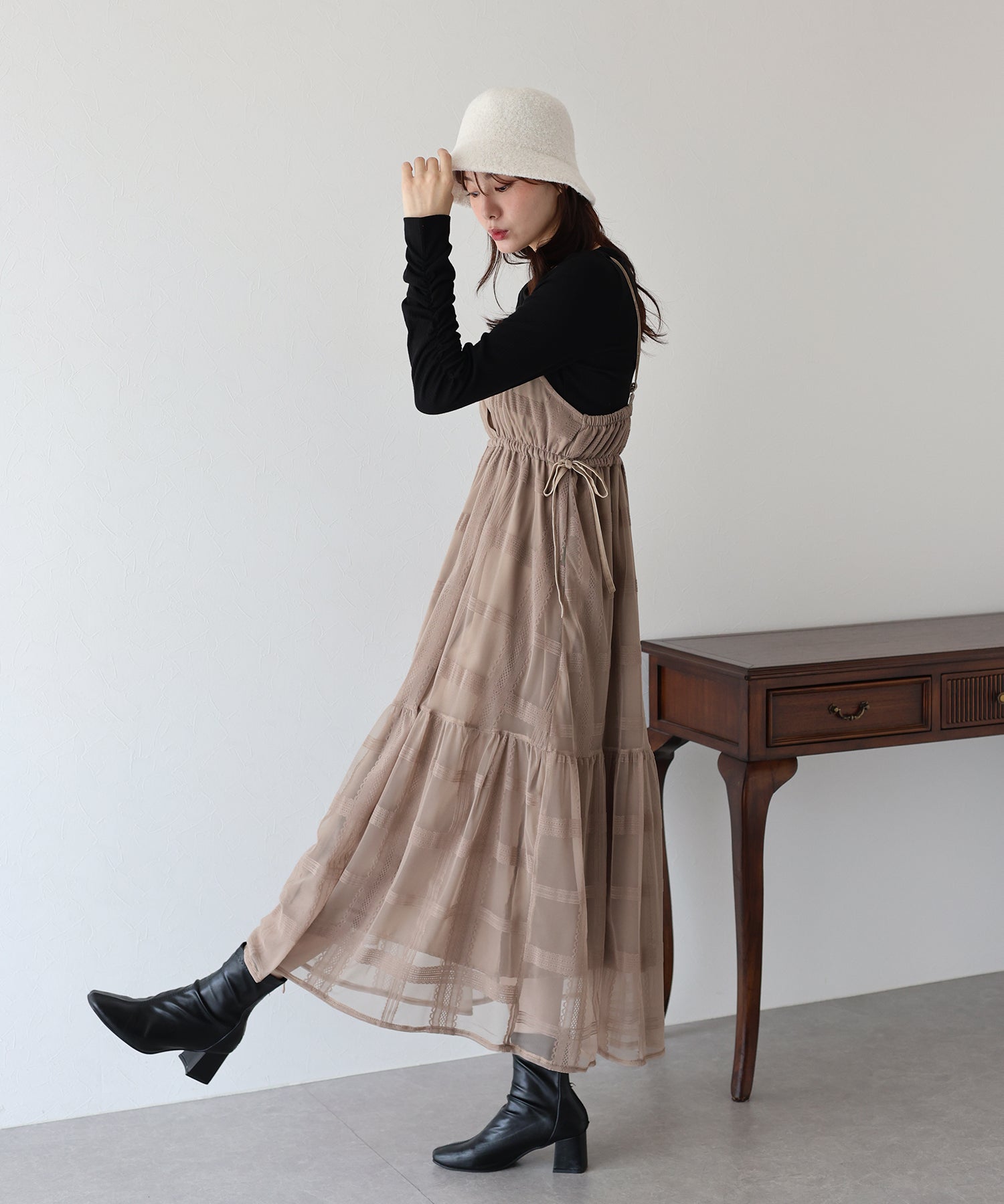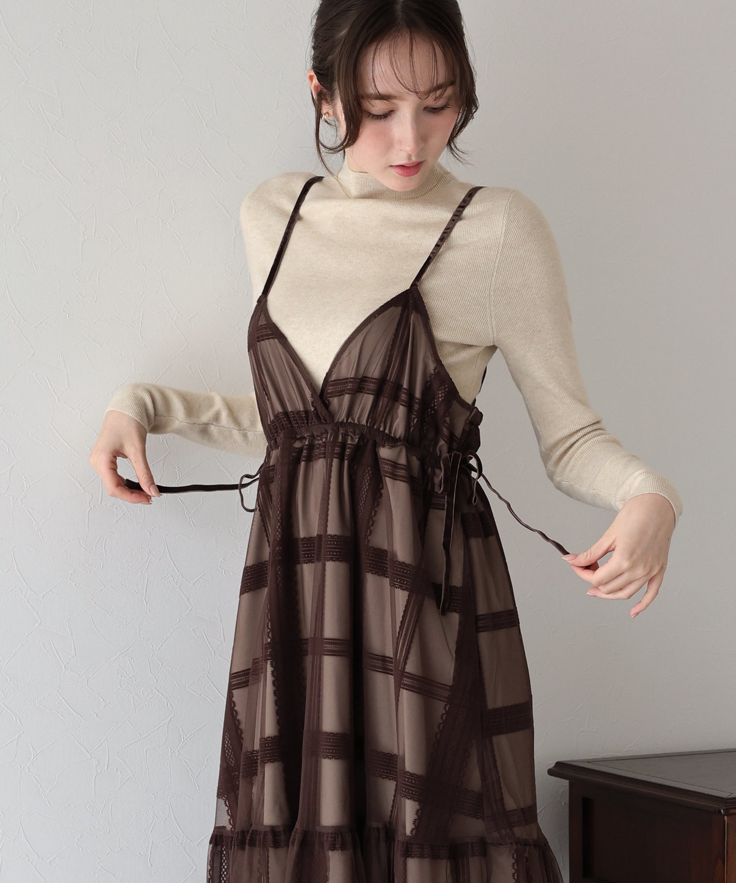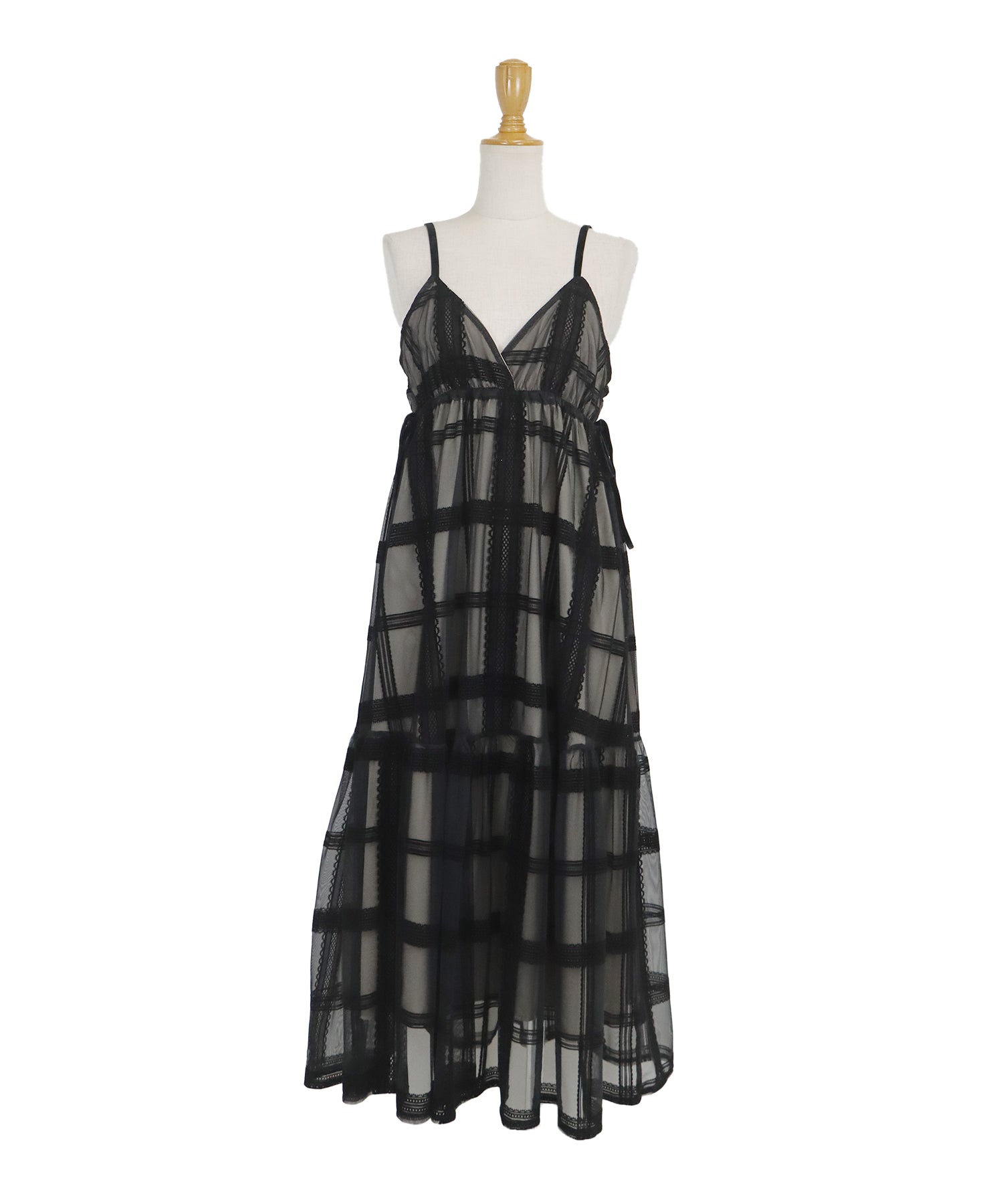 クラシカルな雰囲気を纏うフロッキーチェックのキャミワンピース