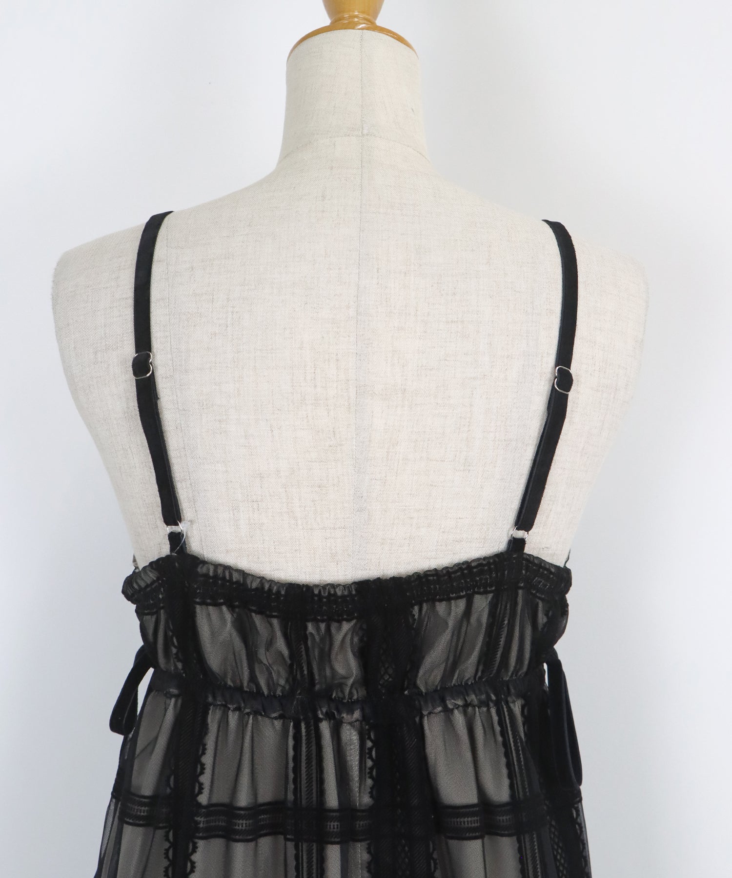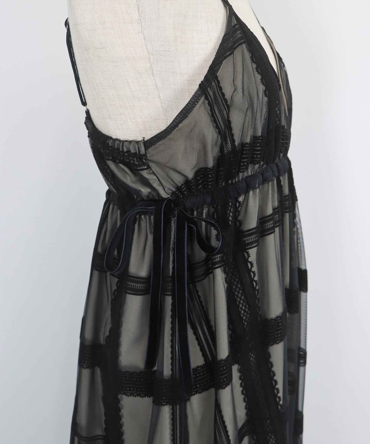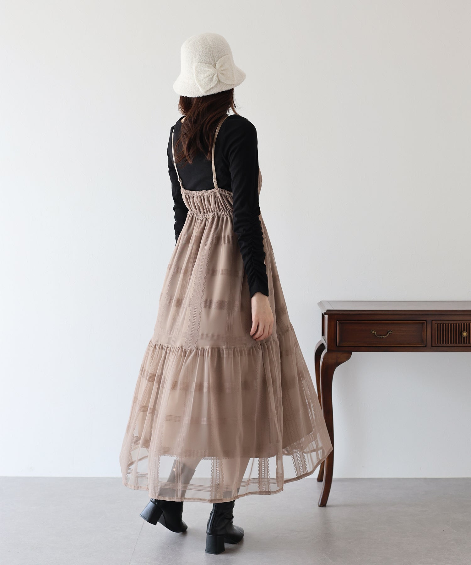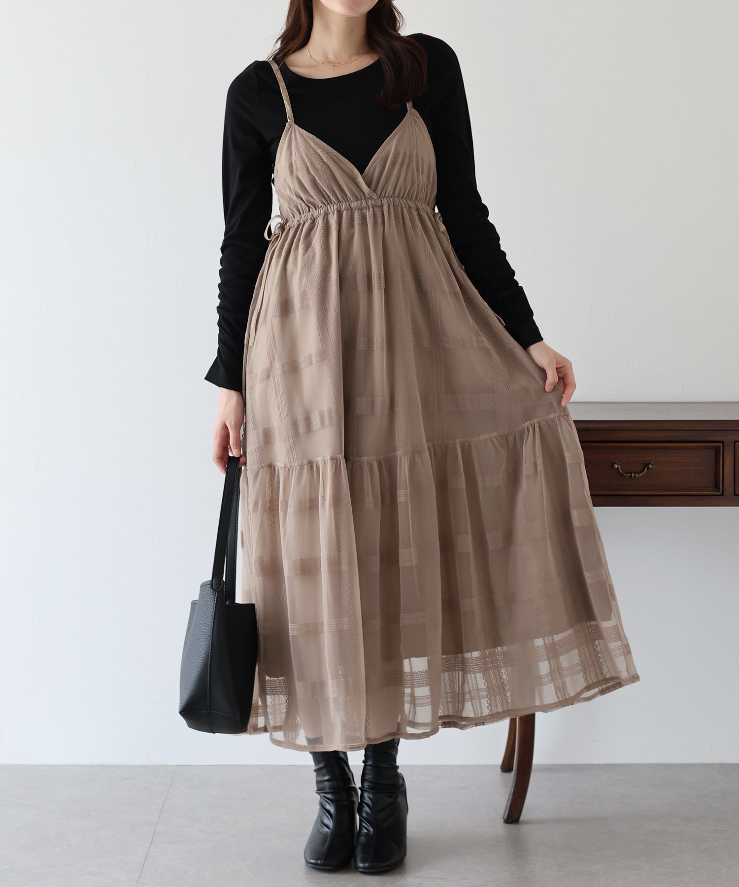 クラシカルな雰囲気を纏うフロッキーチェックのキャミワンピース