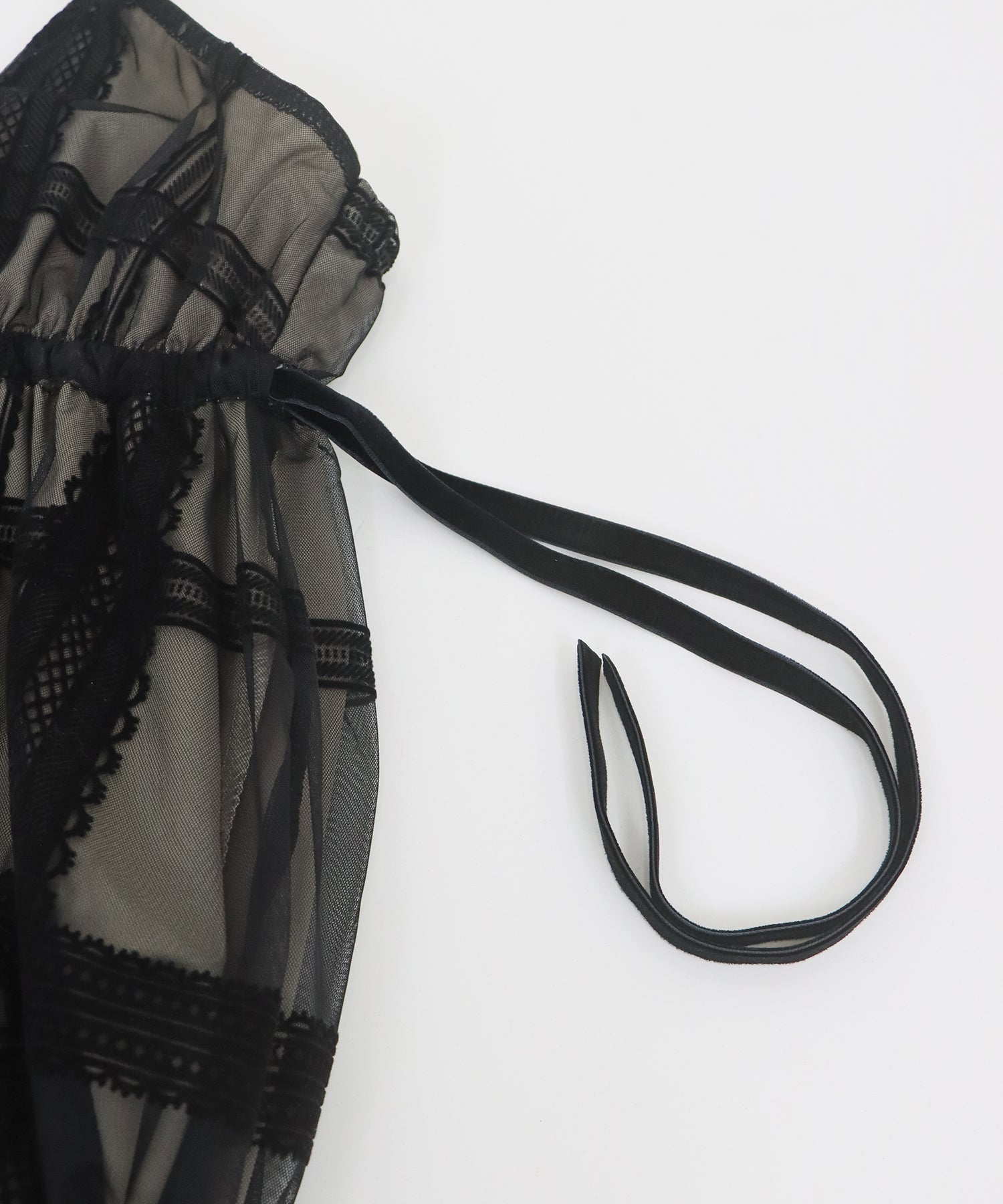 サイドのウエストリボンはシルエットを調節することができ、ベロア素材がシーズンライクな印象に◎
