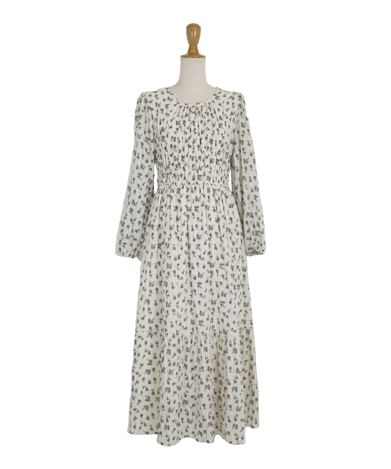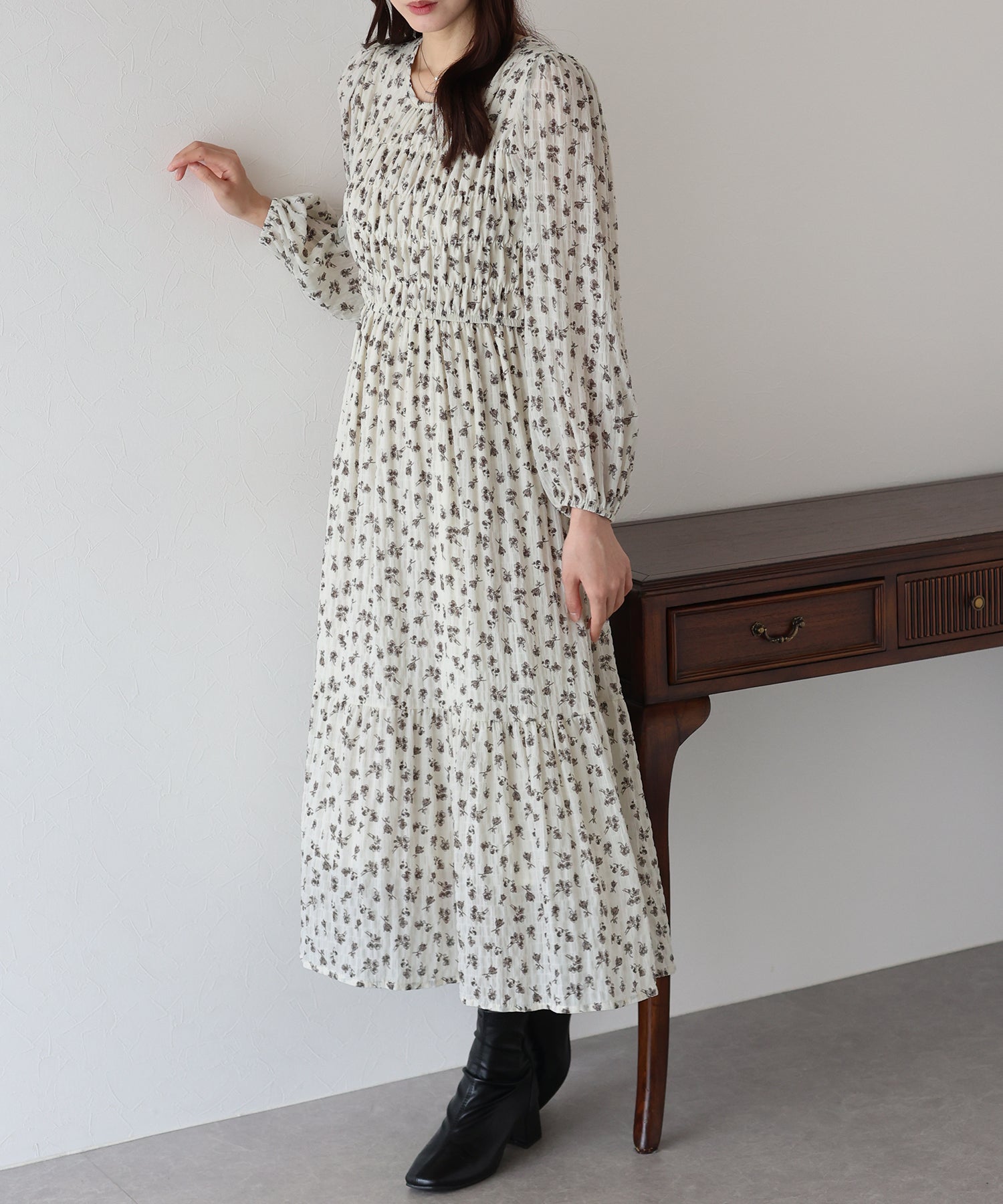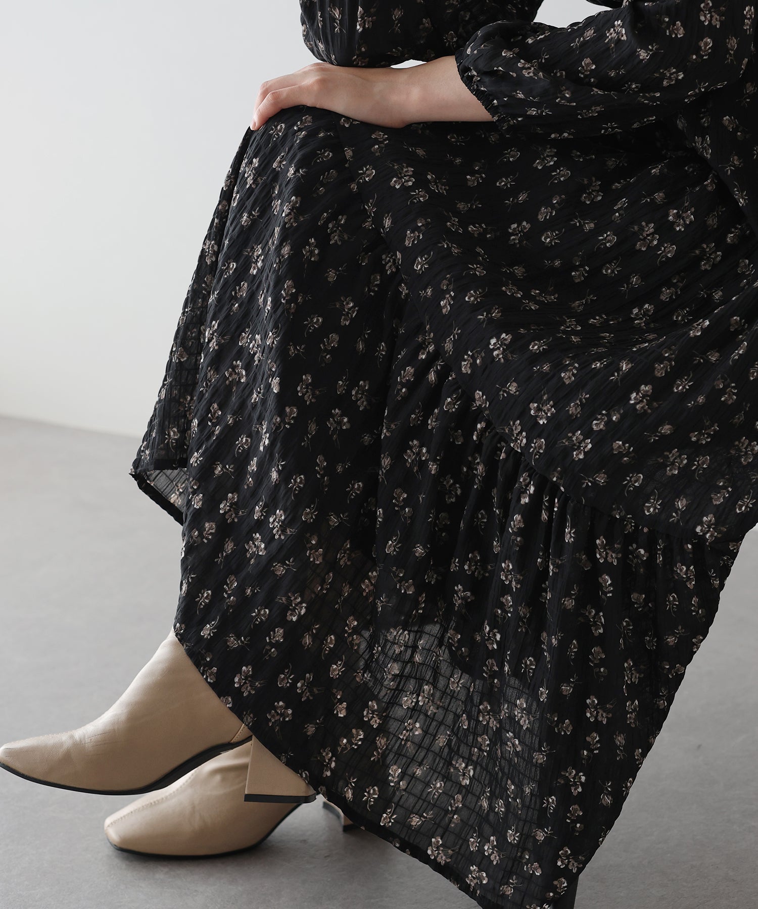バルーンスリーブとティアードシルエットで女性らしい柔らかい印象のワンピース。