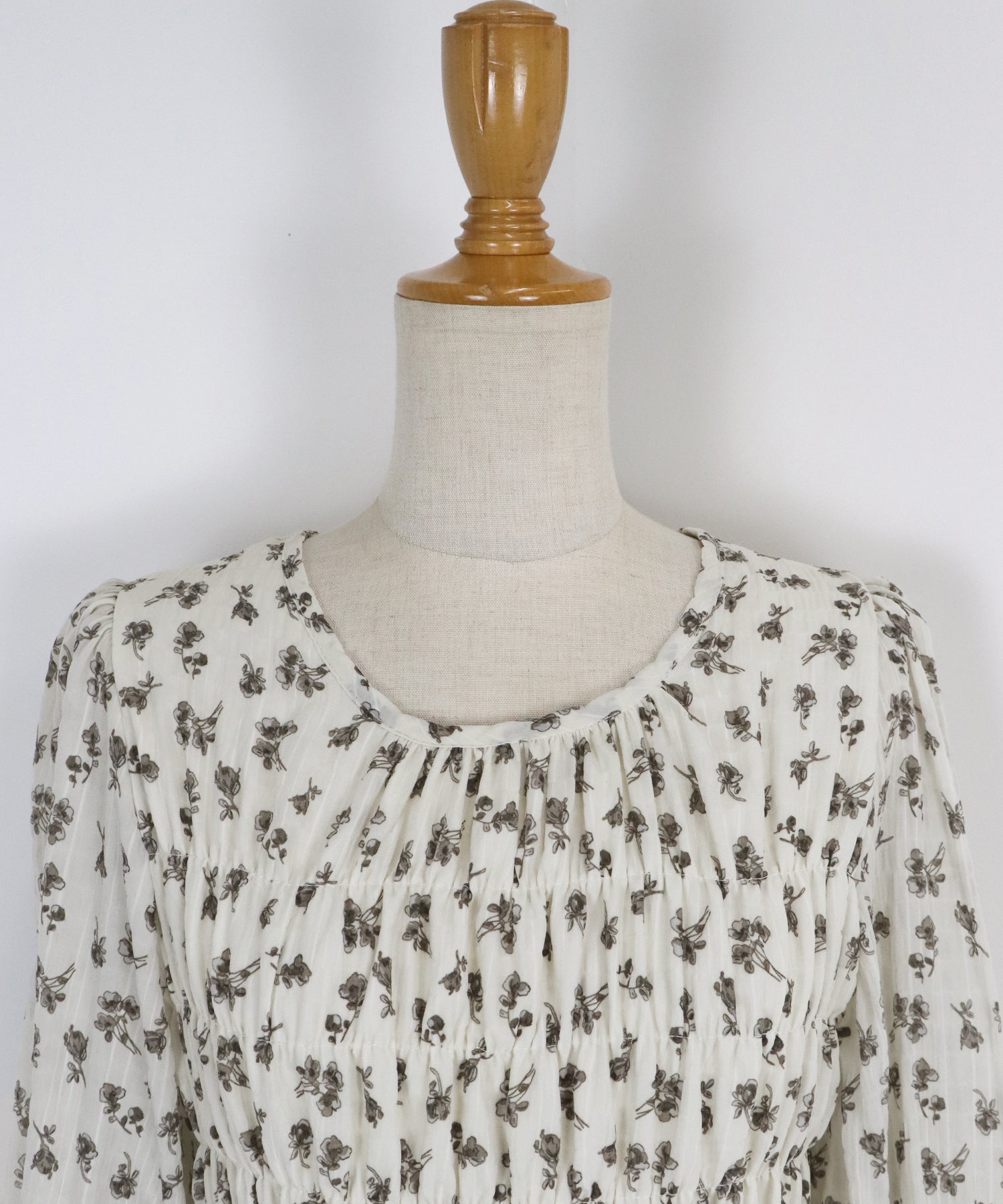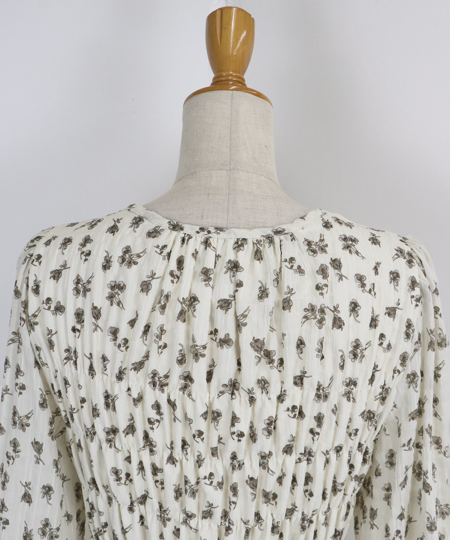 ふんわりとしたシルエットに身頃のシャーリングがメリハリをあたえ、着やせ効果も◎