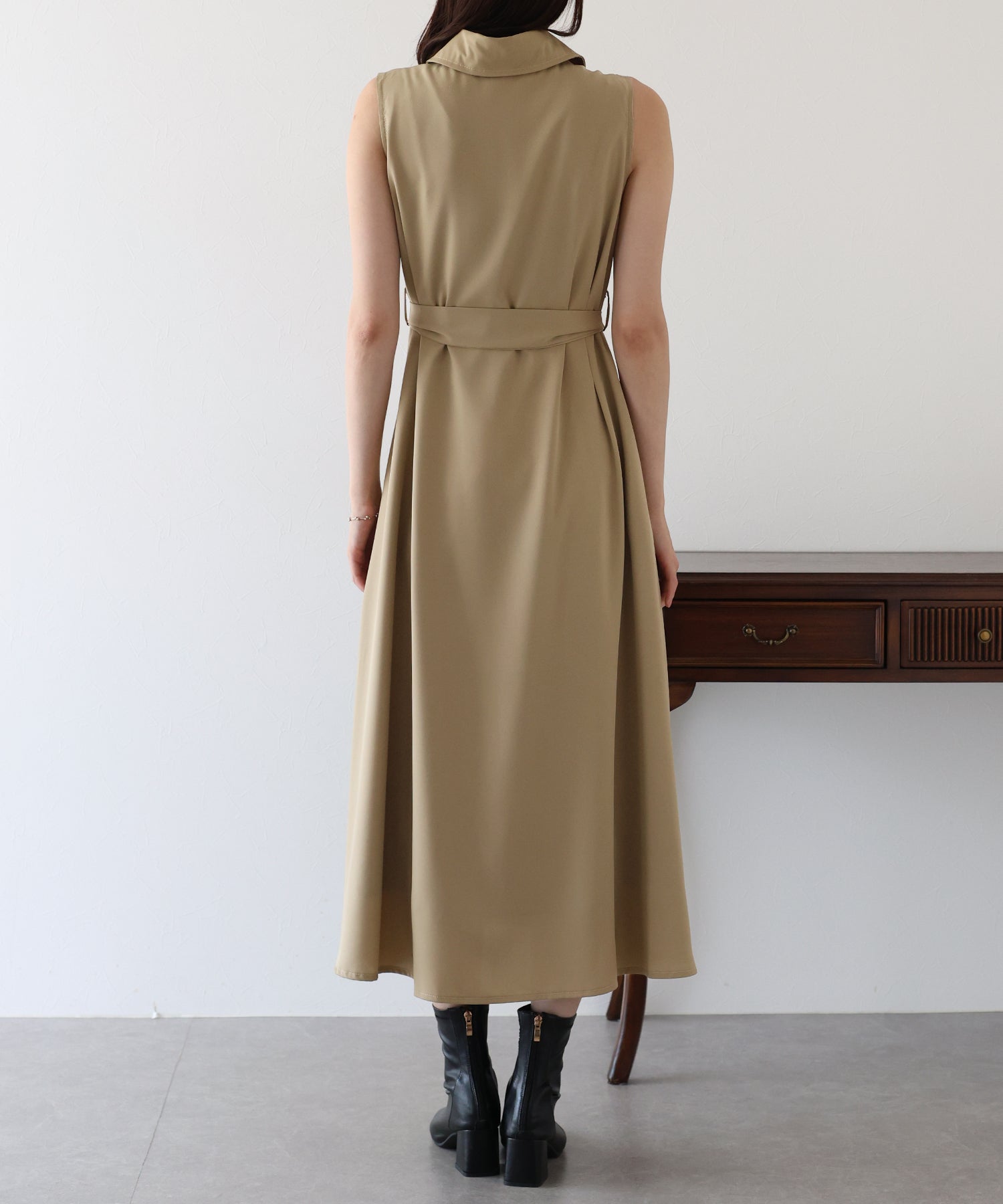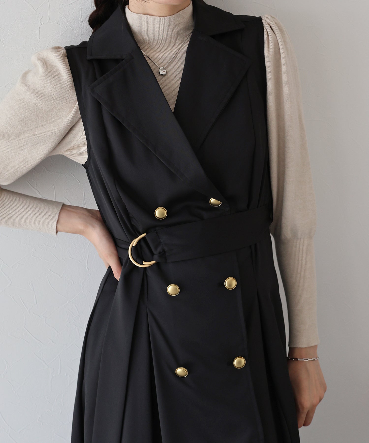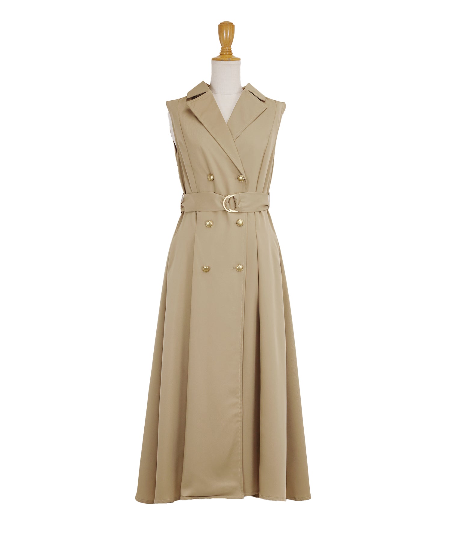ダブル仕立てのデザインできちんと感のある大人上品なトレンチジレワンピース。