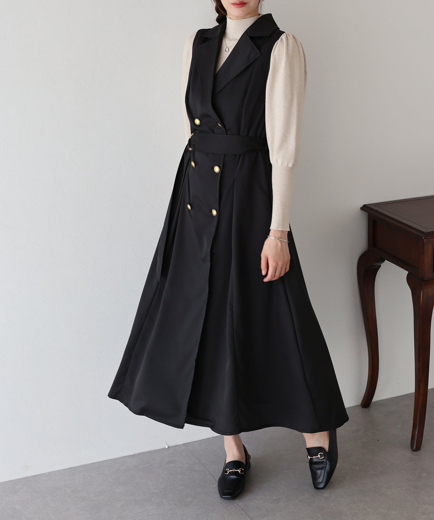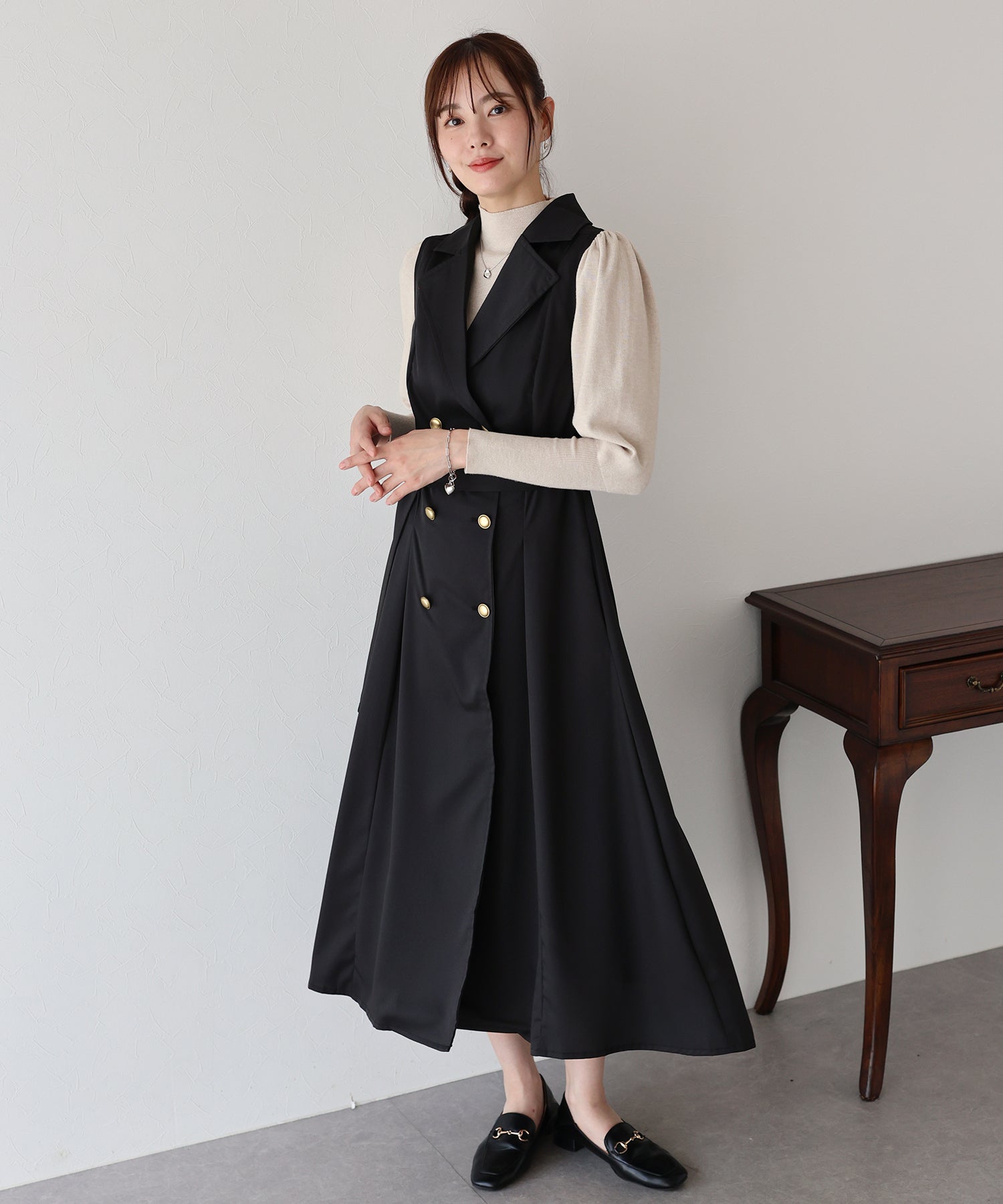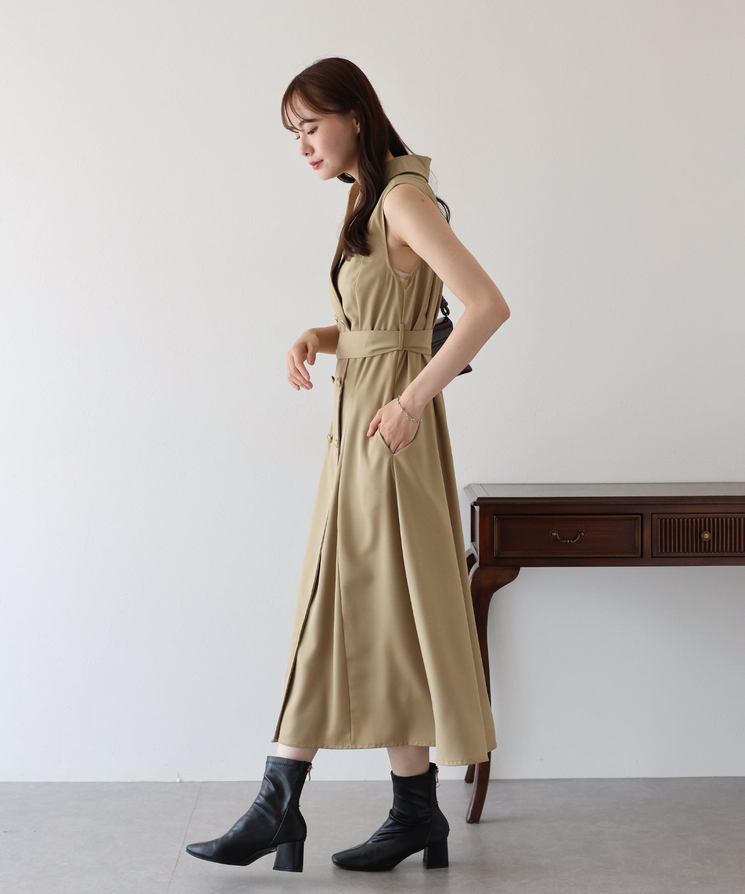 ダブル仕立てのデザインできちんと感のある大人上品なトレンチジレワンピース。