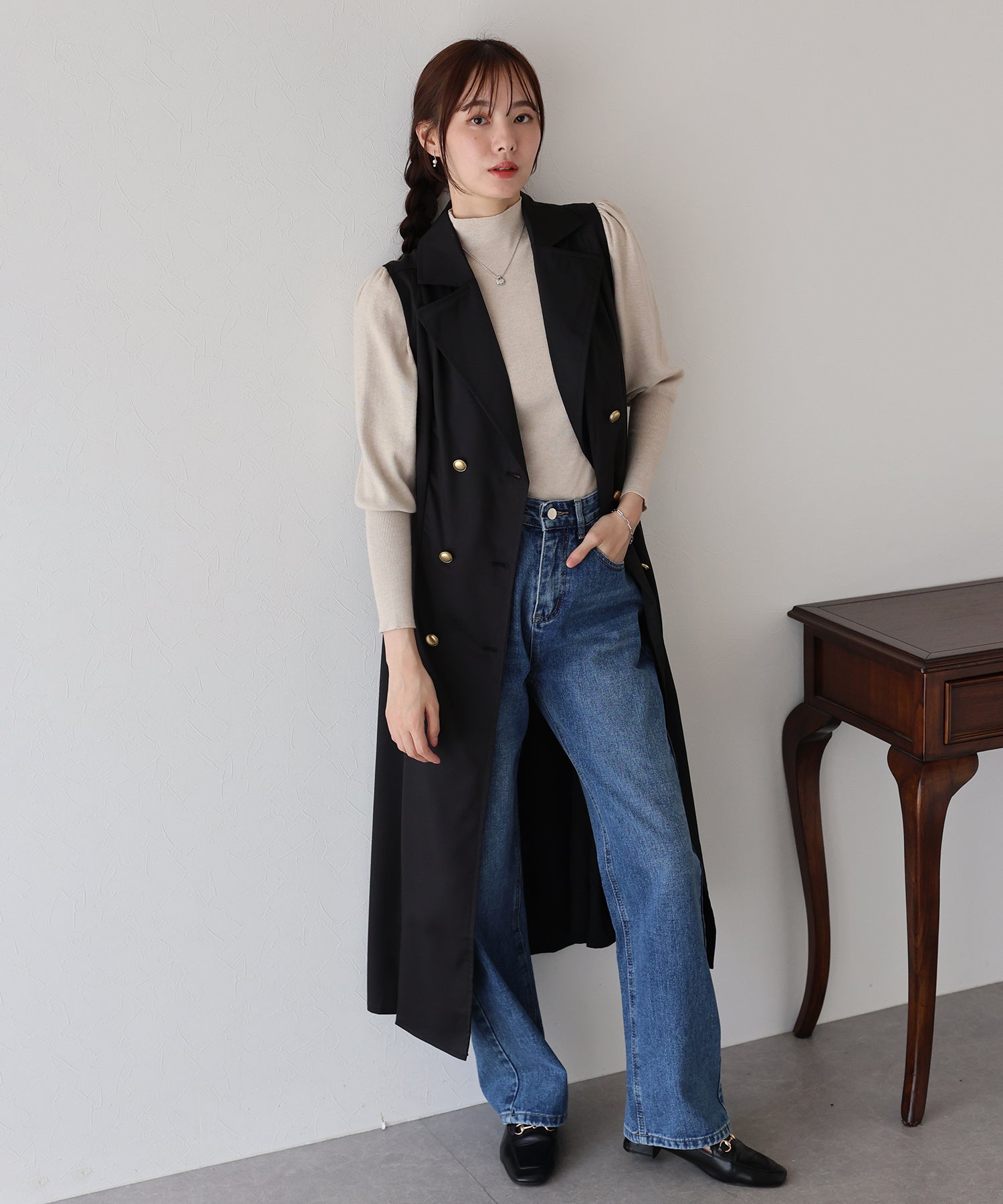 前を開けてロングジレとしても着用可能な2way仕様です。