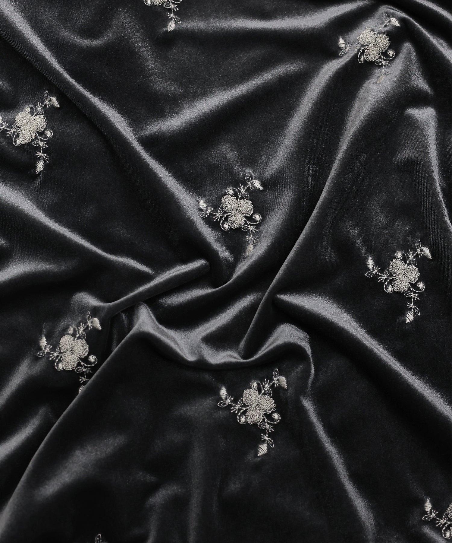 柔らかくやや伸縮性のある花柄刺繍ベロア素材