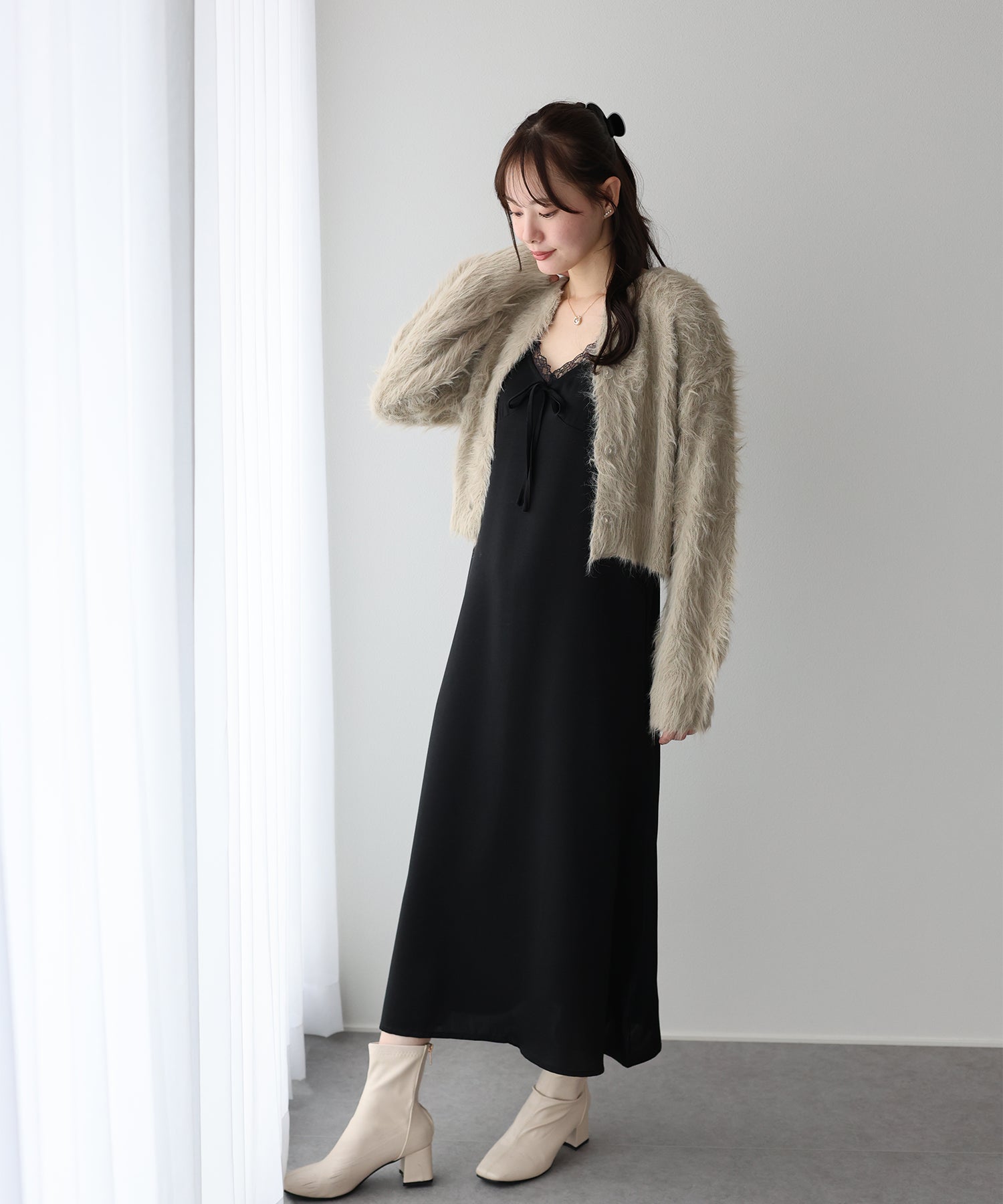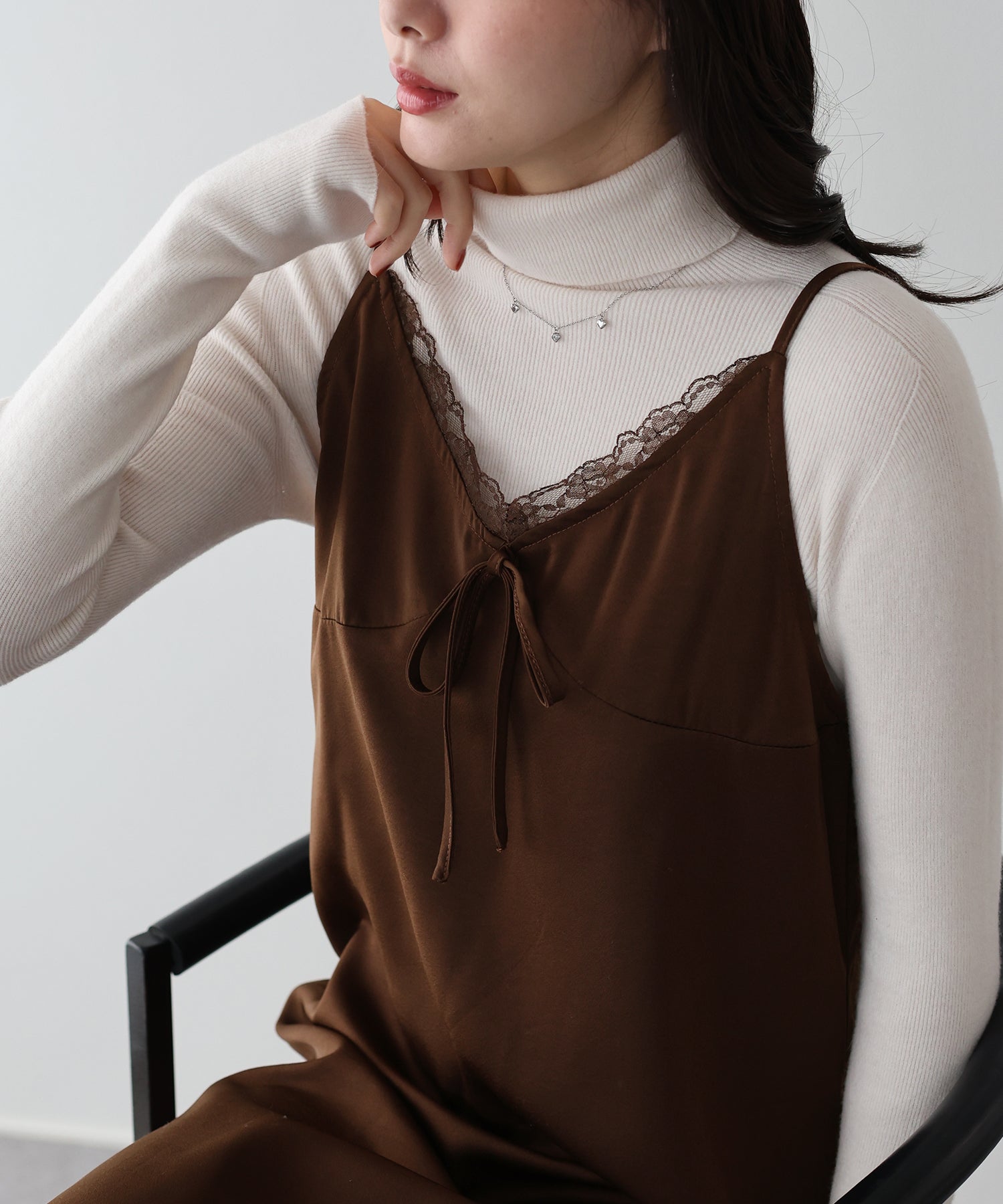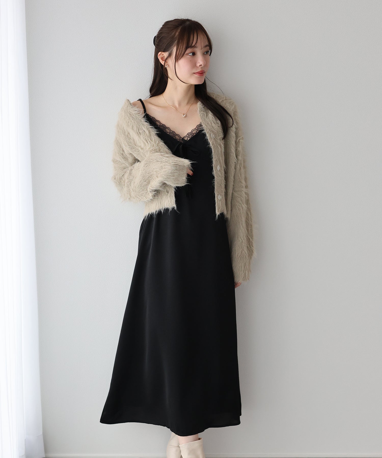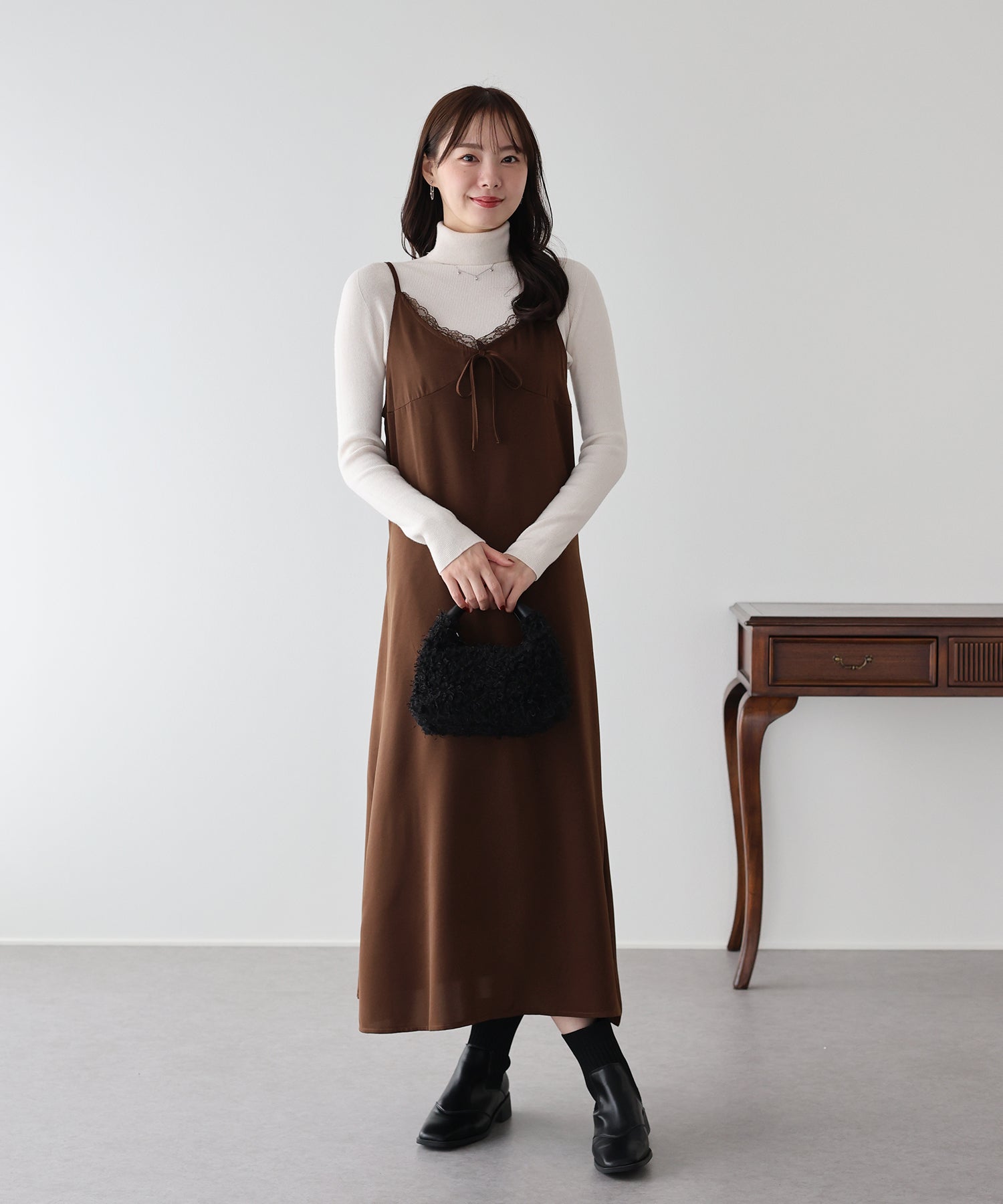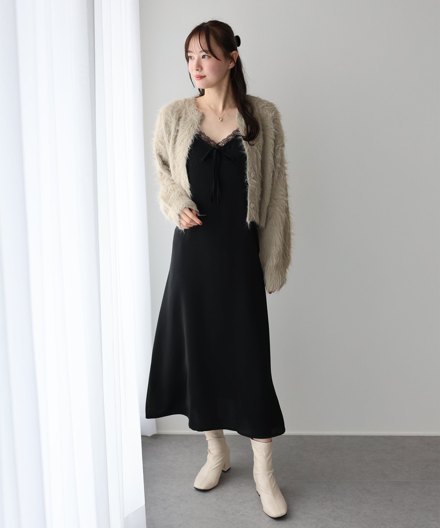 レース×リボンが華やかに映える上品サテンキャミワンピース