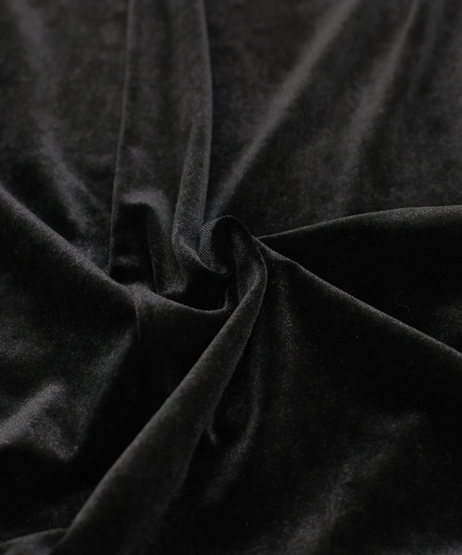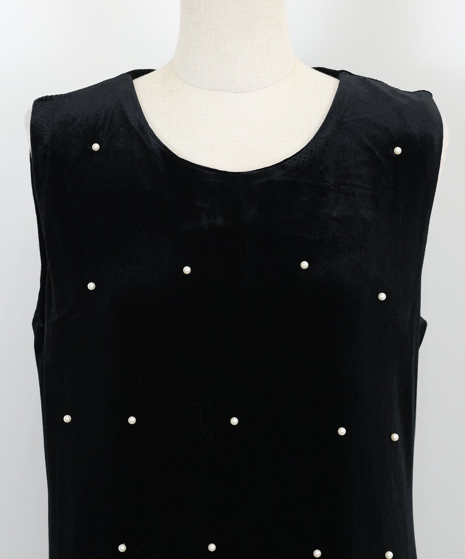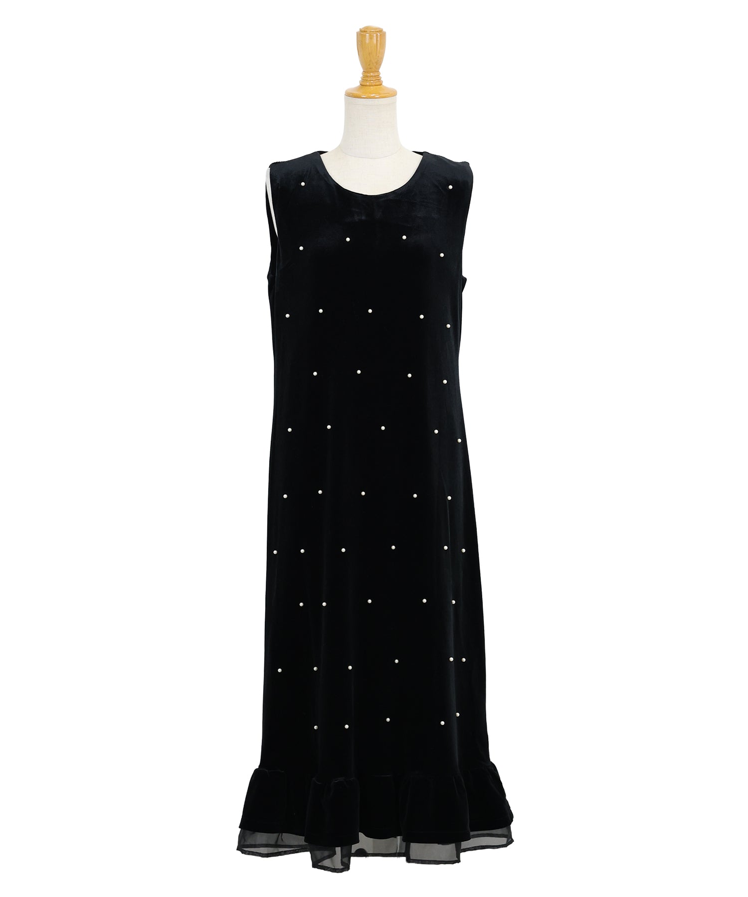 高級感のあるトレンドのベロア生地にパールをランダムにあしらったワンピース。