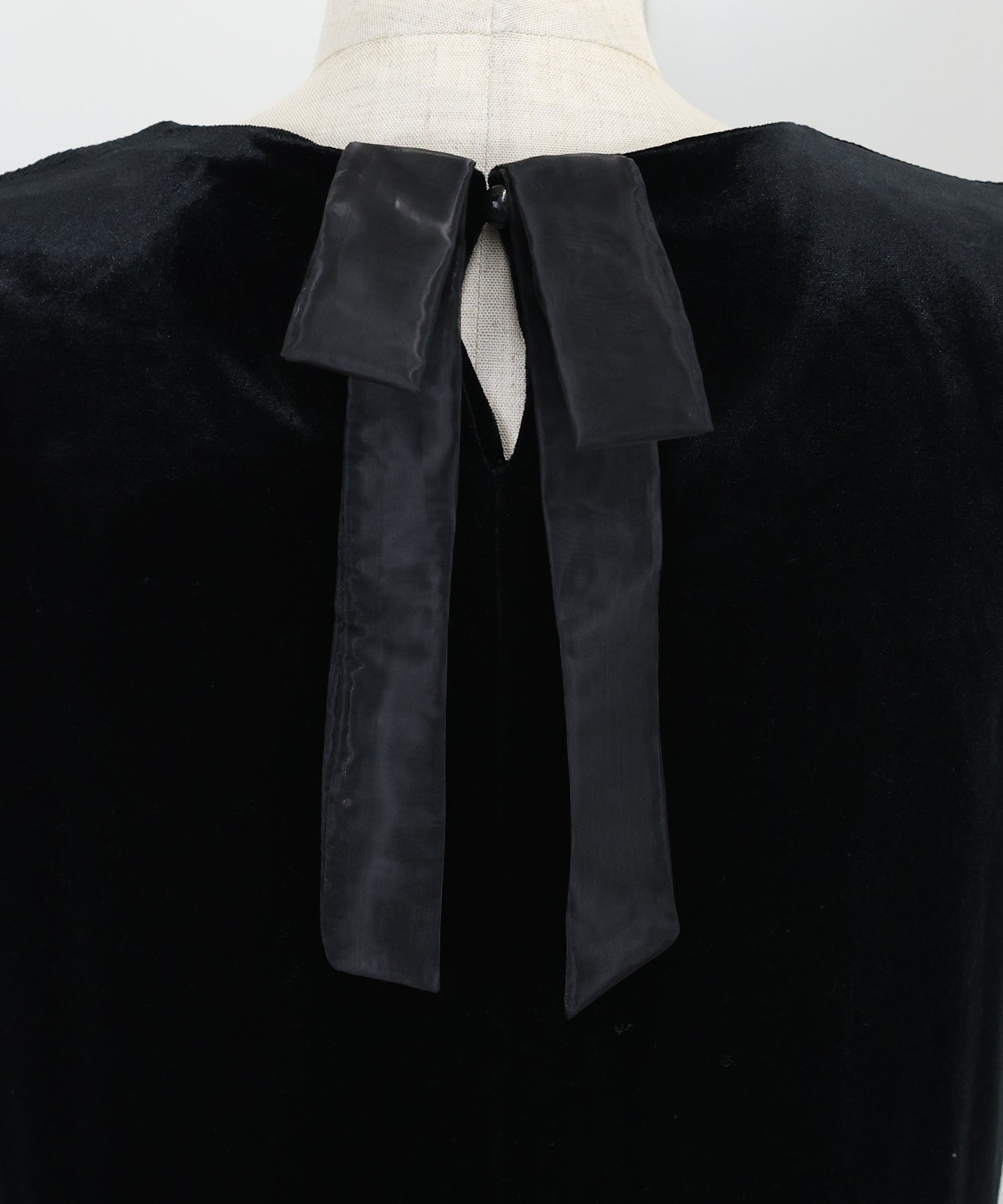 バルーンスリーブ オーガンジー袖&ジャガード&ベロアワンピース