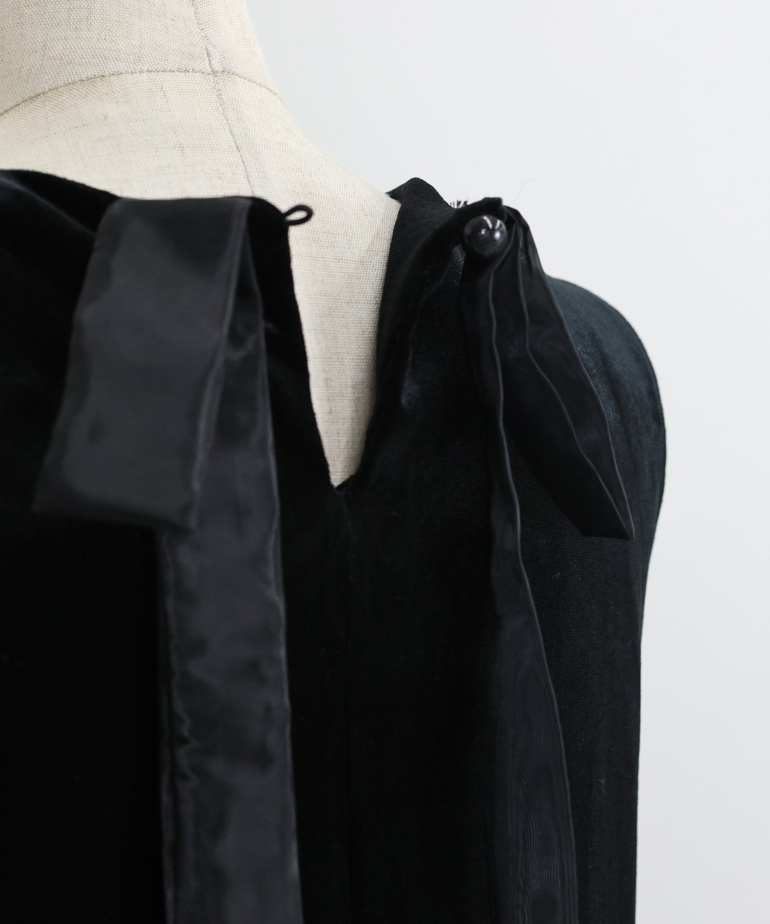 バックリボンと裾にあしらったオーガンジーで甘めな印象をプラスし、大人かわいいデザインに仕上げました。