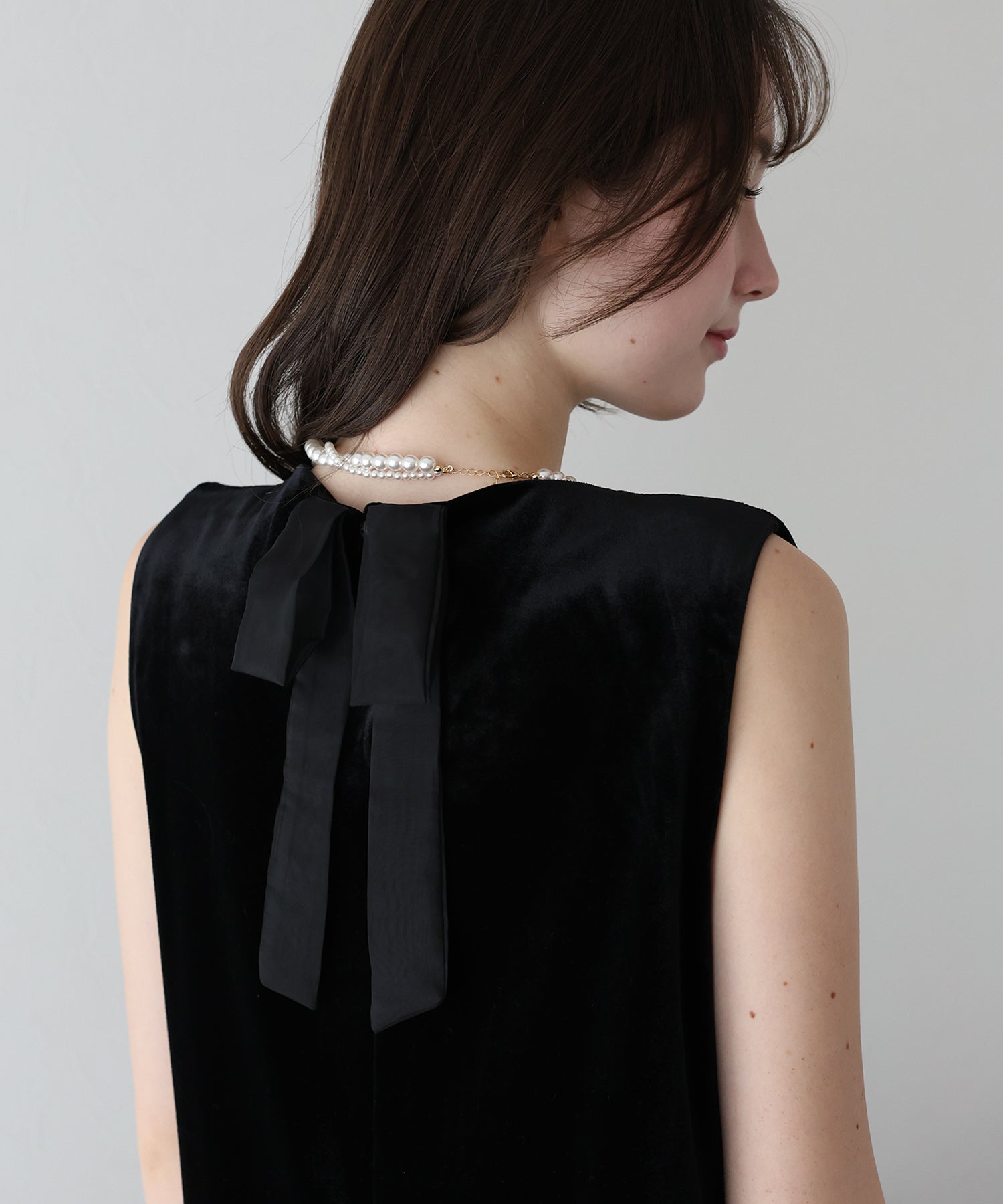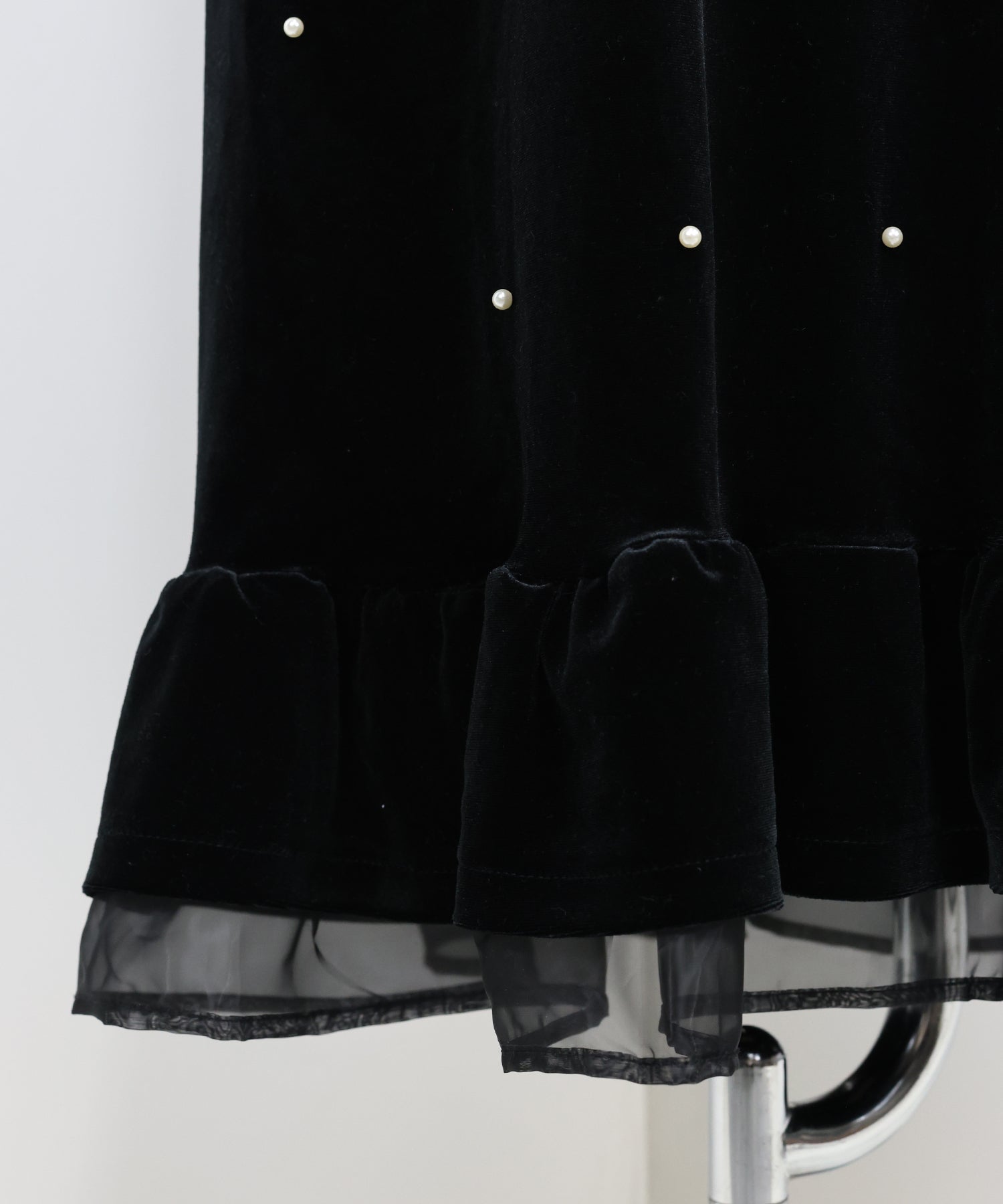 パール×ベロアが目を惹くレディなティアードワンピース。