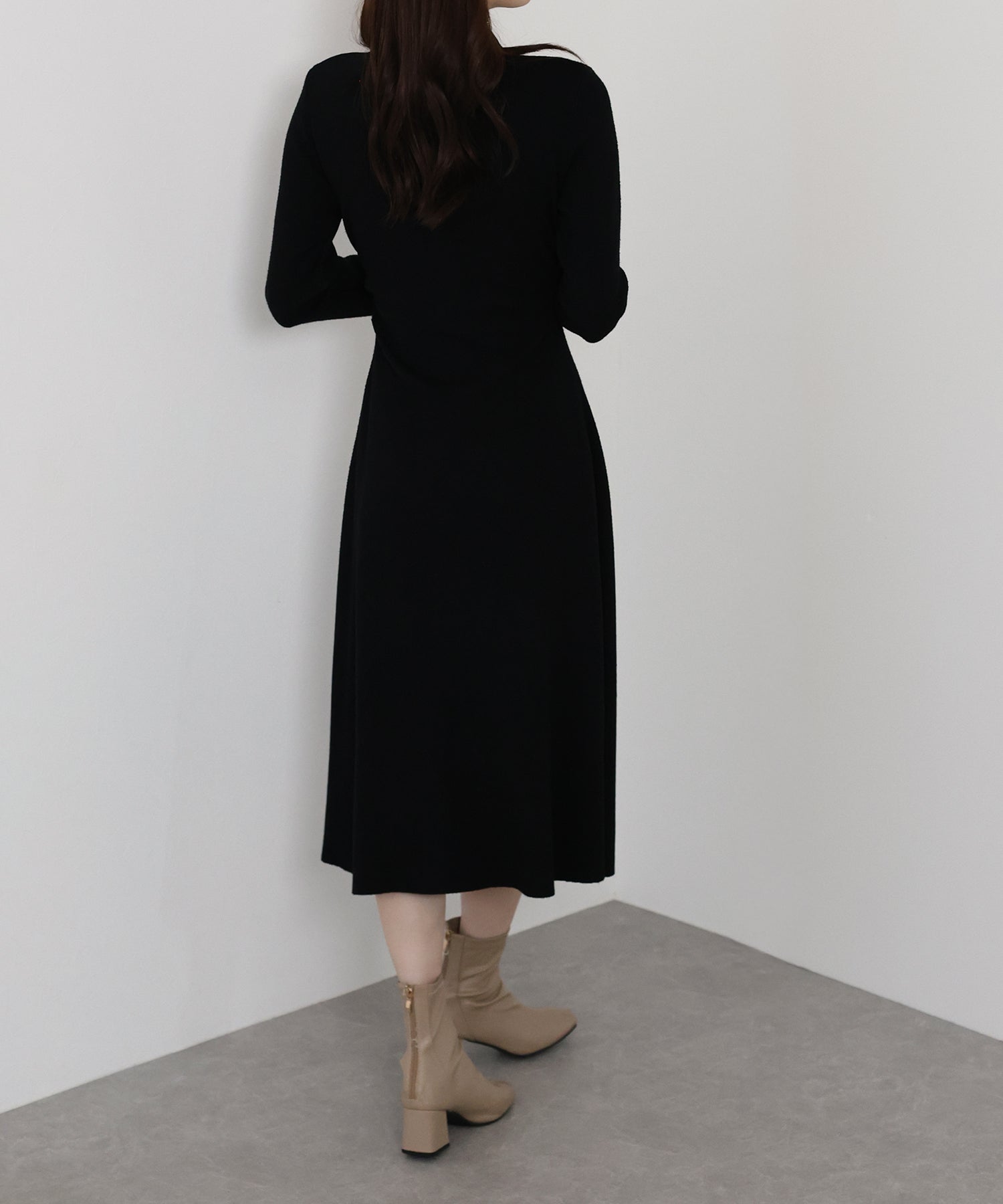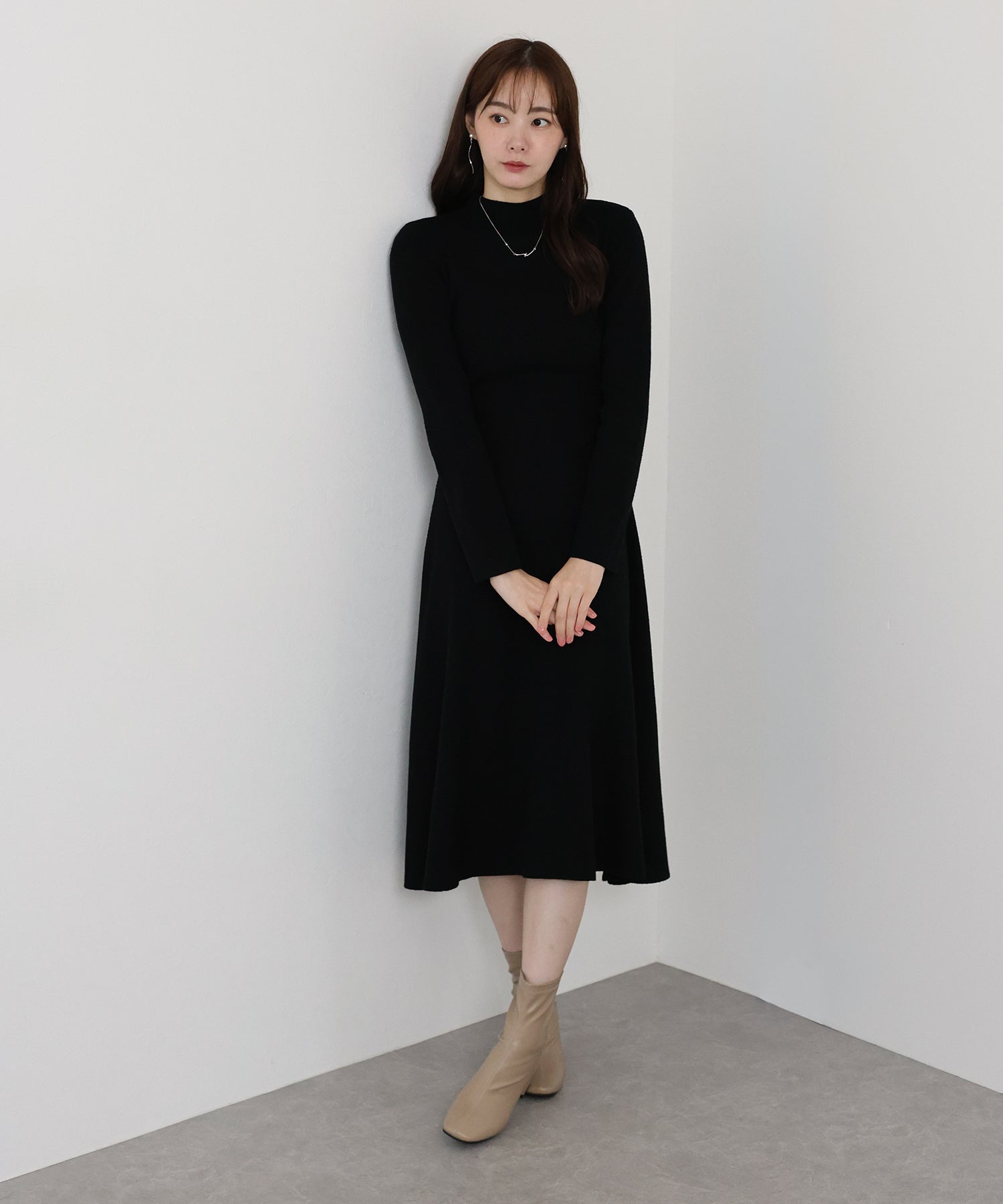 ほどよくフィット感のあるニットと美しいフレアシルエットでスタイルアップ効果抜群。