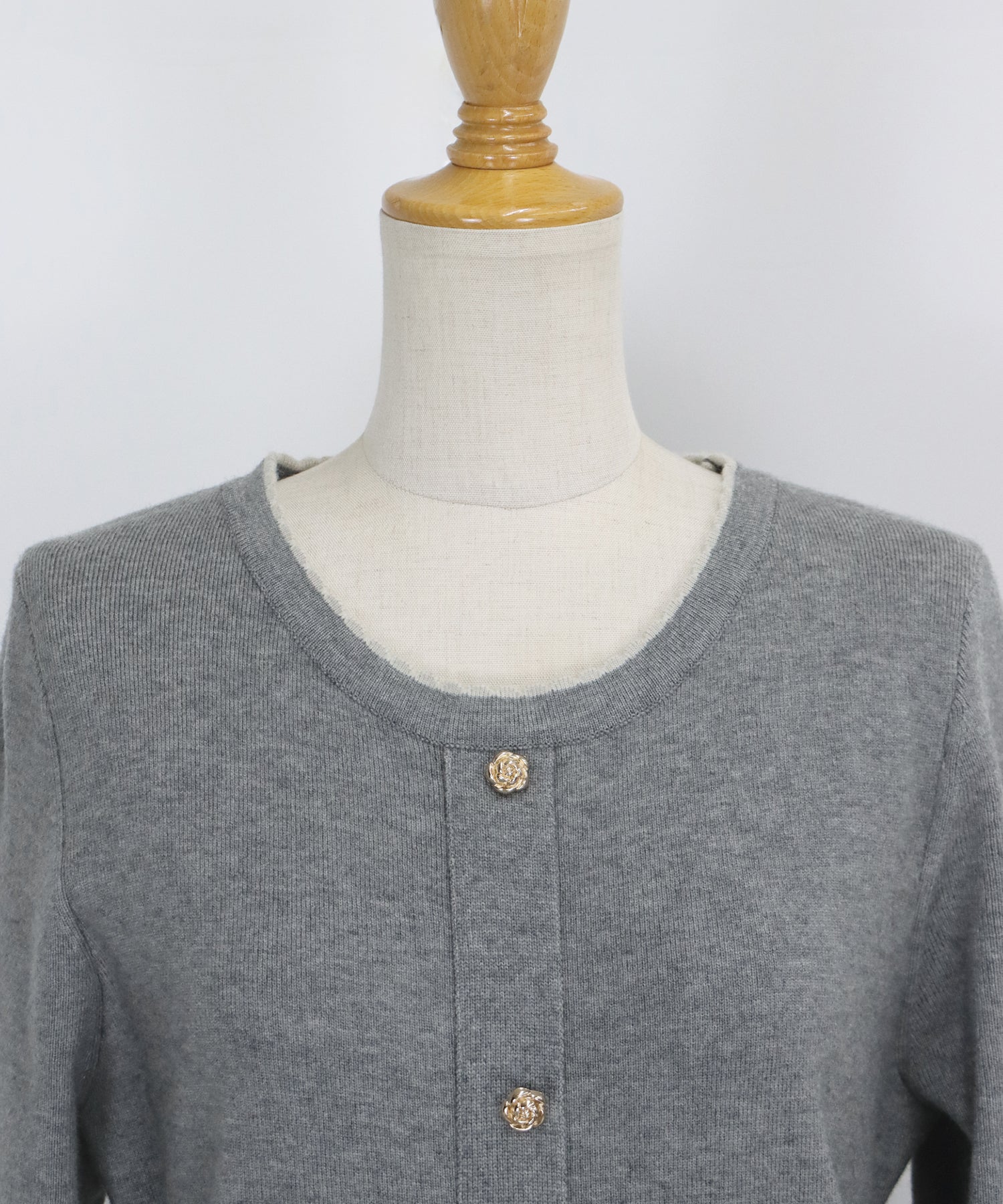 金ボタンノーカラーニットジャケット