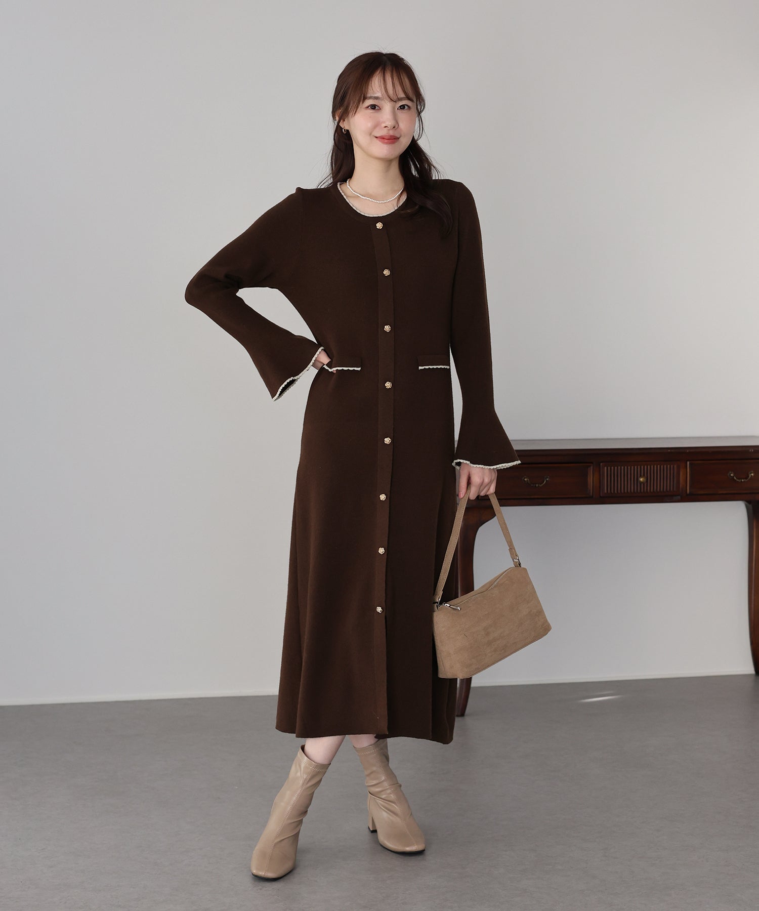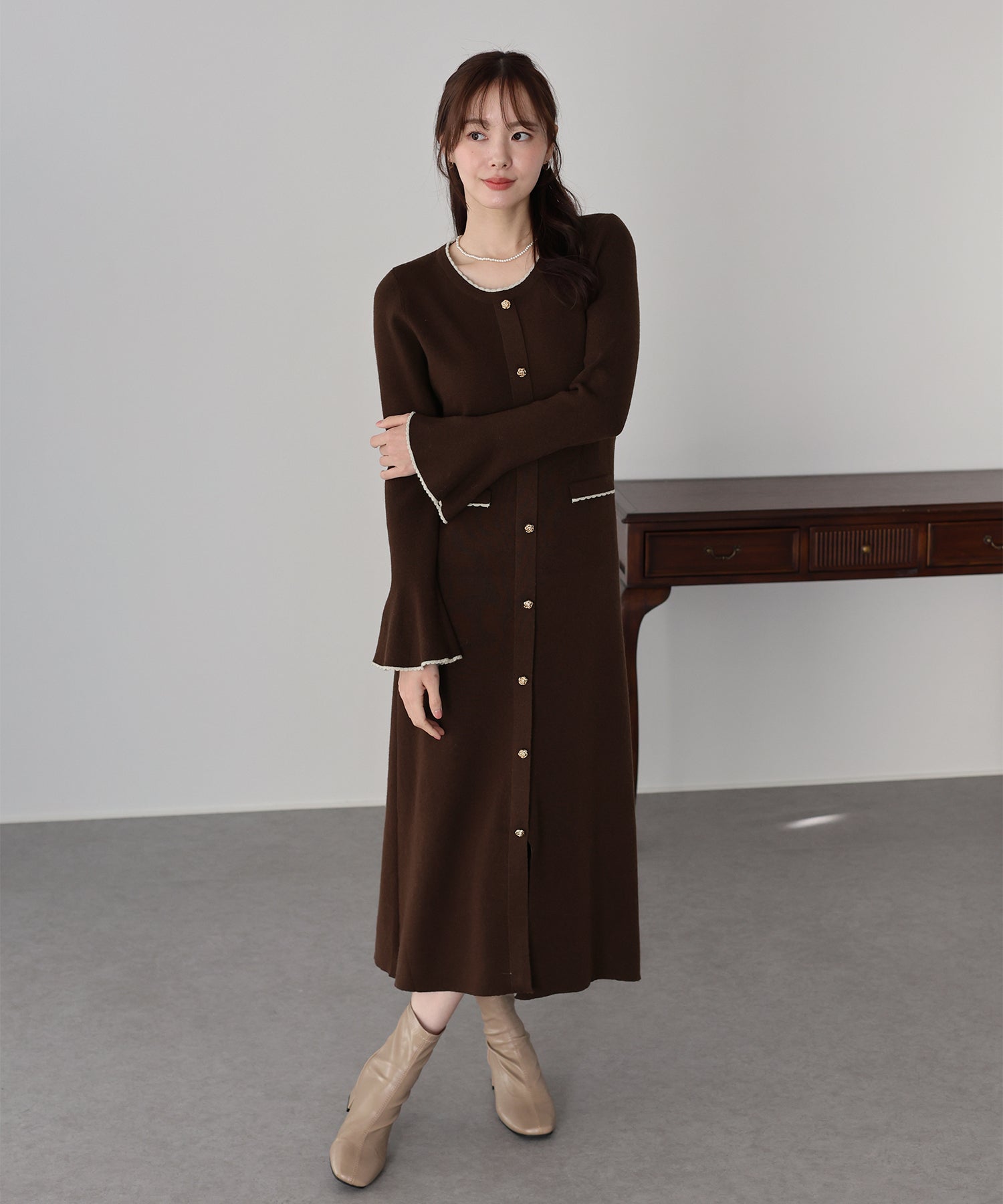 冬はジャケットやコートと組み合わせて上品フェミニンなコーデをお楽しみいただけます。
