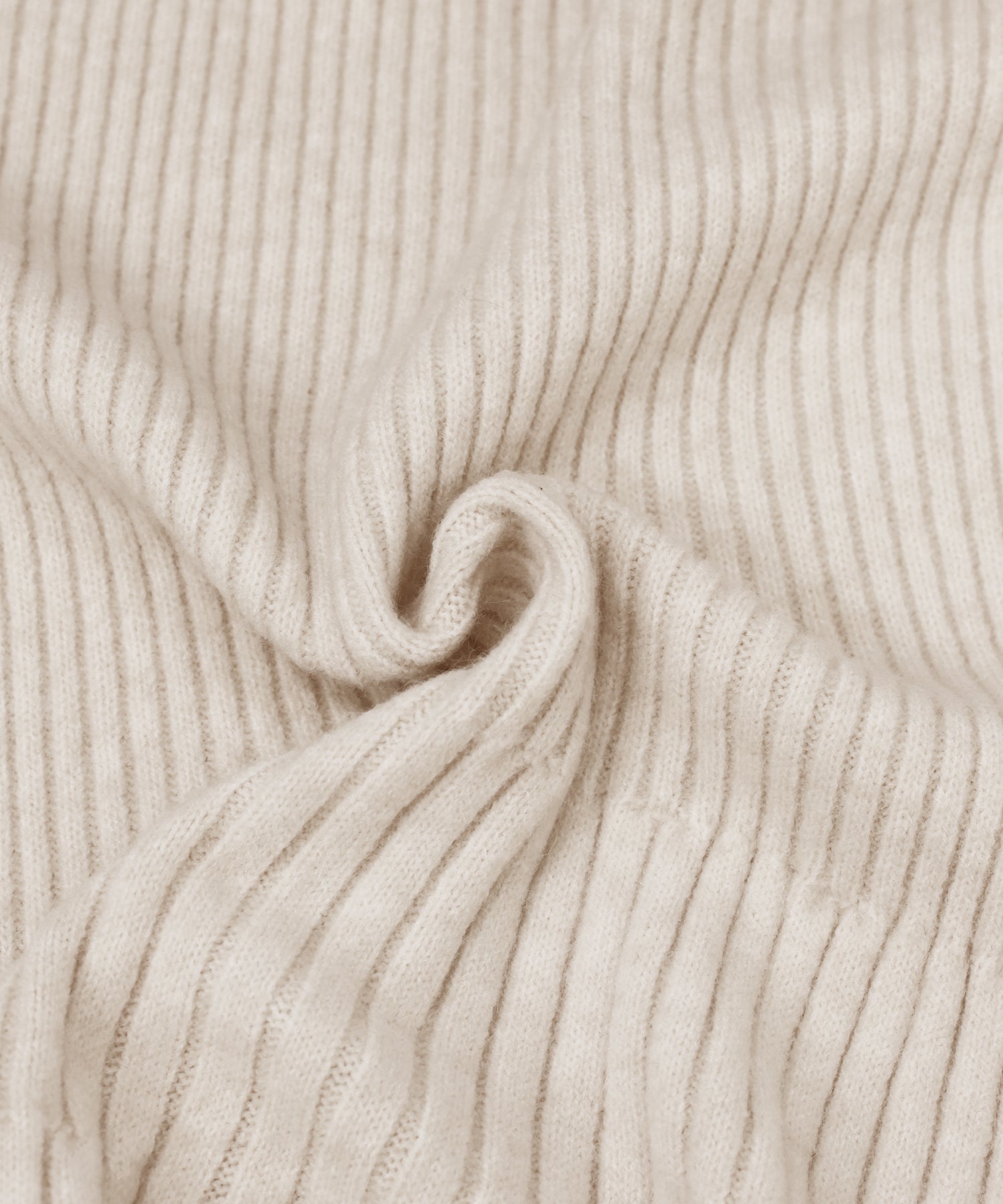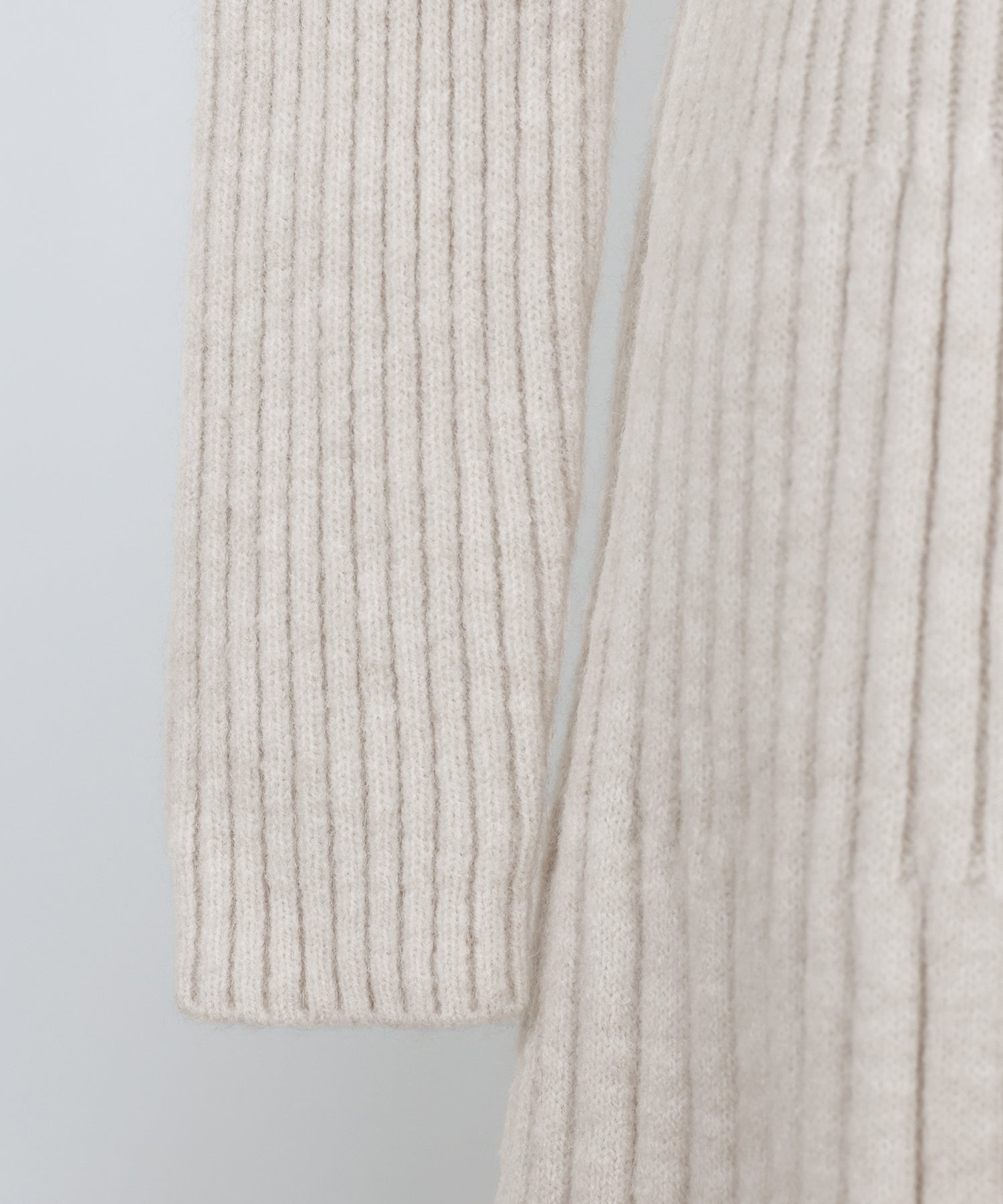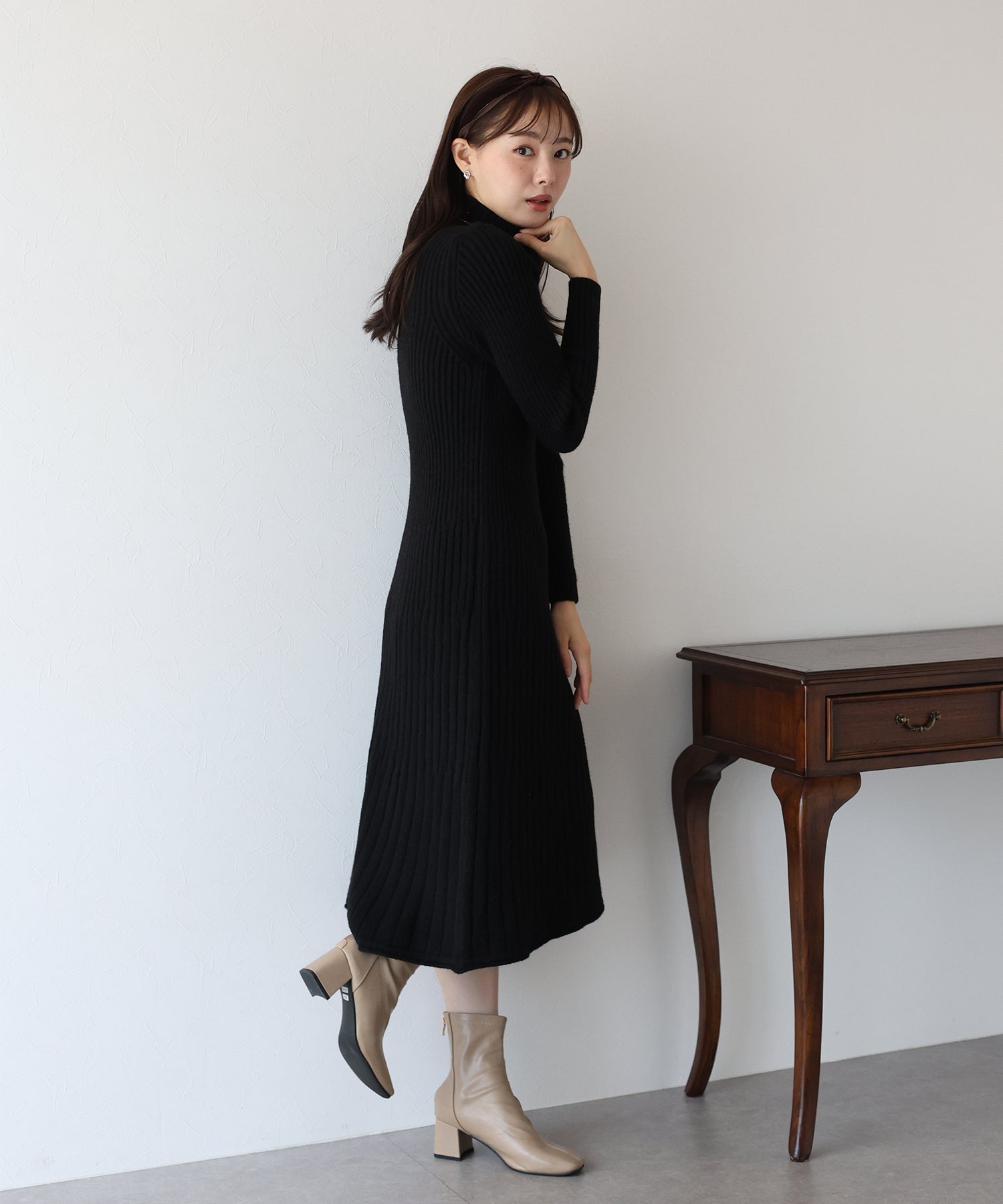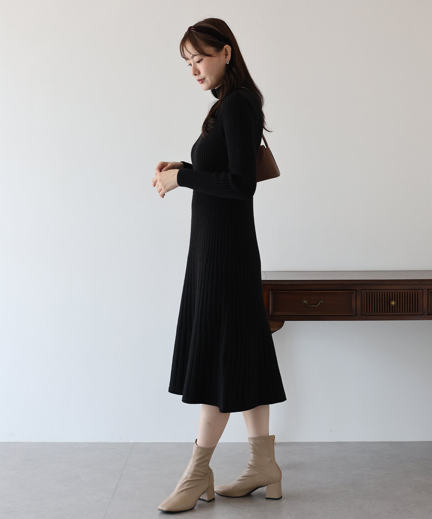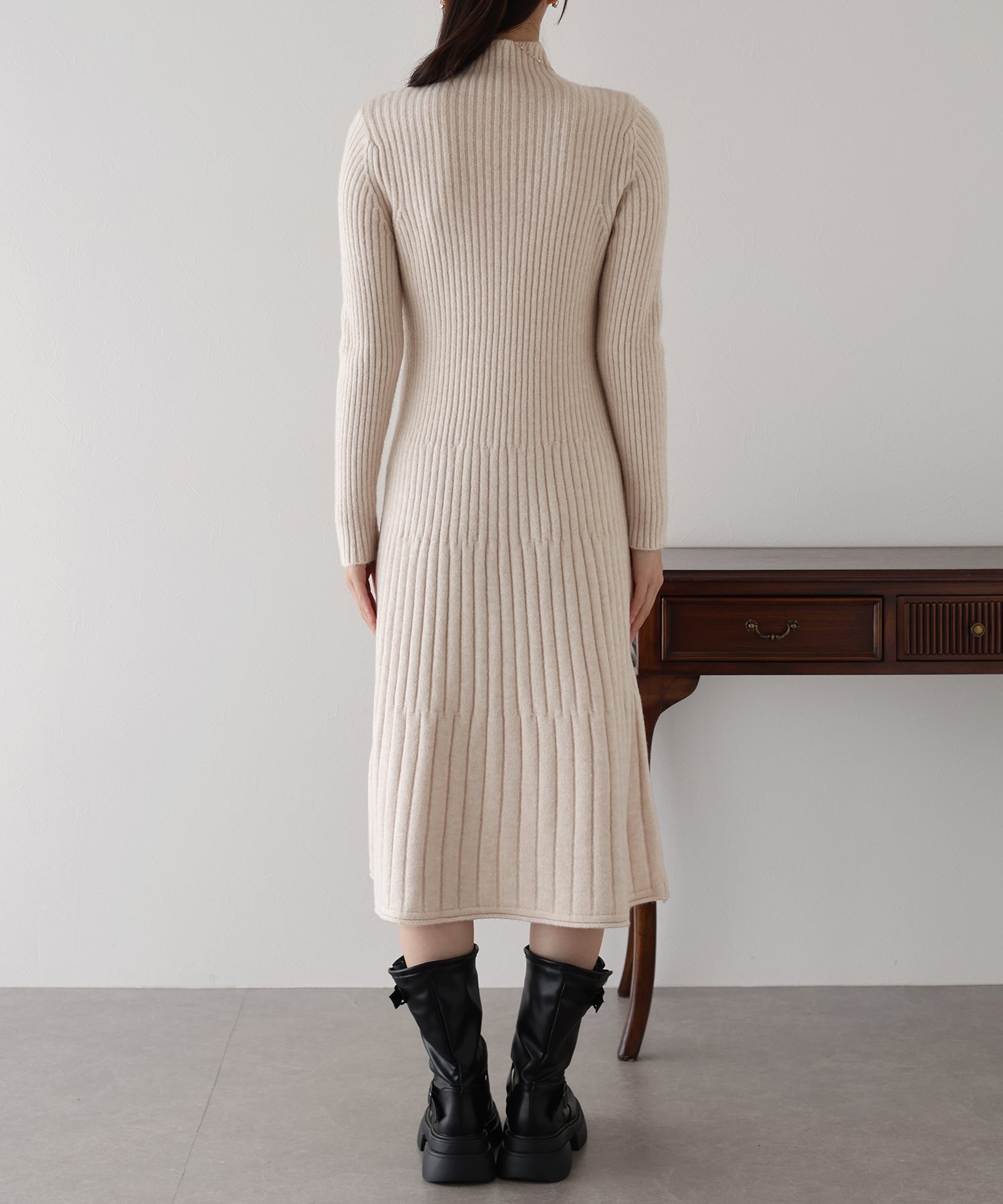 裾に向かって広がるリブ編みのニットで上品さをプラスし、