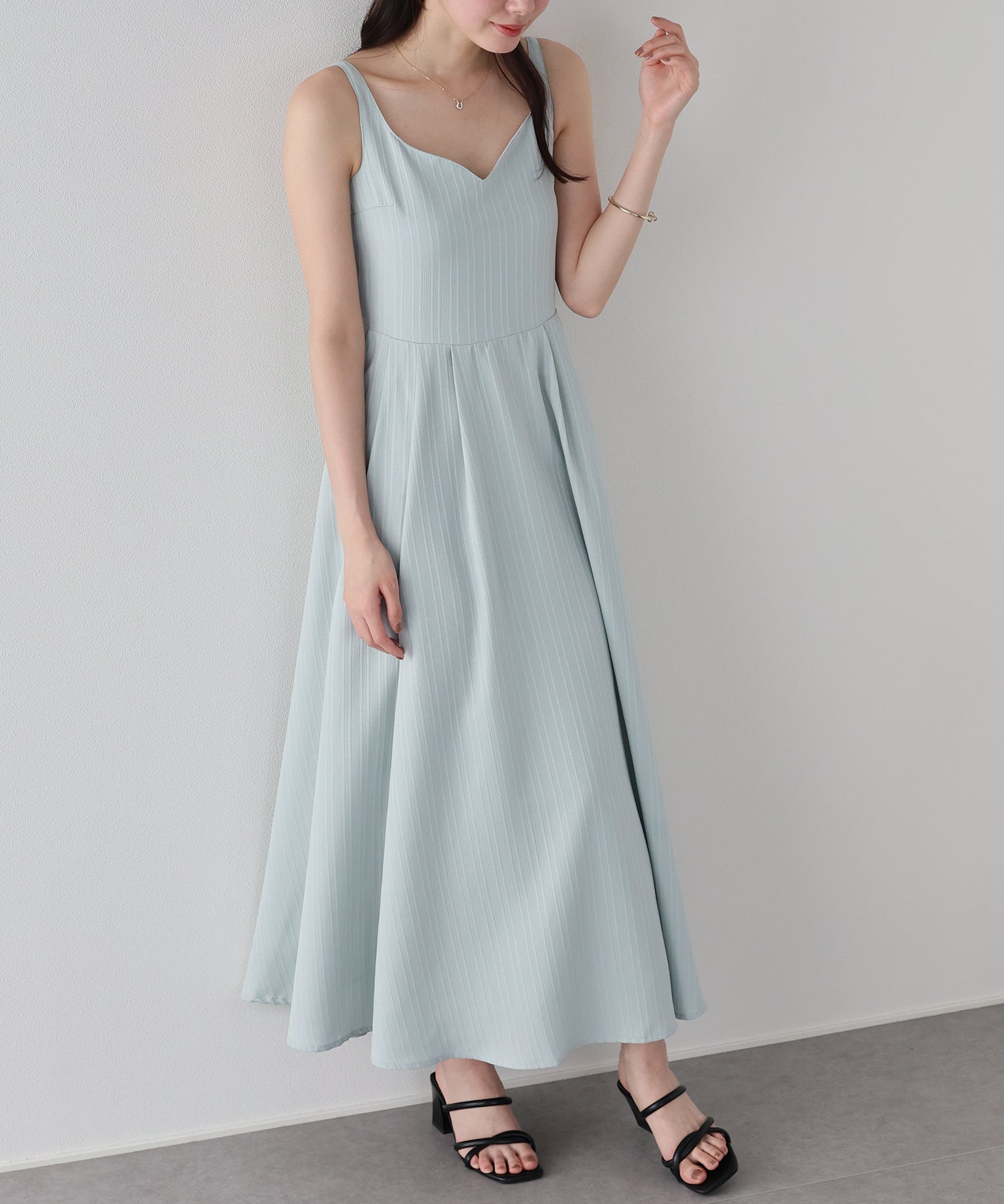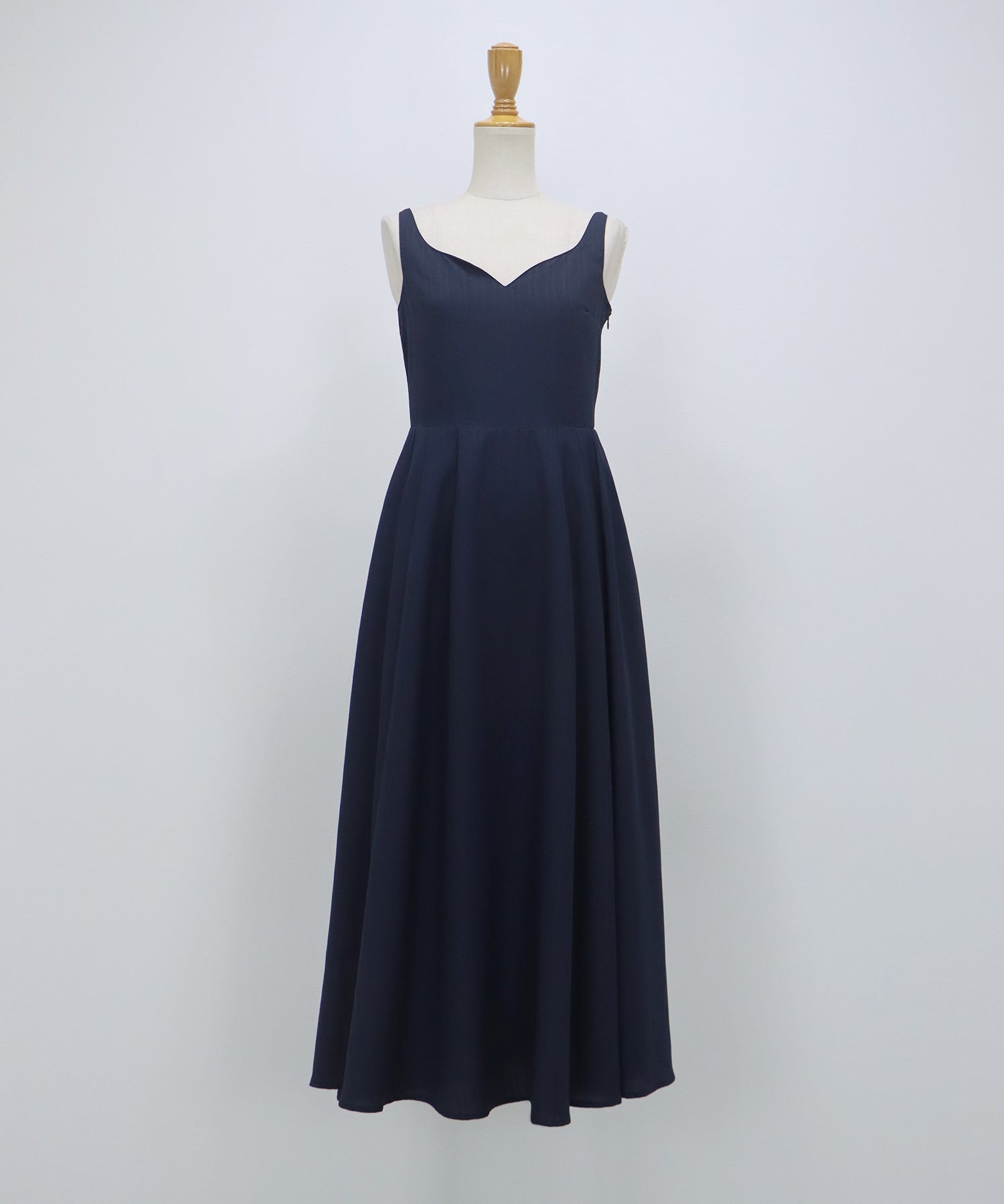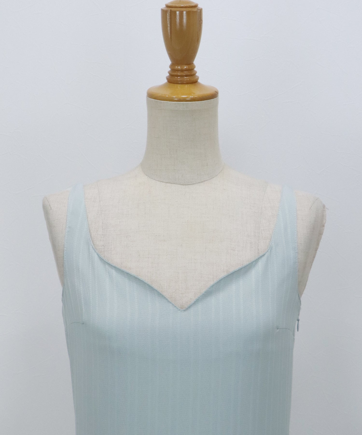 デコルテを美しく、印象的に見せるハートネックラインが主役のキャミワンピース。