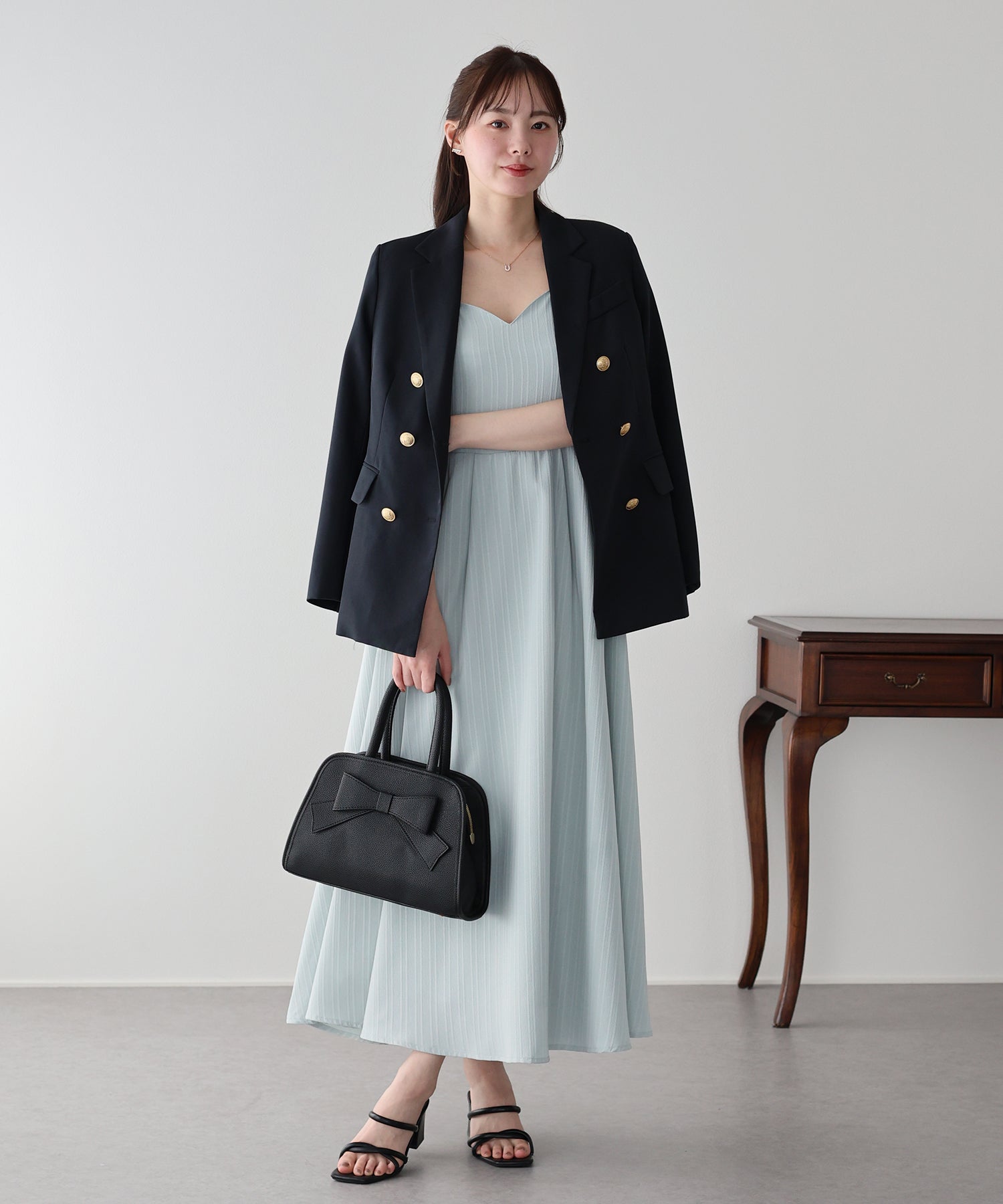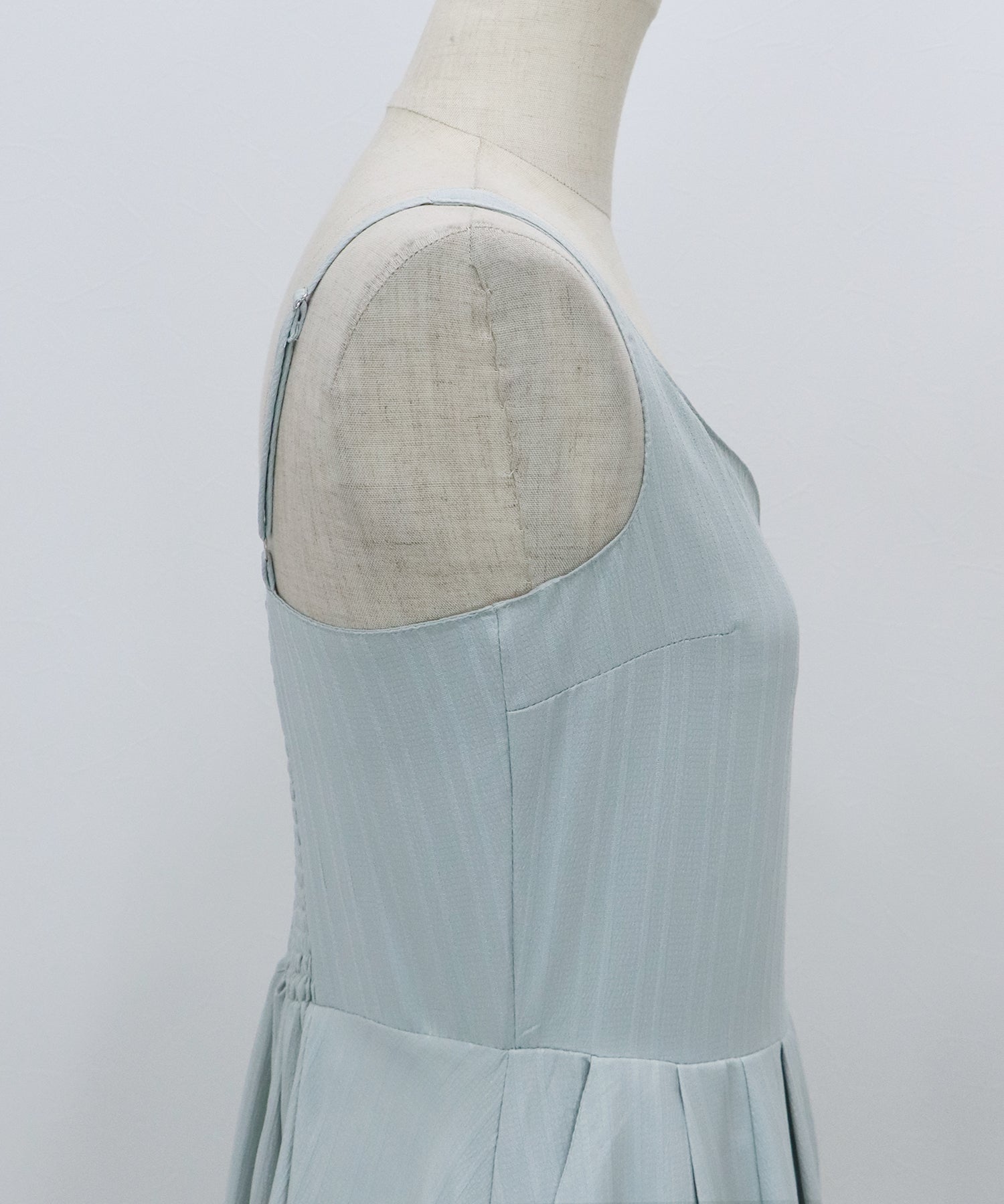胸元のカッティングにこだわり、甘くなりすぎず大人かわいいイメージを演出します。