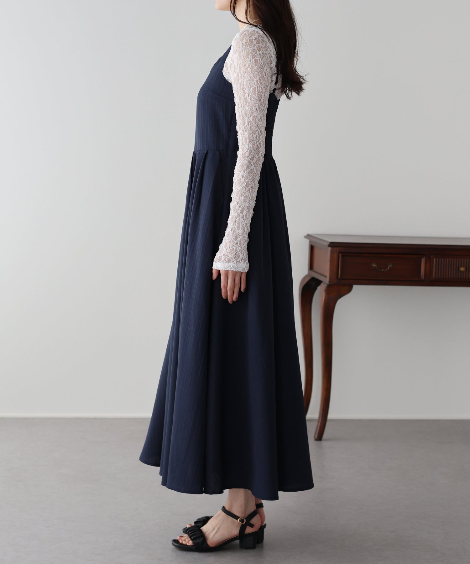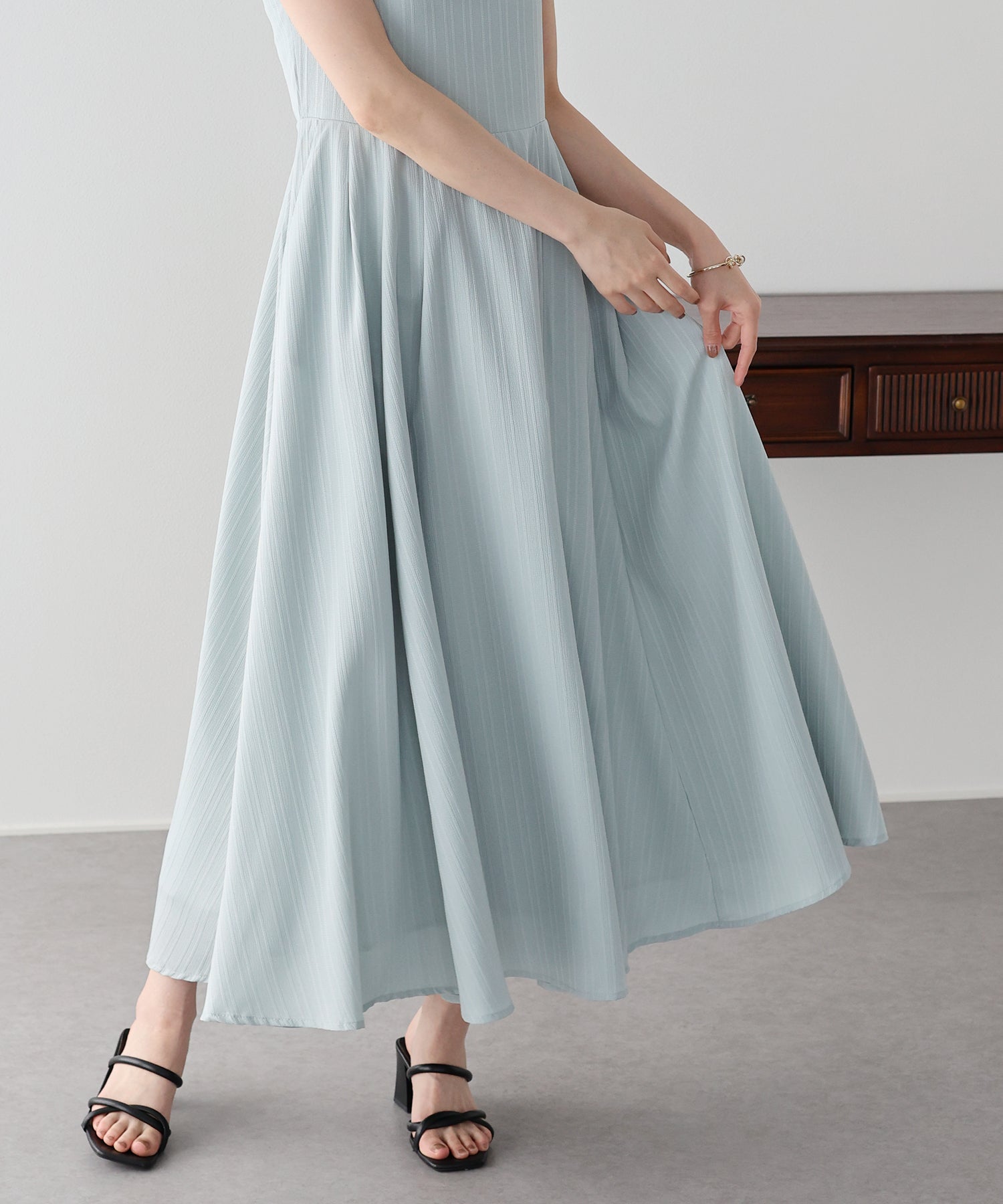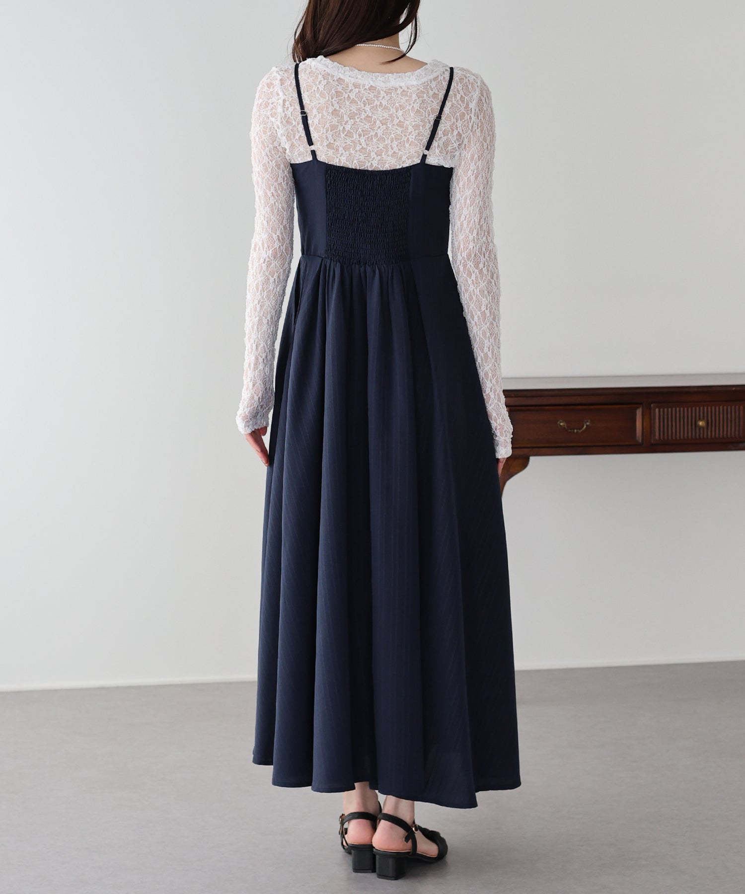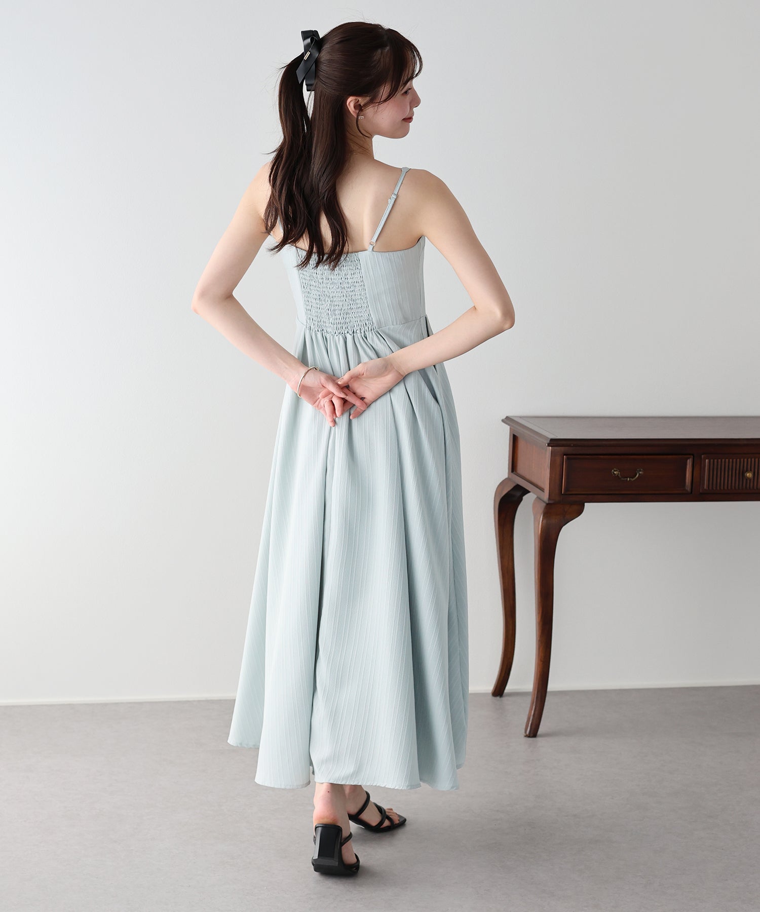 直線的なキャミワンピよりも女性らしく、柔らかなニュアンスをプラスしてくれるため、纏うだけで品のあるレディな佇まいに仕上がります。