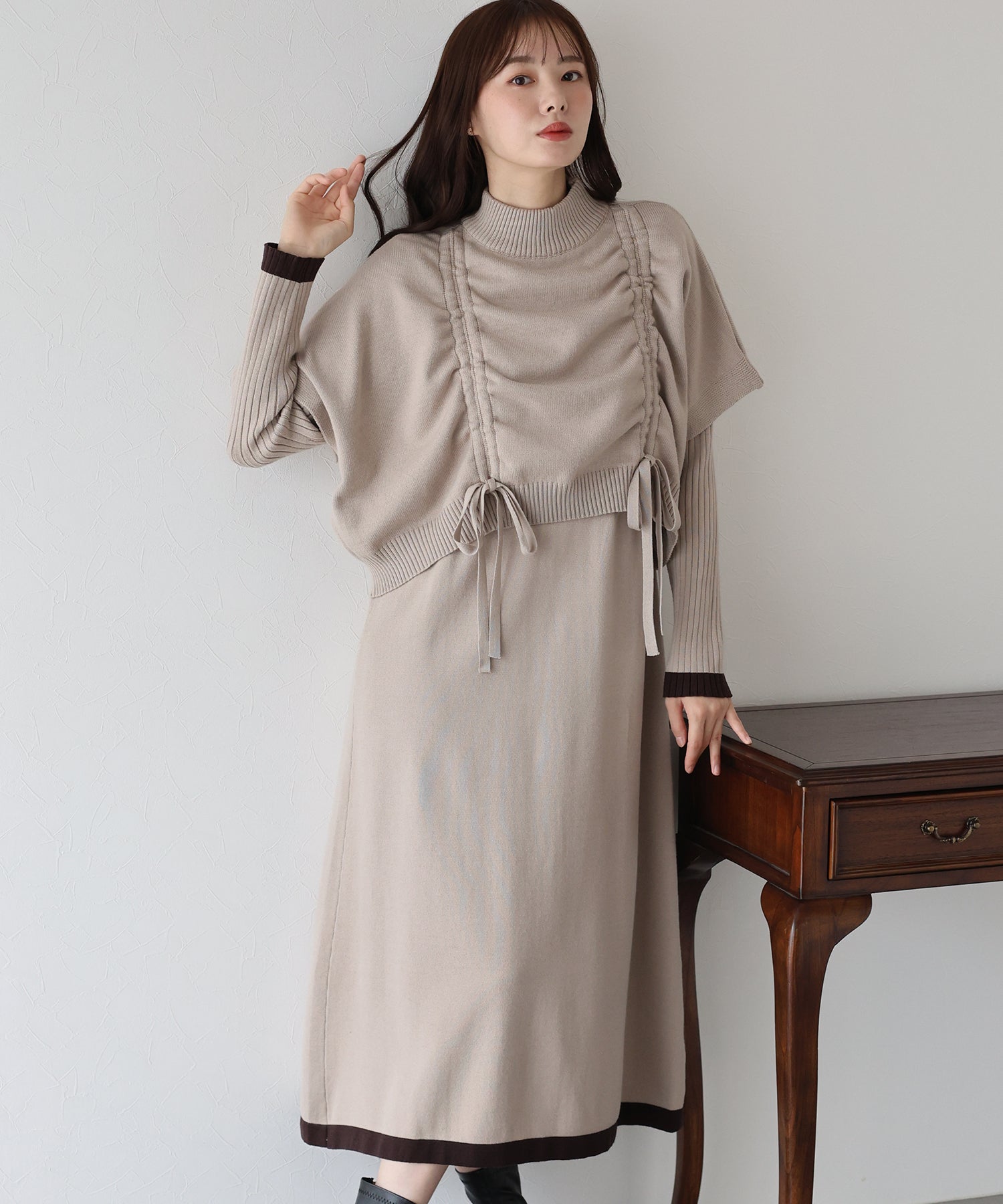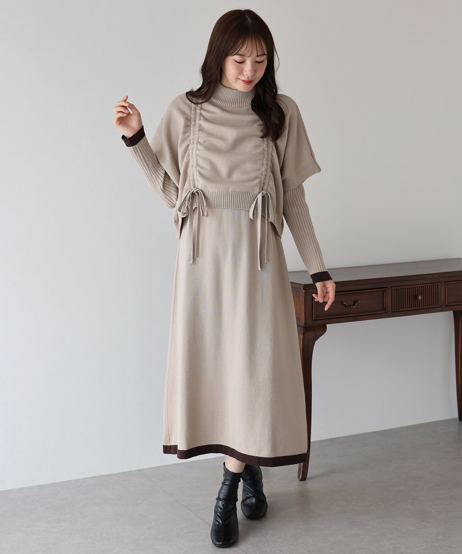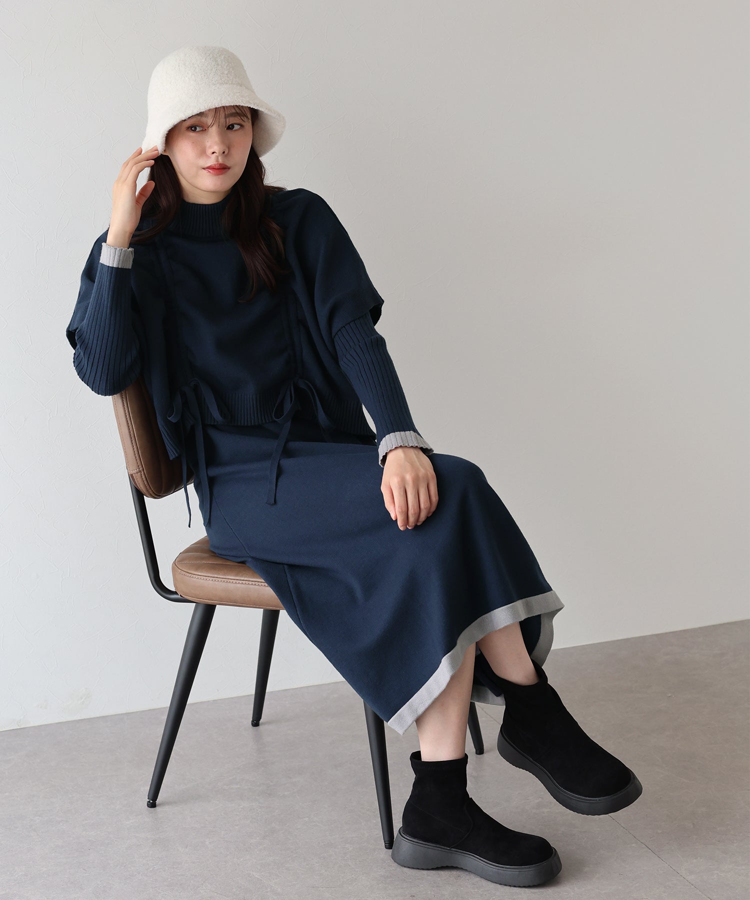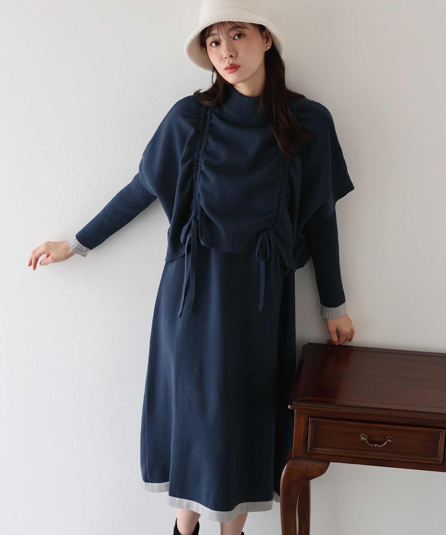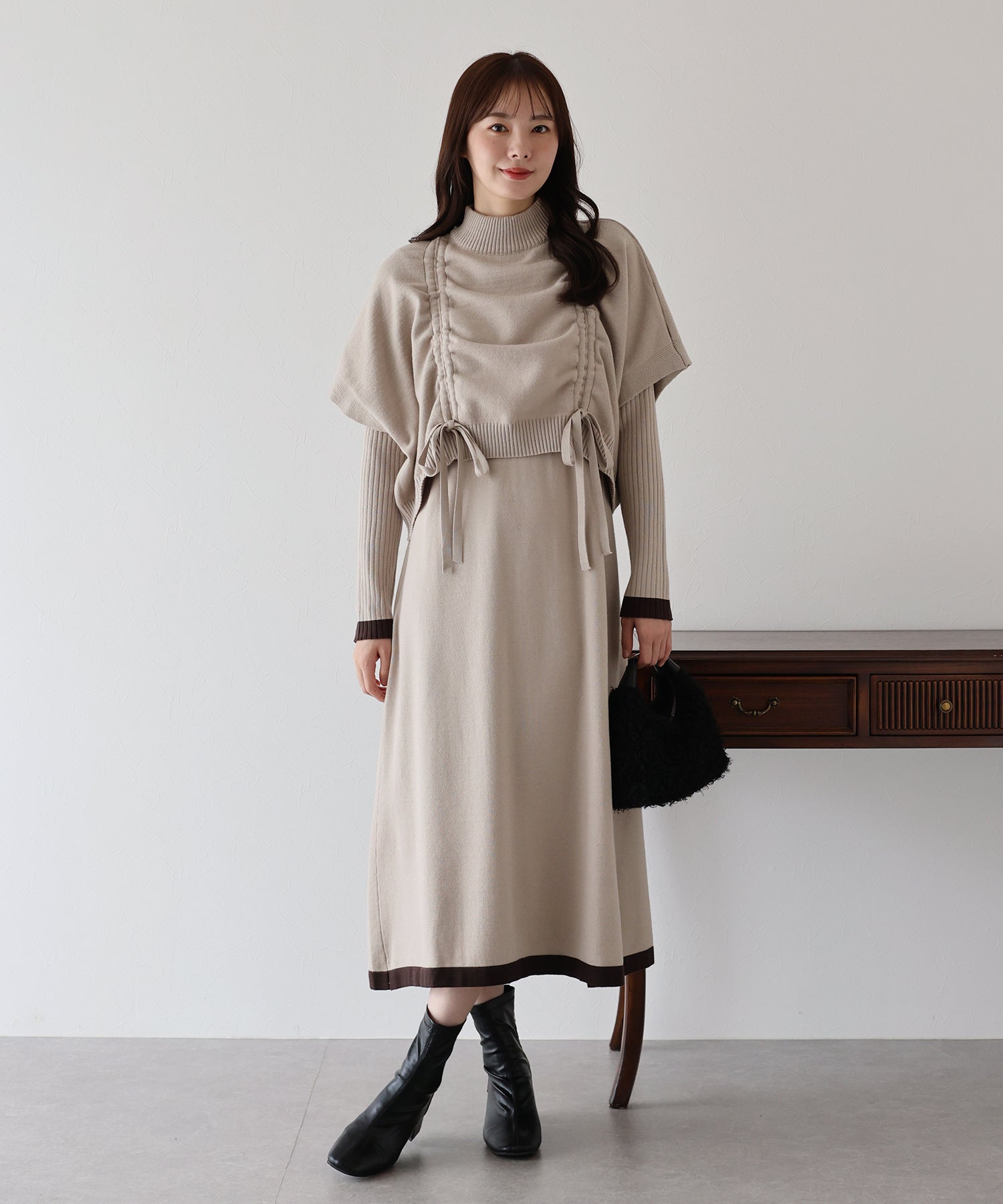 着回し力抜群!ワイドシルエットのニットベスト&ワンピースのレイヤードセット