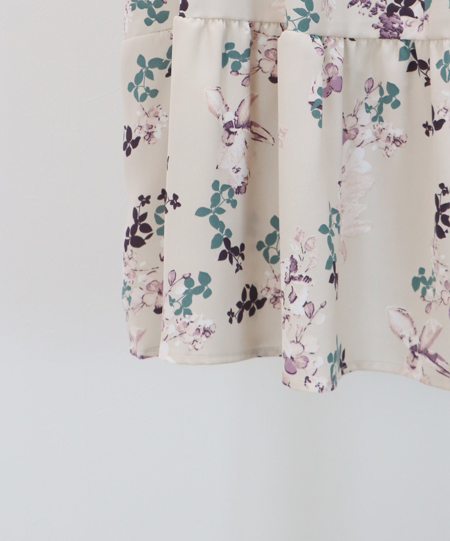 バルーンスリーブ オーガンジー袖&ジャガード&ベロアワンピース