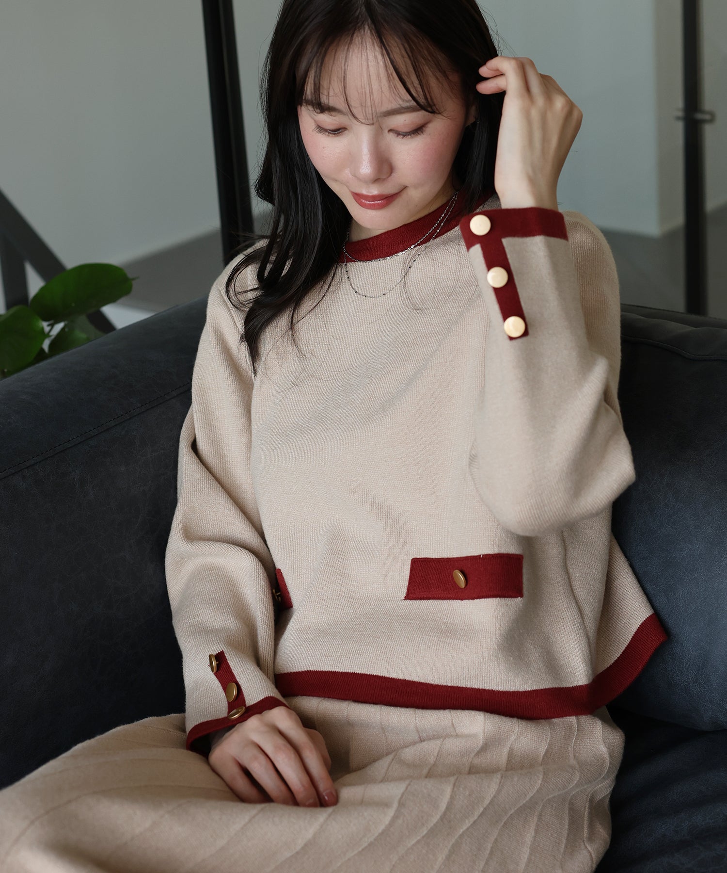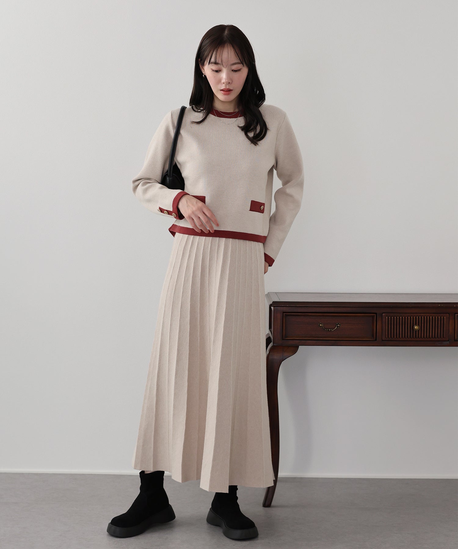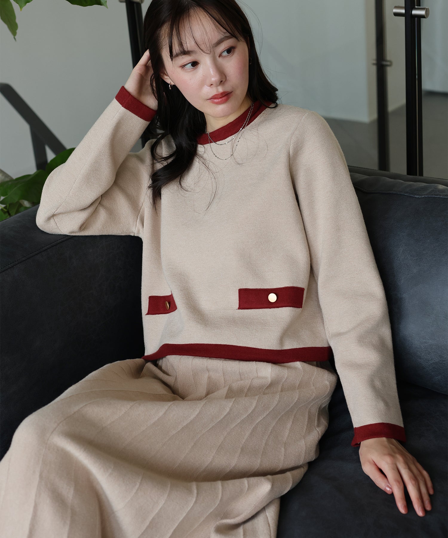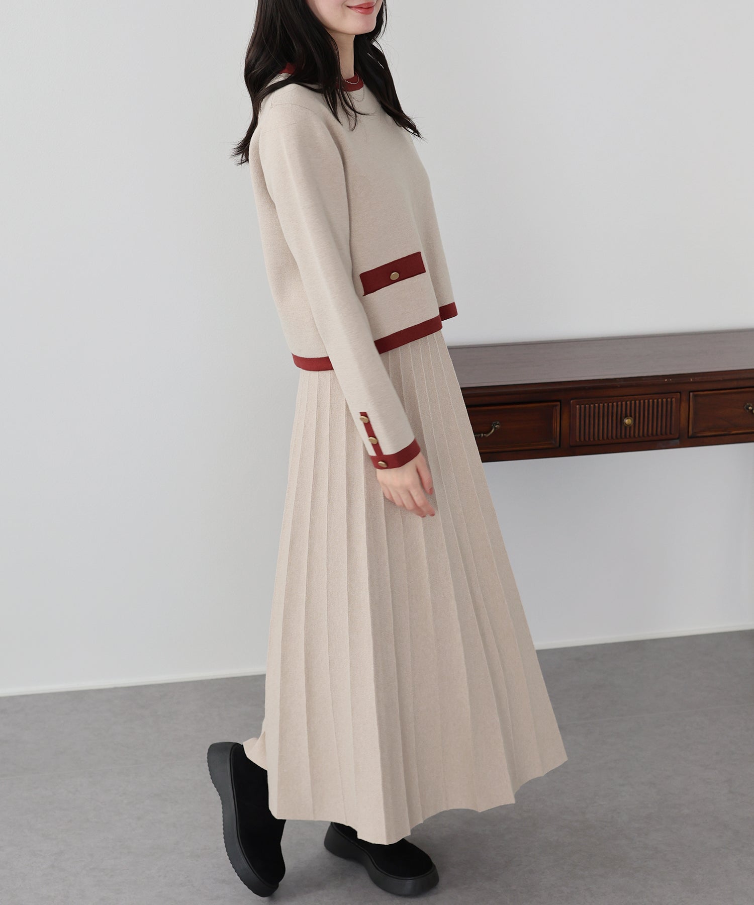 着回し力抜群◎上品な配色ニット&スカートのセットアップ