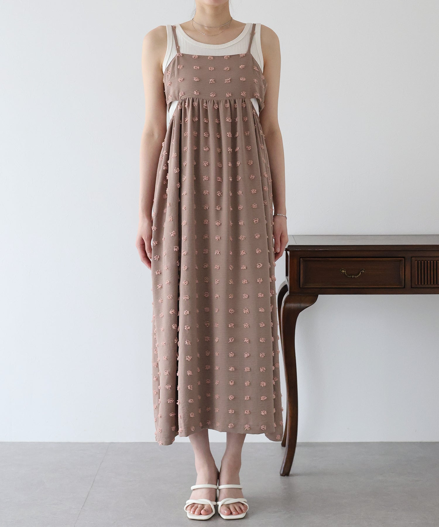 旬のキャミワンピースから凹凸感が可愛いドット柄が登場。