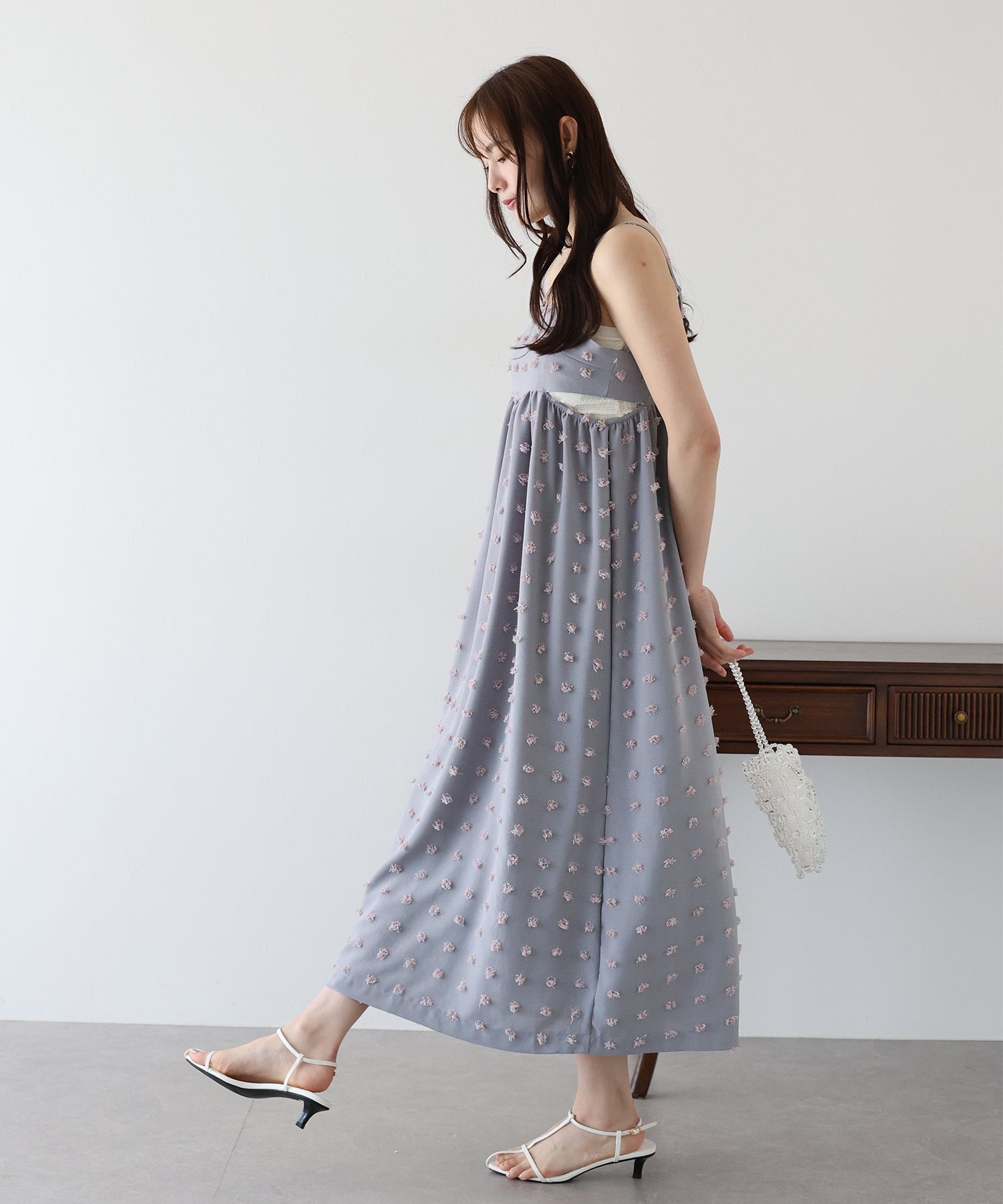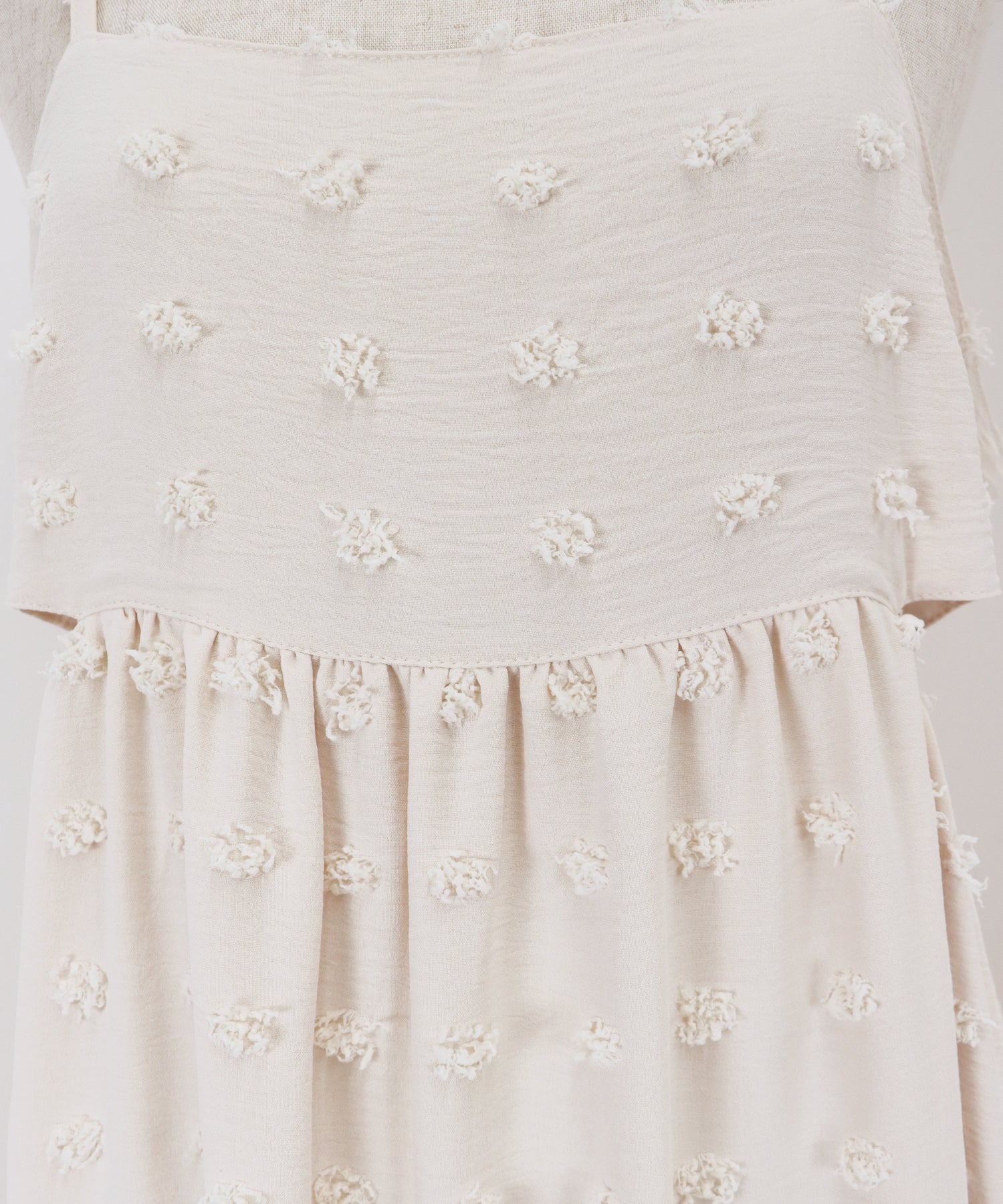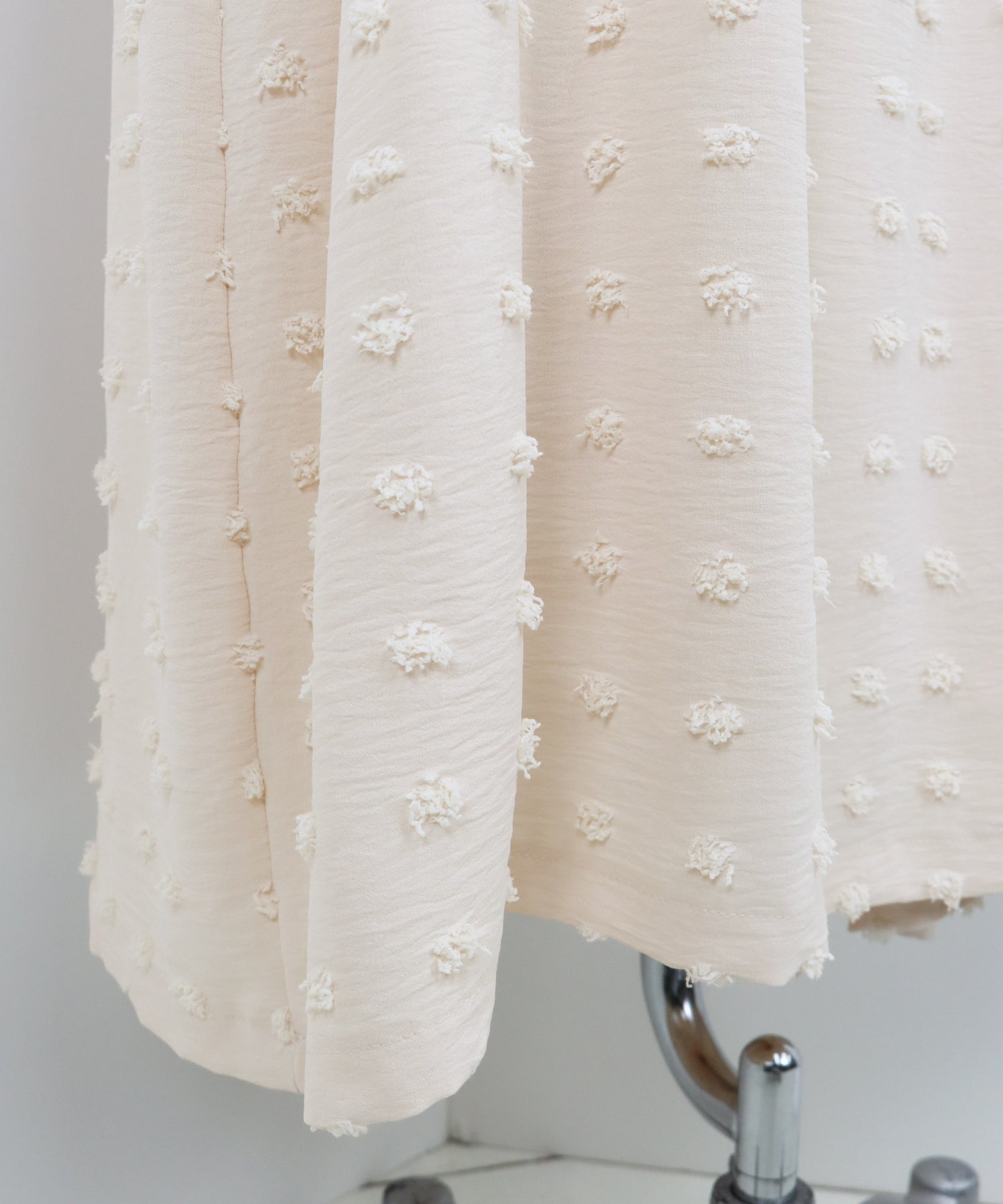 ドット柄のジャガード生地でラブリーに仕上げつつもウエストのスリットでセクシーさをプラス◎