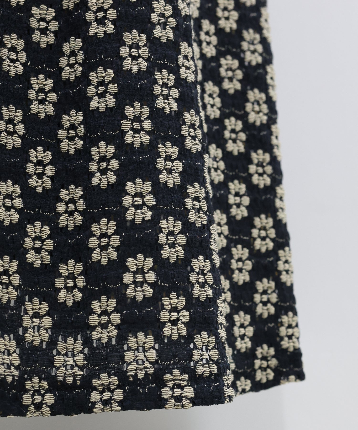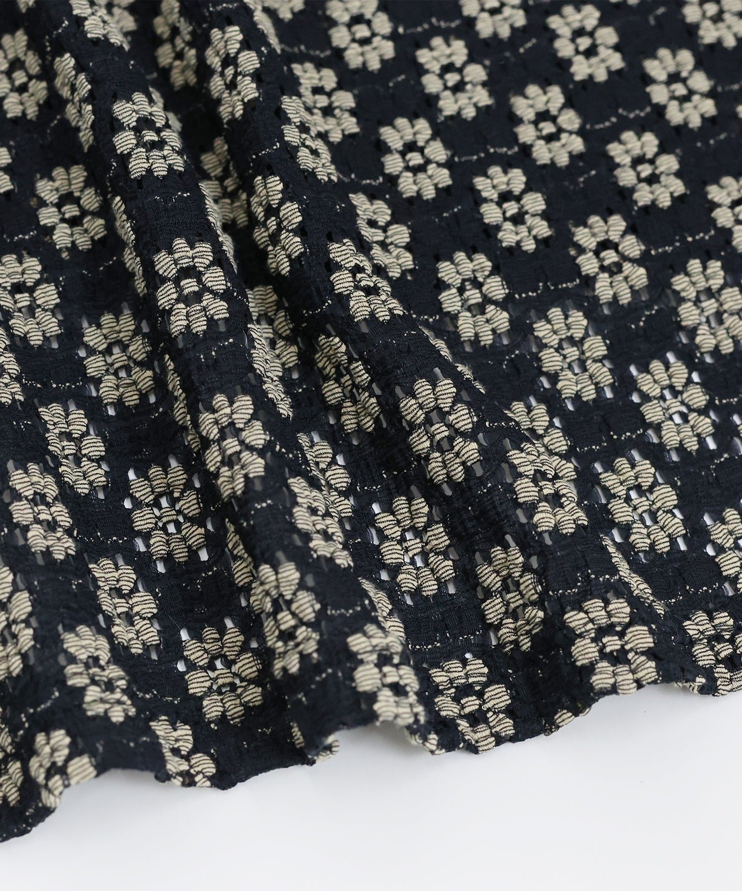 立体感のある花柄のジャガードレース生地で1枚で華やかかつ上品なコーデを完成。
