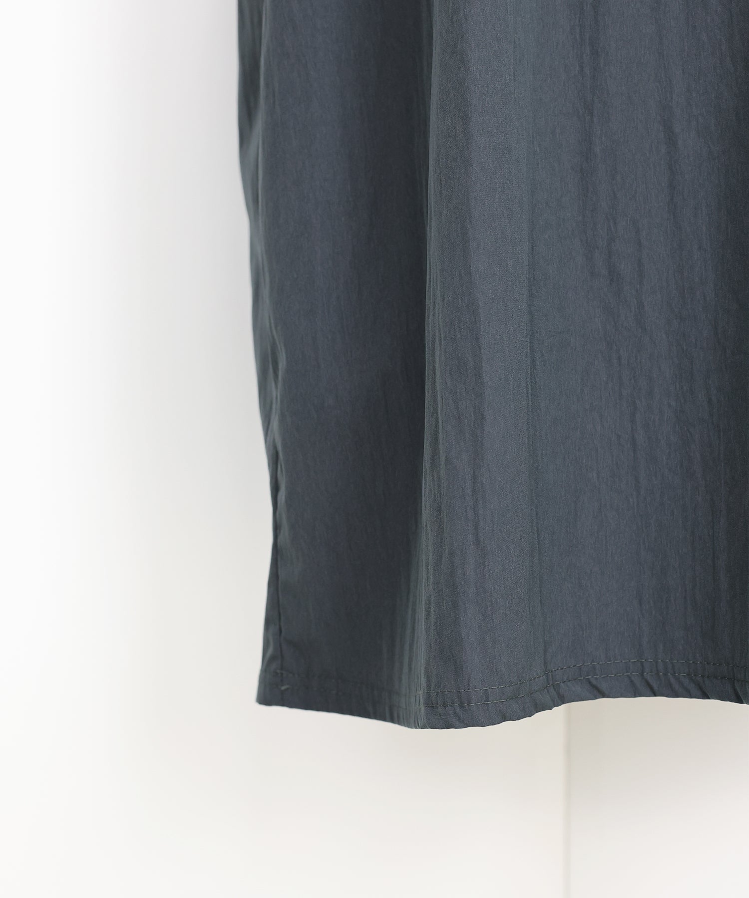 前ウエスト部分のドロストをキュッと絞ったり、ゆるっとさせたり体型や着たいシルエットによって調整いただけます。