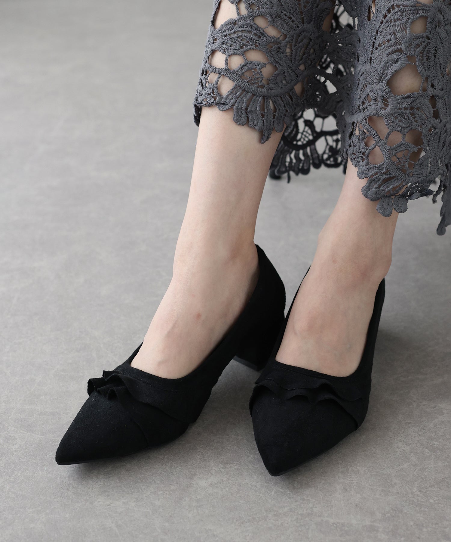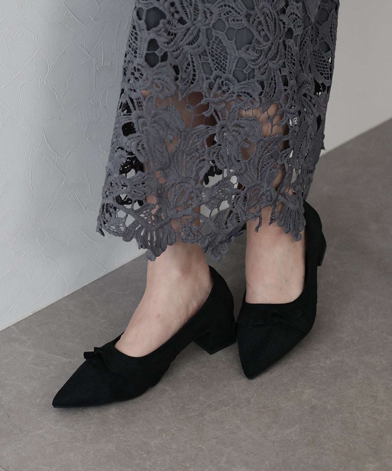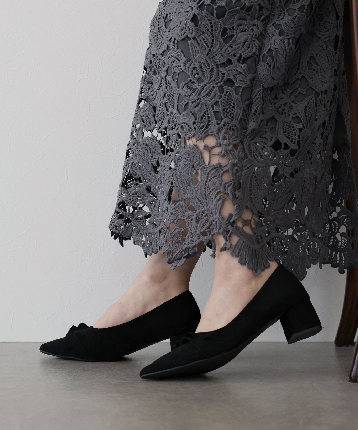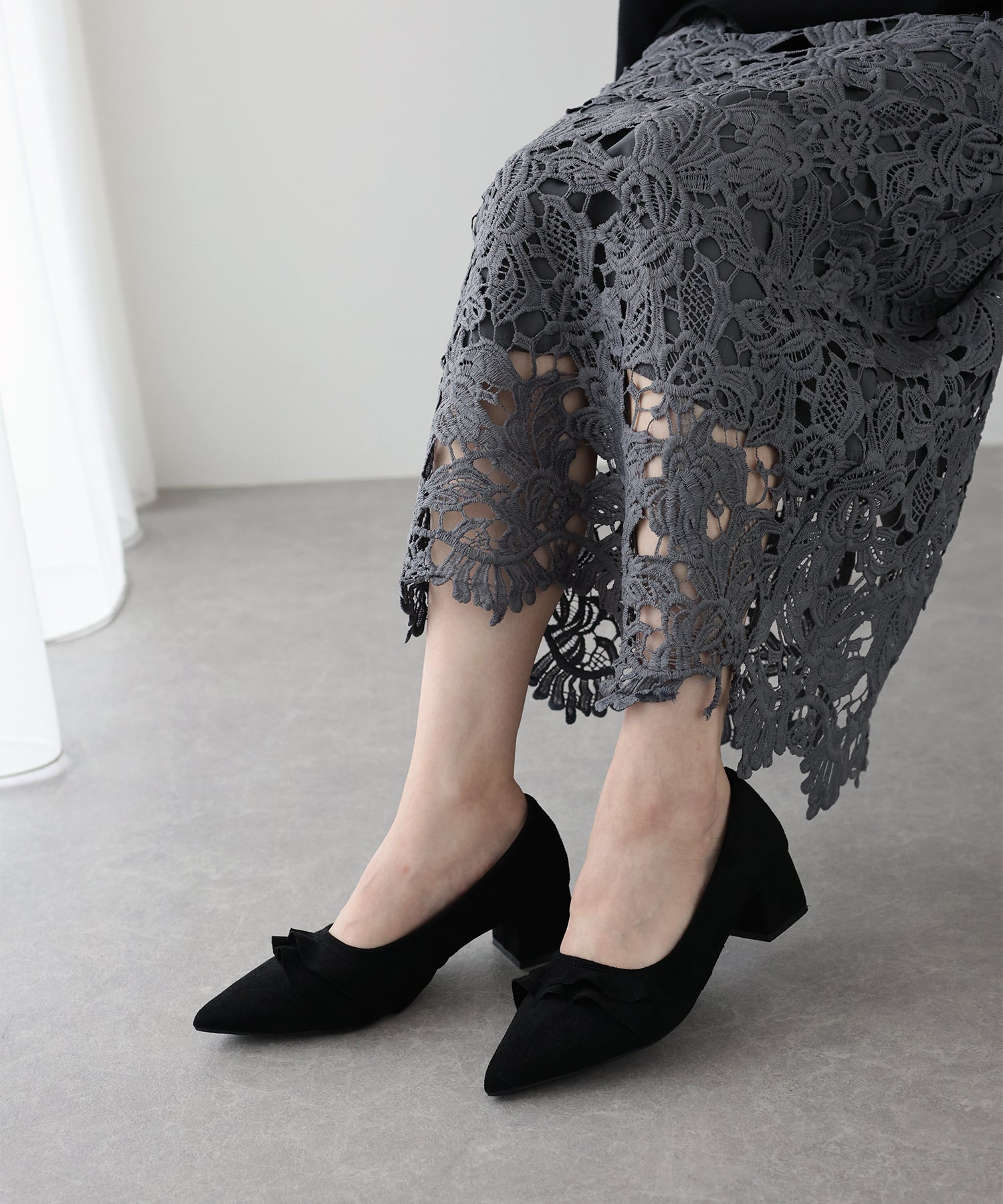 立体感のあるレースがキュートでコーディネートにこなれ感を出してくれるパンプス。