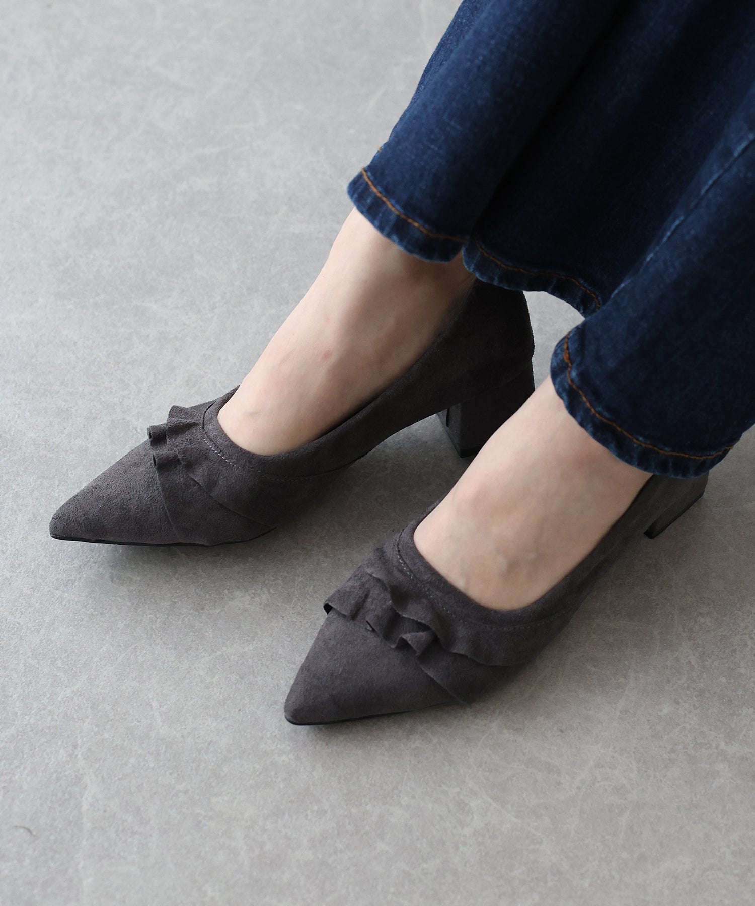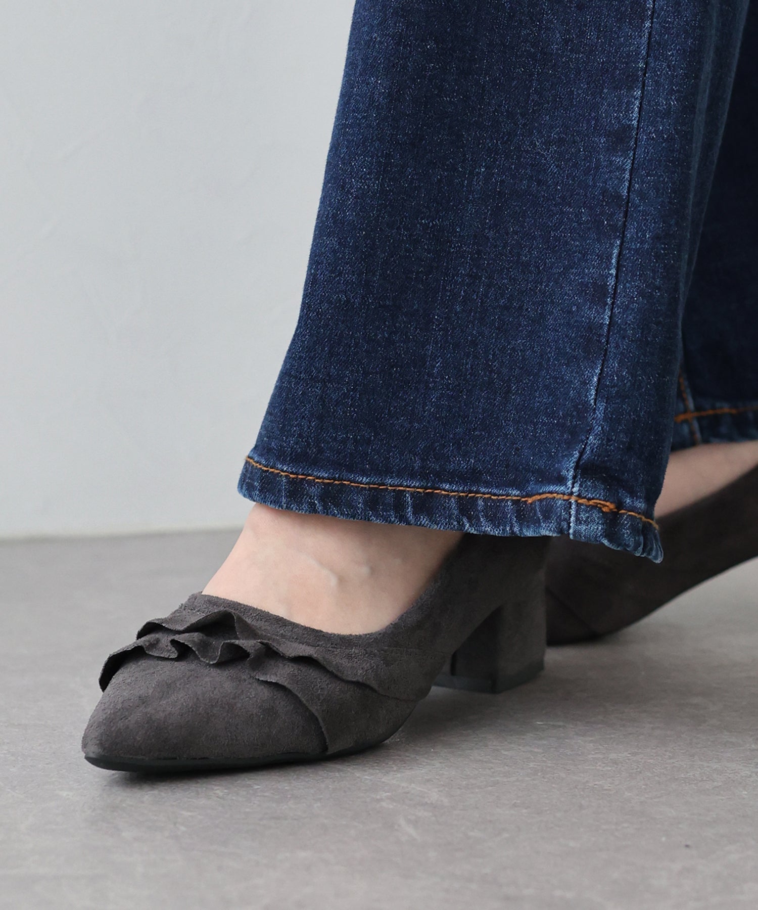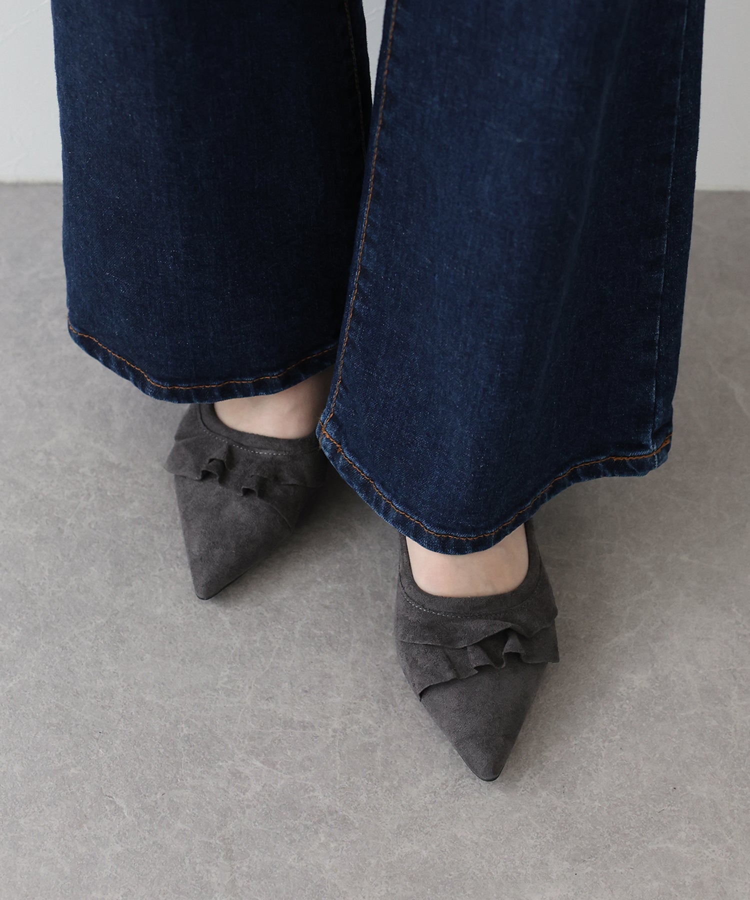 すっきりとしたシルエットのポインテッドトゥで脚をより綺麗に見せます。
