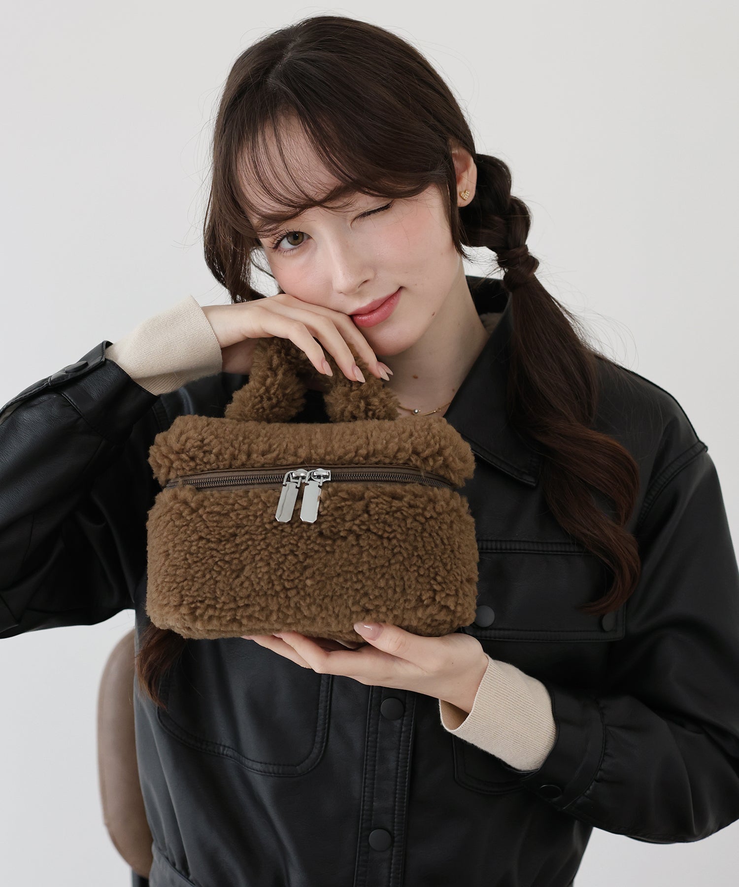 ふわふわのボア素材がシーズンライクなムードを演出します。