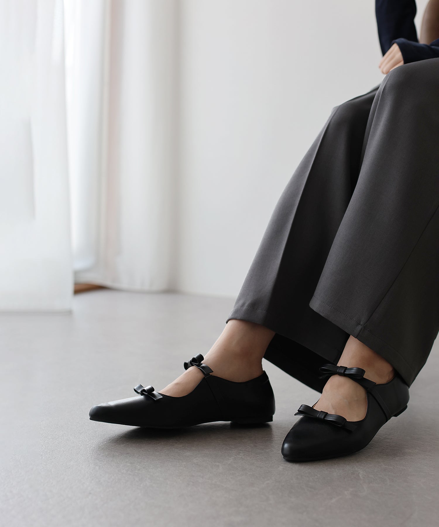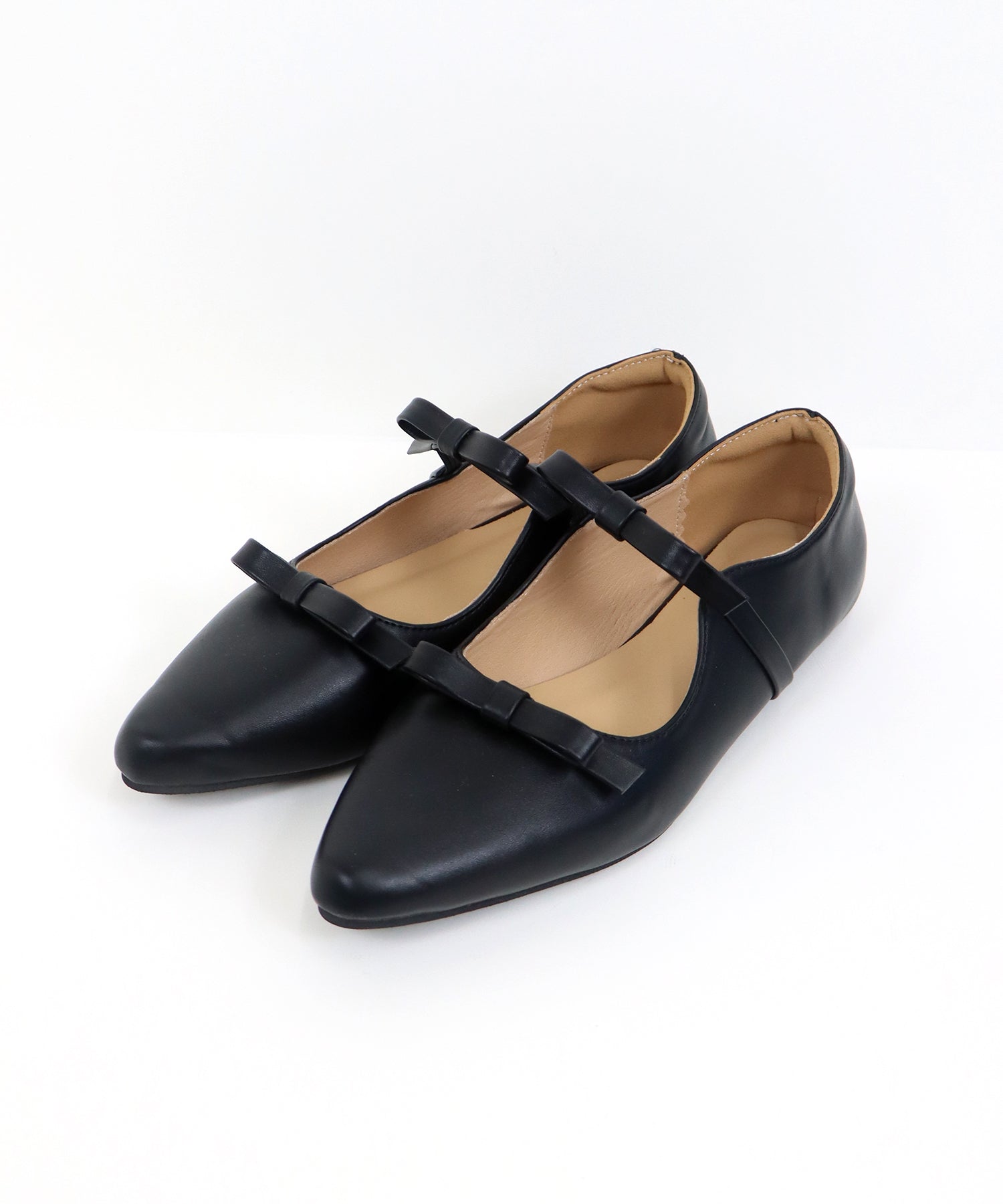 さりげないリボンデザインが目を惹くフラットパンプス。