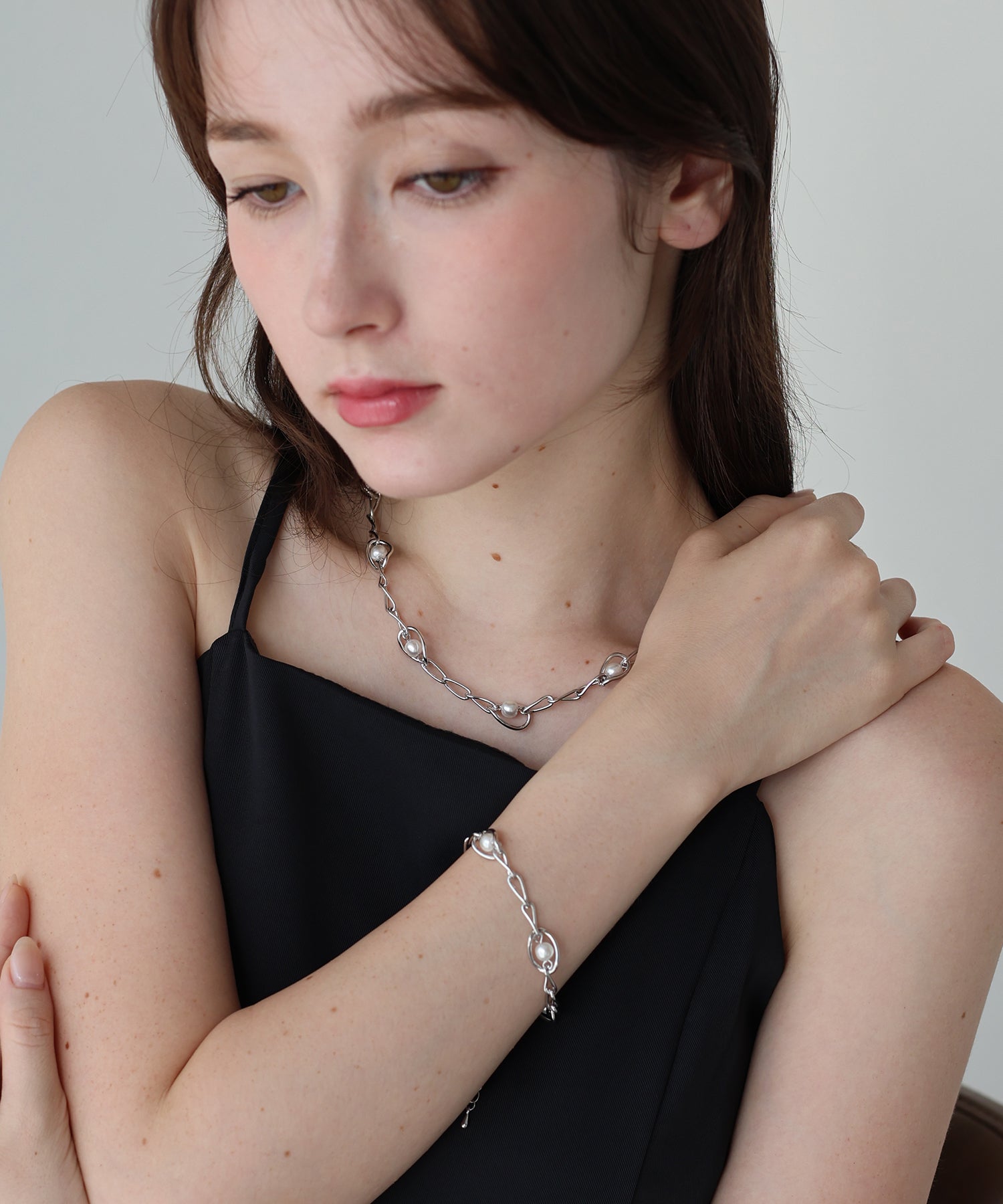 バロックパールチェーンブレスレット / サージカルステンレス [J by blue]【ネコポス】