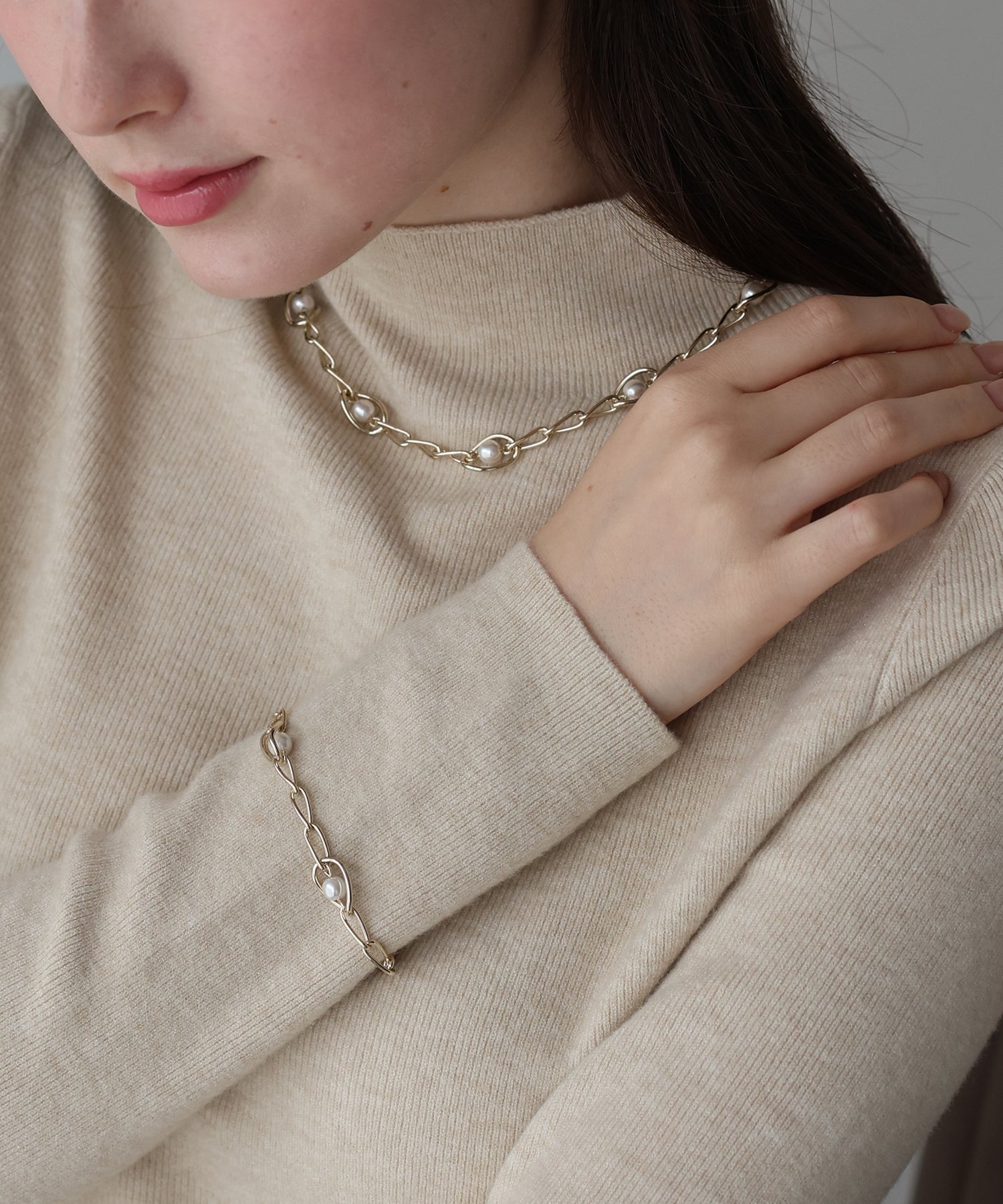 チェーンが軽やかな抜け感を添え、どんなスタイルにも自然に馴染むデザイン。