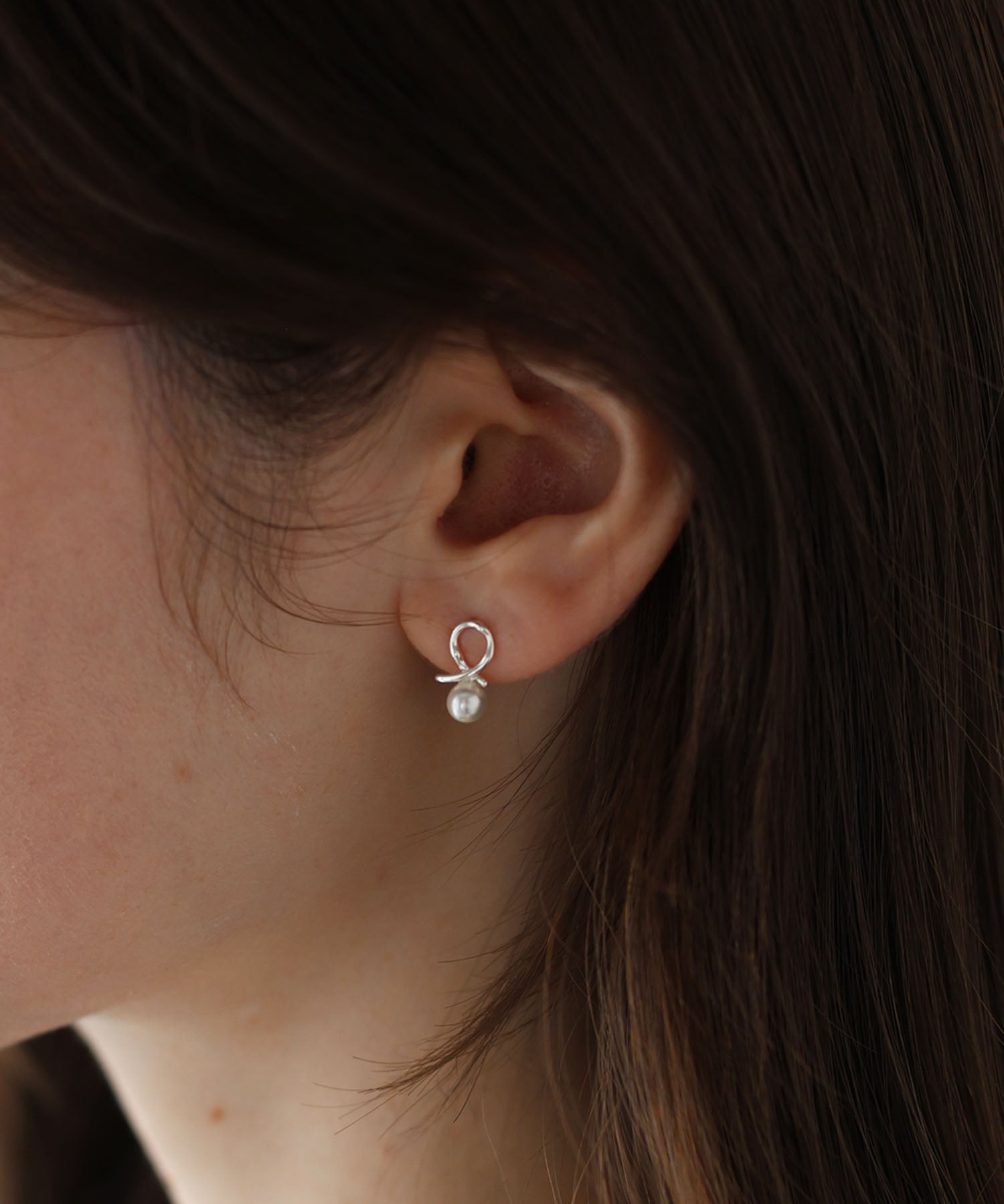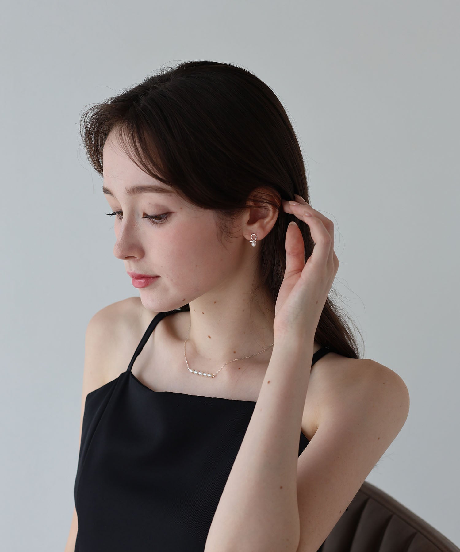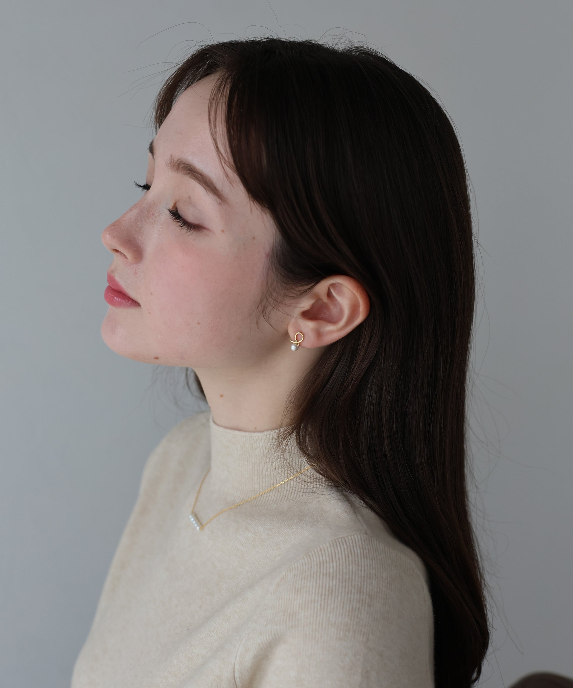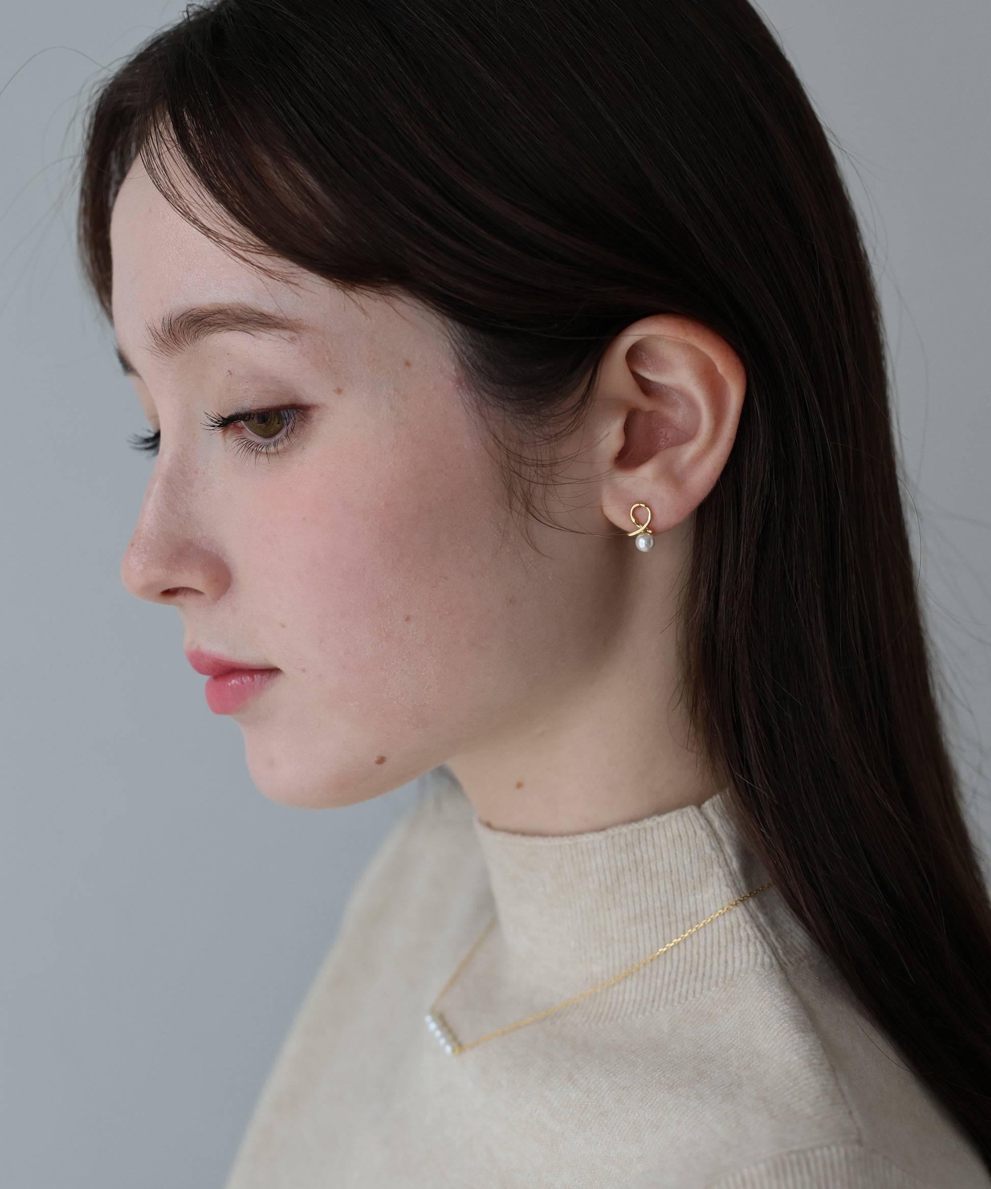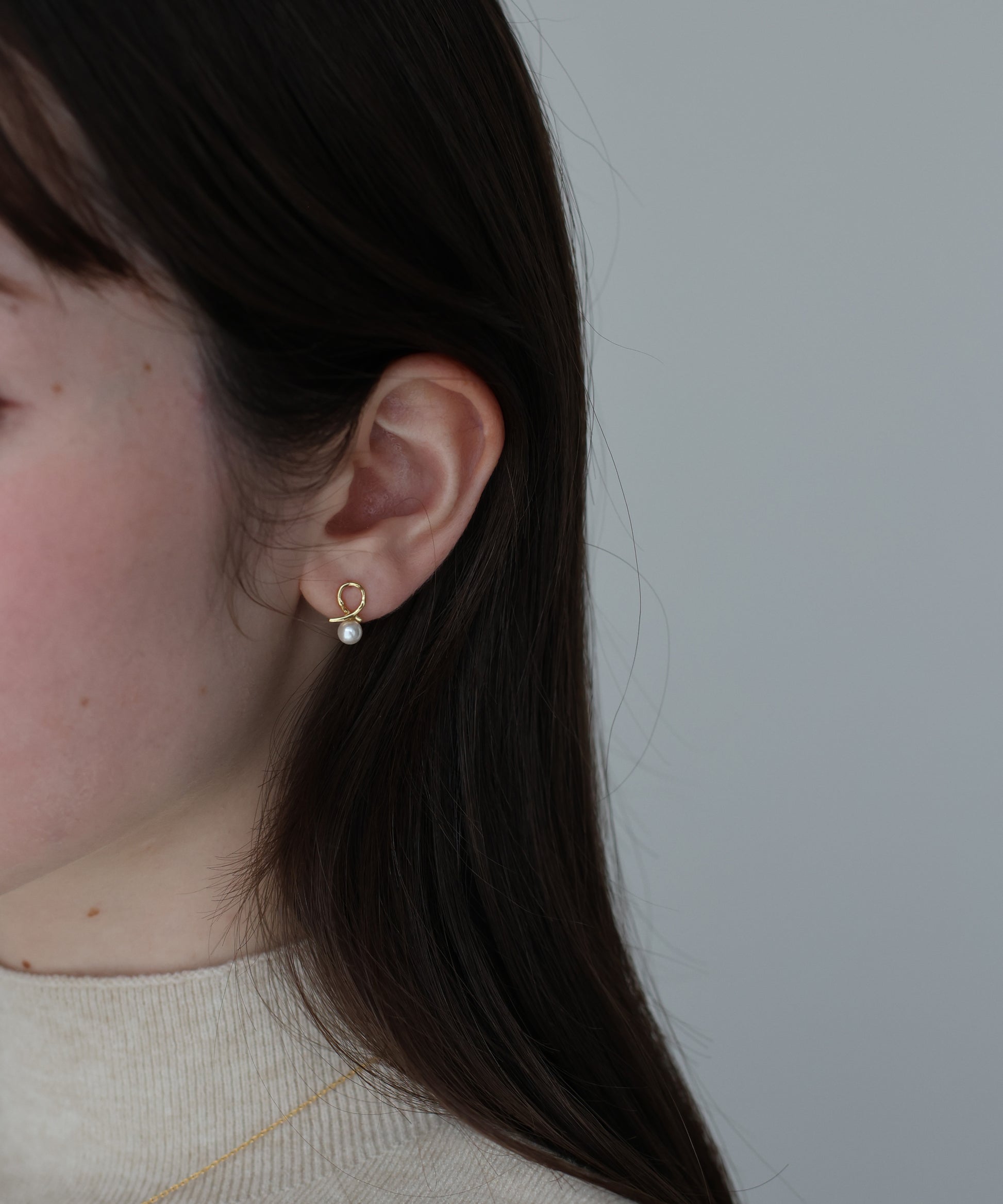 メタルラインとパールの組み合わせが横顔に可憐な印象を与えるミニピアス