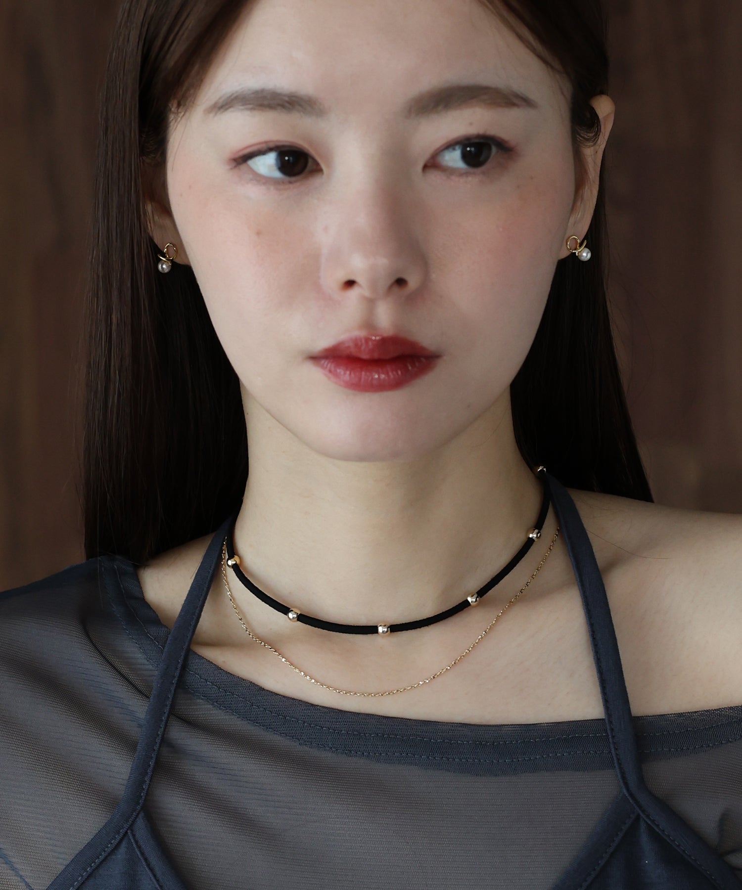 洗練された雰囲気のコード×チェーンデザイン二連ネックレス