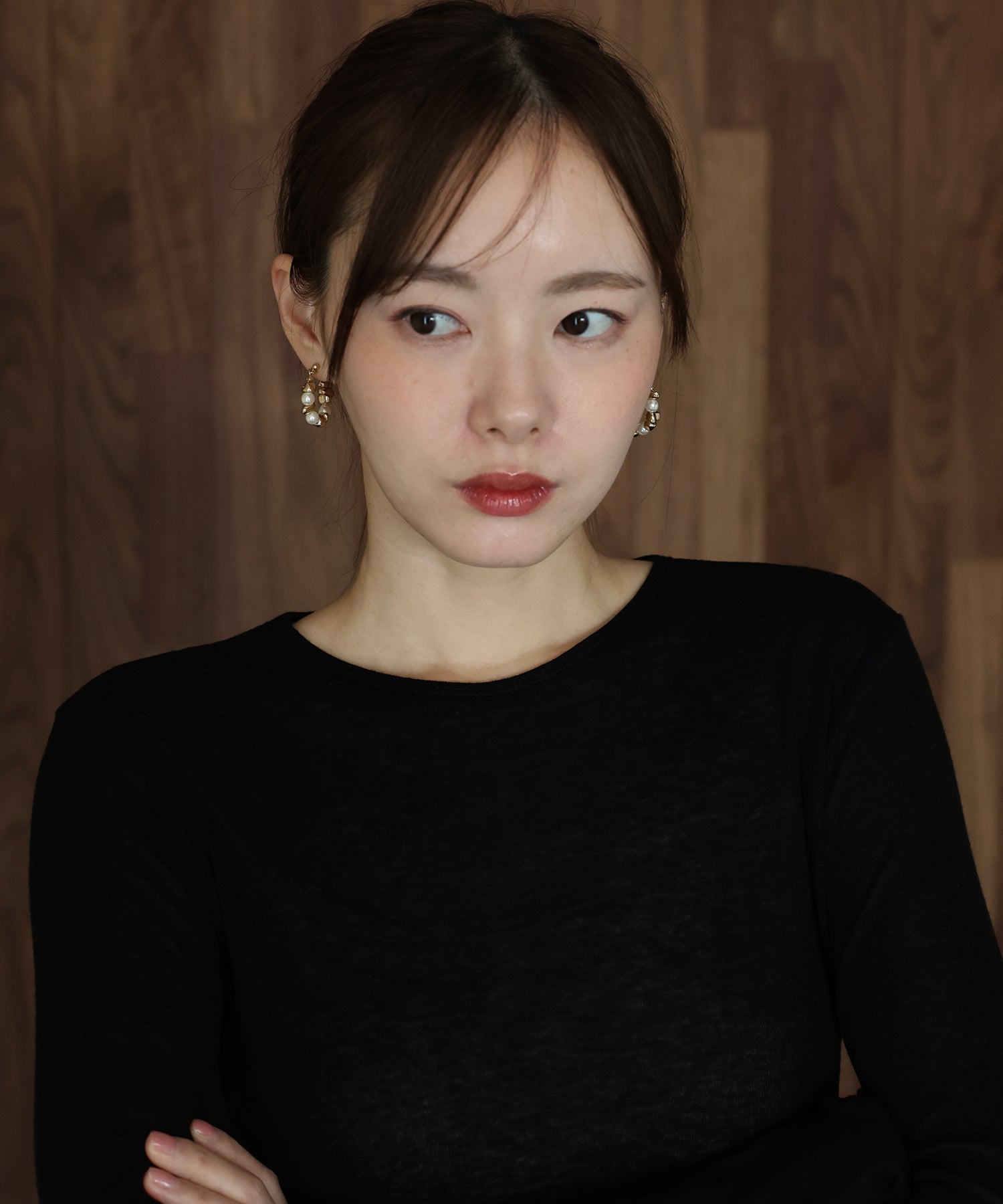 ニュアンスメタル&パールフープピアス / ニッケルフリー