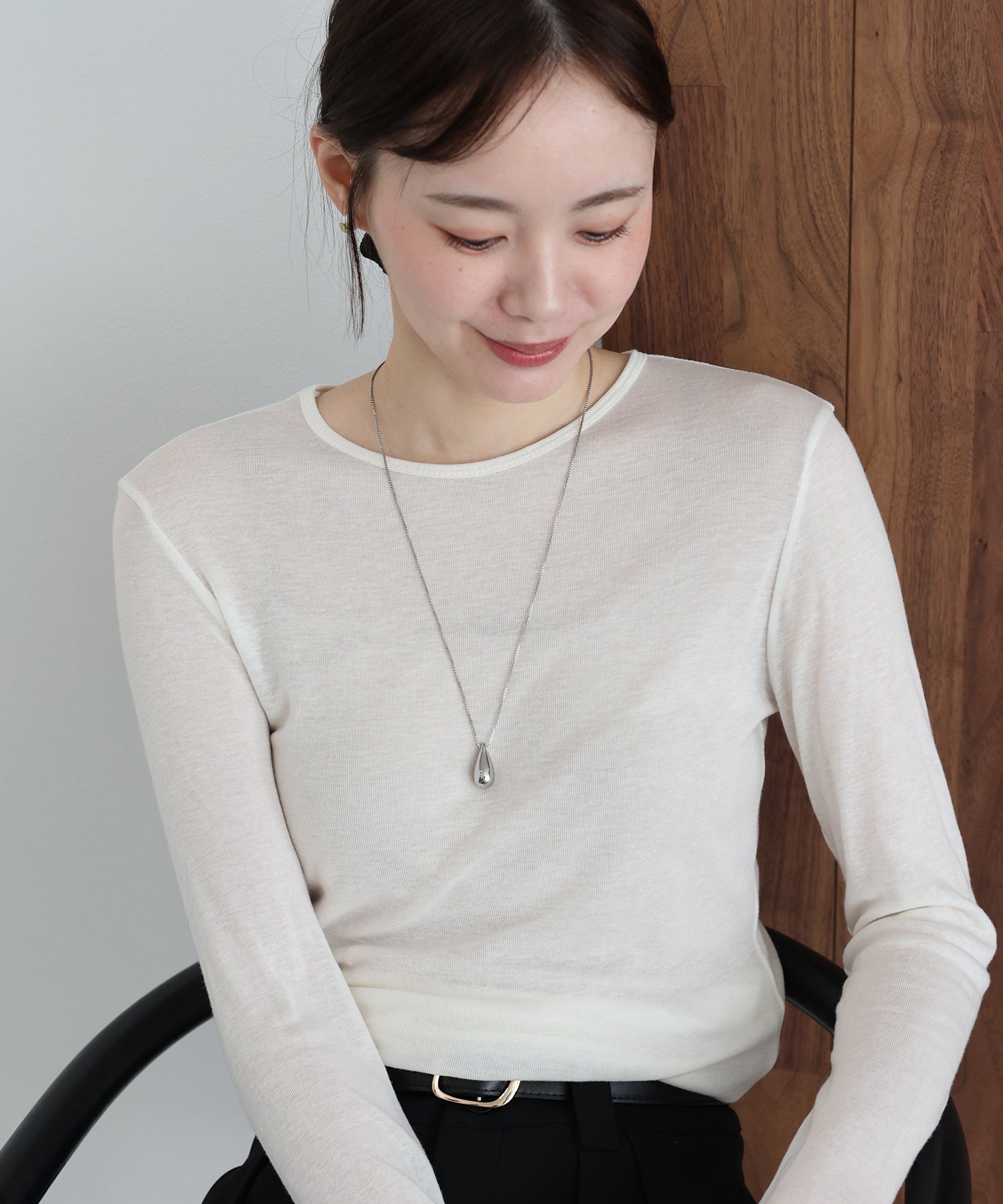 cmのロングチェーンはTシャツやニットなどとの相性が良く季節を問わず様々なコーデに調和します。