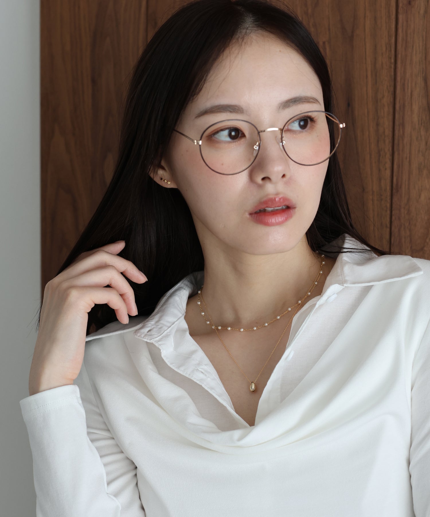 耳たぶのラインに沿うようなシルエットが、顔周りにさりげない華やぎと立体感を演出。
