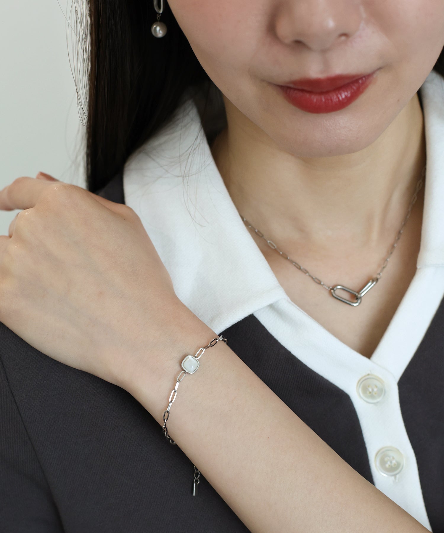 オーバル型の駒が連なったリンクチェーンが洗練された都会的な印象を演出。